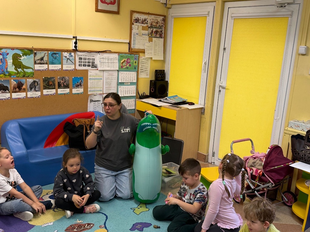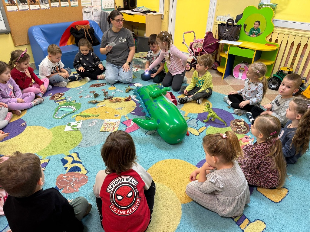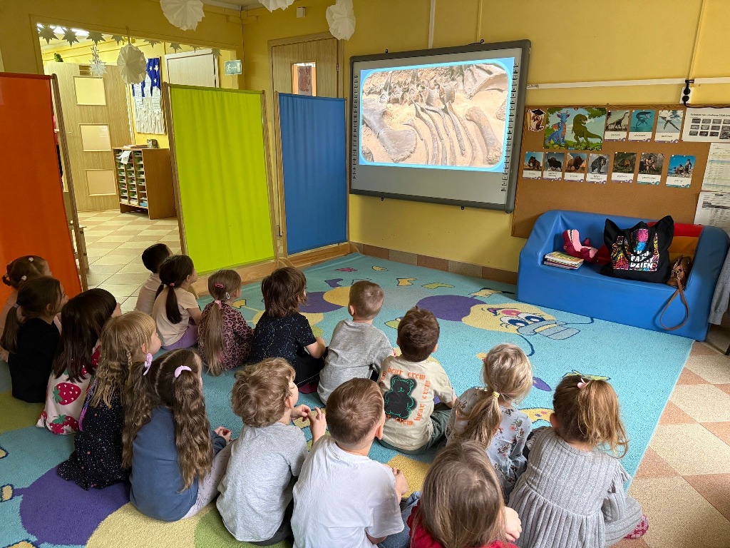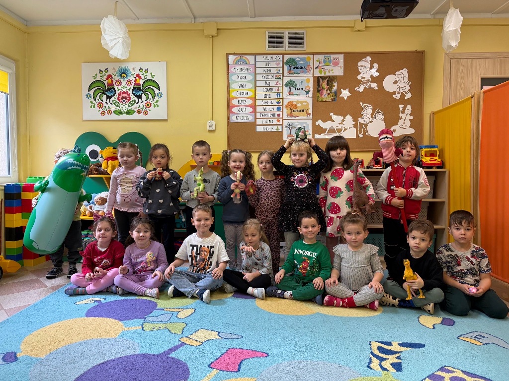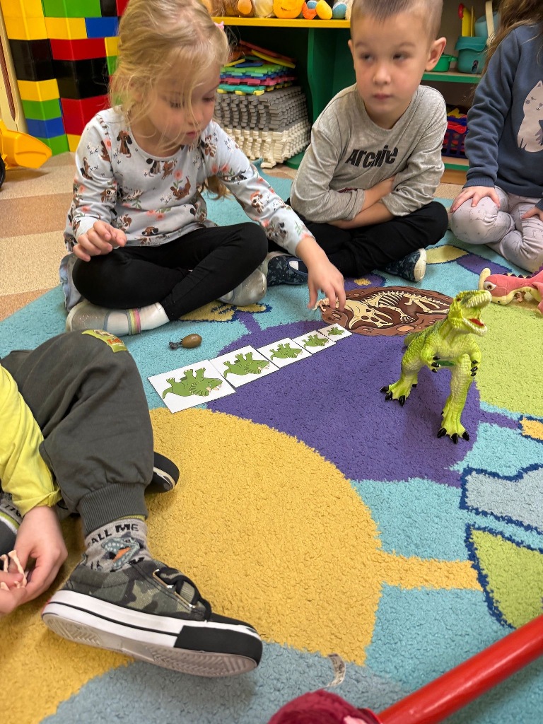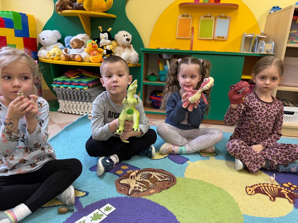 W grupie Sówki odbył się wyjątkowy Dzień Dinozaura! Dzieci przeniosły się do jurajskiego świata, brały udział w zabawach ruchowych, poznawały ciekawostki o dinozaurach oraz wykonywały piękne prace plastyczne. Nie zabrakło również wspólnego tańca i wielu radosnych chwil. To był czas pełen uśmiechu, dobrej zabawy i nowych doświadczeń. Dziękujemy naszym małym paleontologom za aktywny udział!