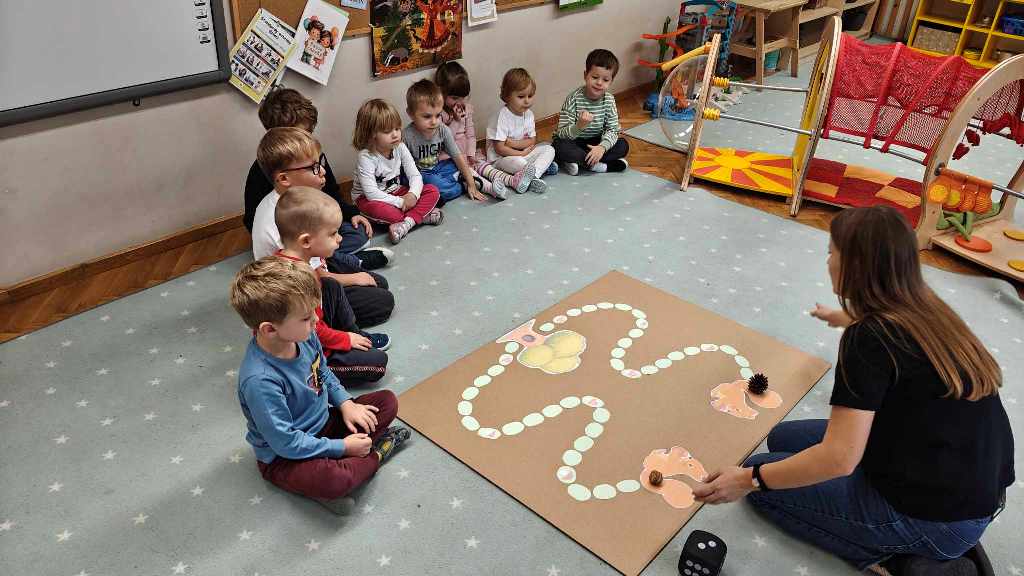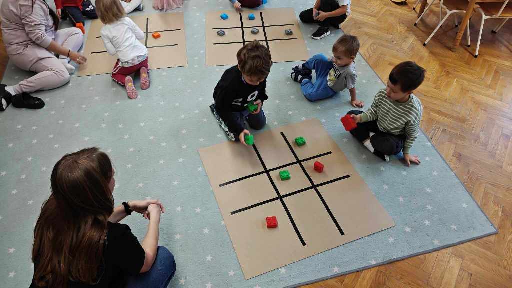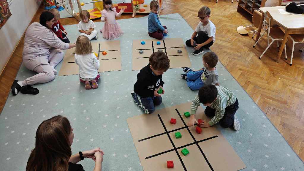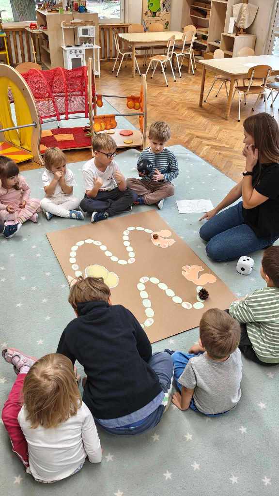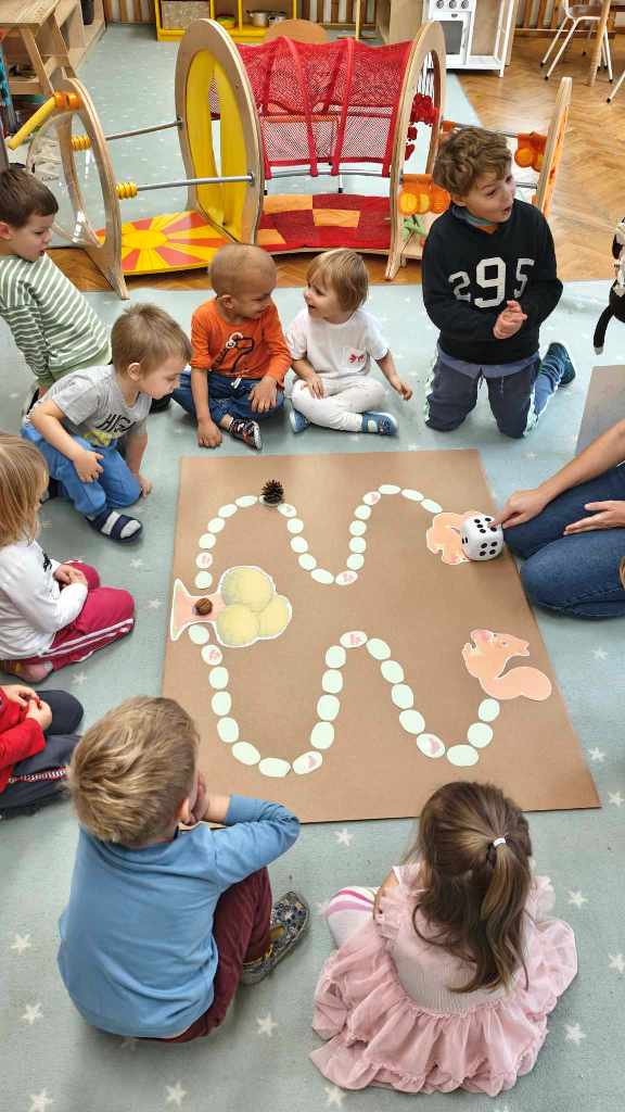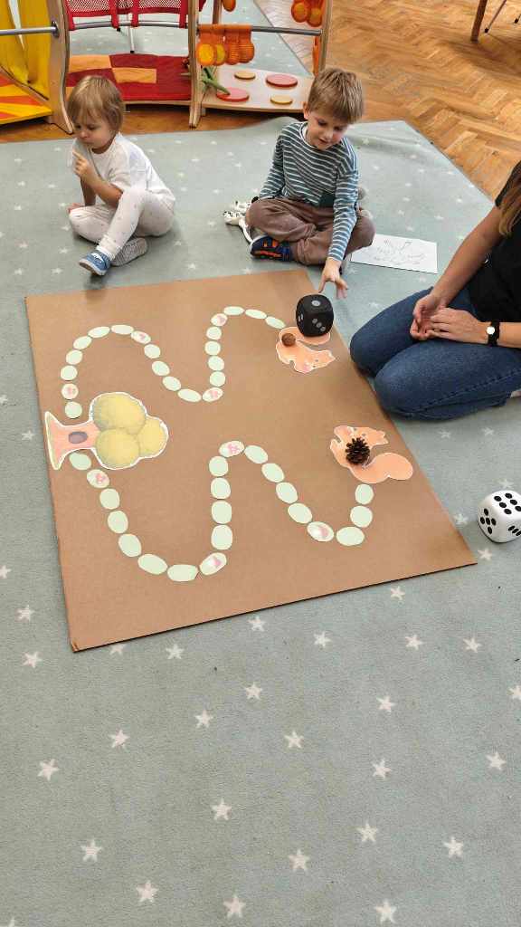 Dziś w naszej grupie świętowaliśmy Dzień Gier Planszowych! Dzieci wspólnie z ciociami grały w samodzielnie stworzone gry planszowe, w tym w kółko i krzyżyk oraz gry z kostką w wersji XXL! Grupa „Ślimaczki” udowodniła, że gier nie trzeba kupować – można je stworzyć samemu, łącząc zabawę z nauką, współpracą i twórczym myśleniem. Zgodnie z ideą Montessori – tworzymy, odkrywamy i rozwijamy nasze kreatywne umysły!