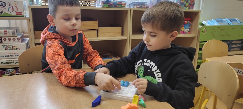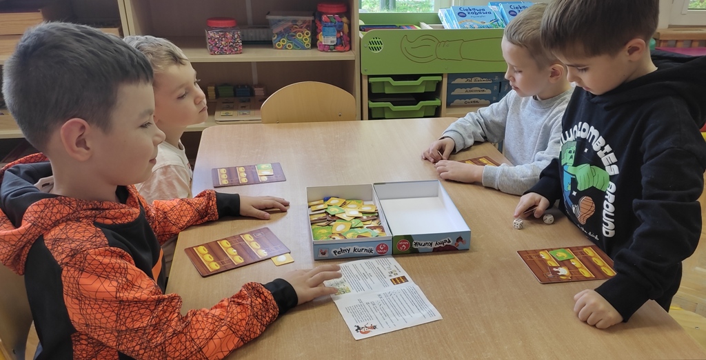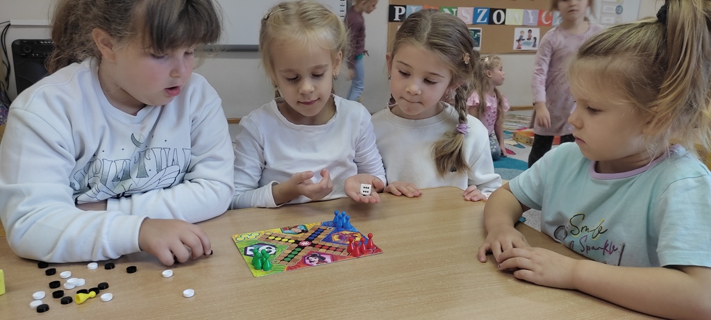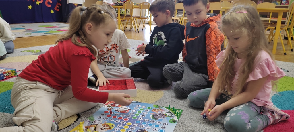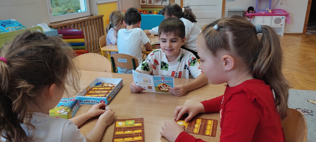 10 października 2025 roku Jeżyki świętowały Dzień Gier Planszowych. Z tej okazji każdy mógł przynieść z domu swoją ulubioną grę i zagrać w nią z kolegami i koleżankami. Dzieci z zaangażowaniem podejmowały kolejne wyzwania, postanowiły również stworzyć własną grę, do której ustalono nowe zasady. Dzień ten dostarczył przedszkolakom wiele emocji i udowodnił, że najważniejsza jest radość ze wspólnej zabawy i dobry humor!