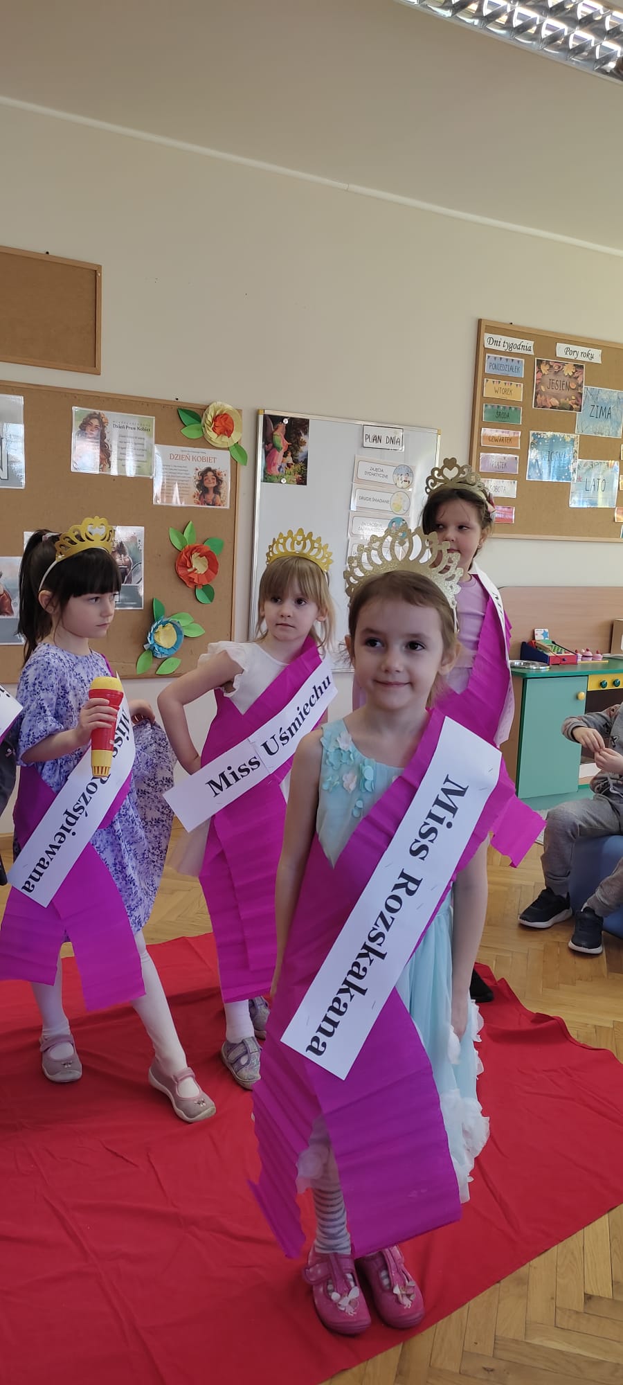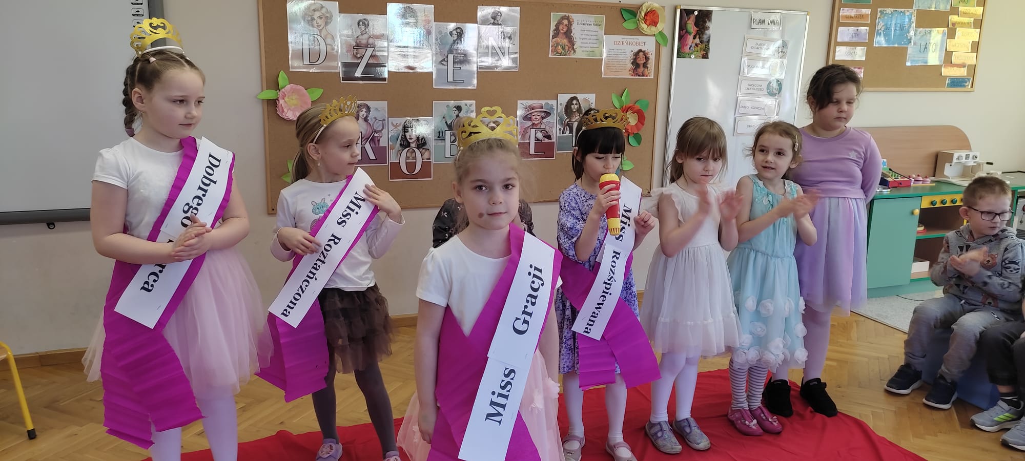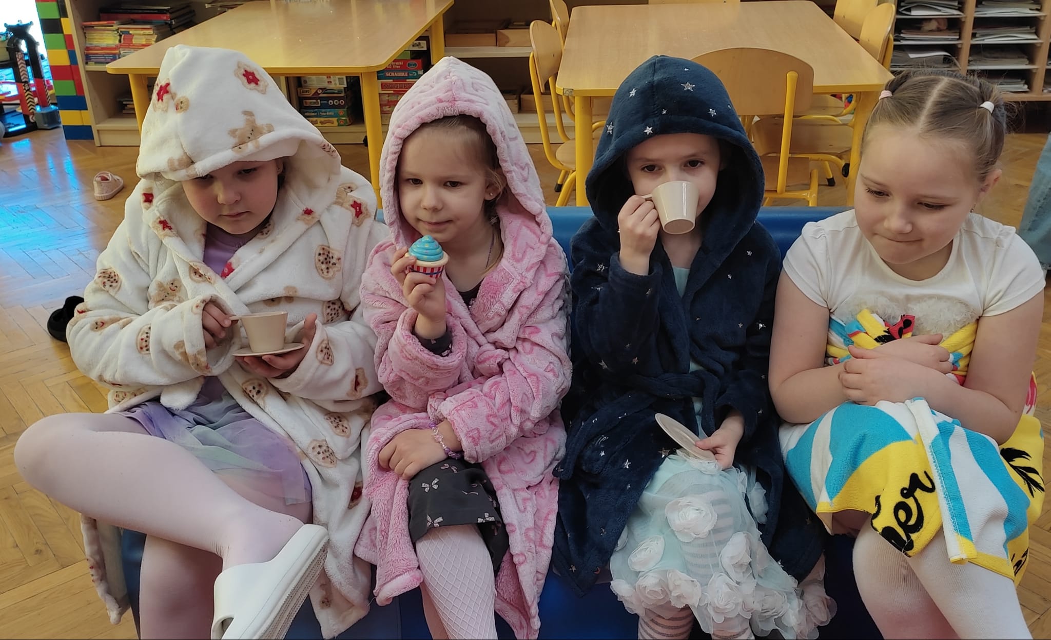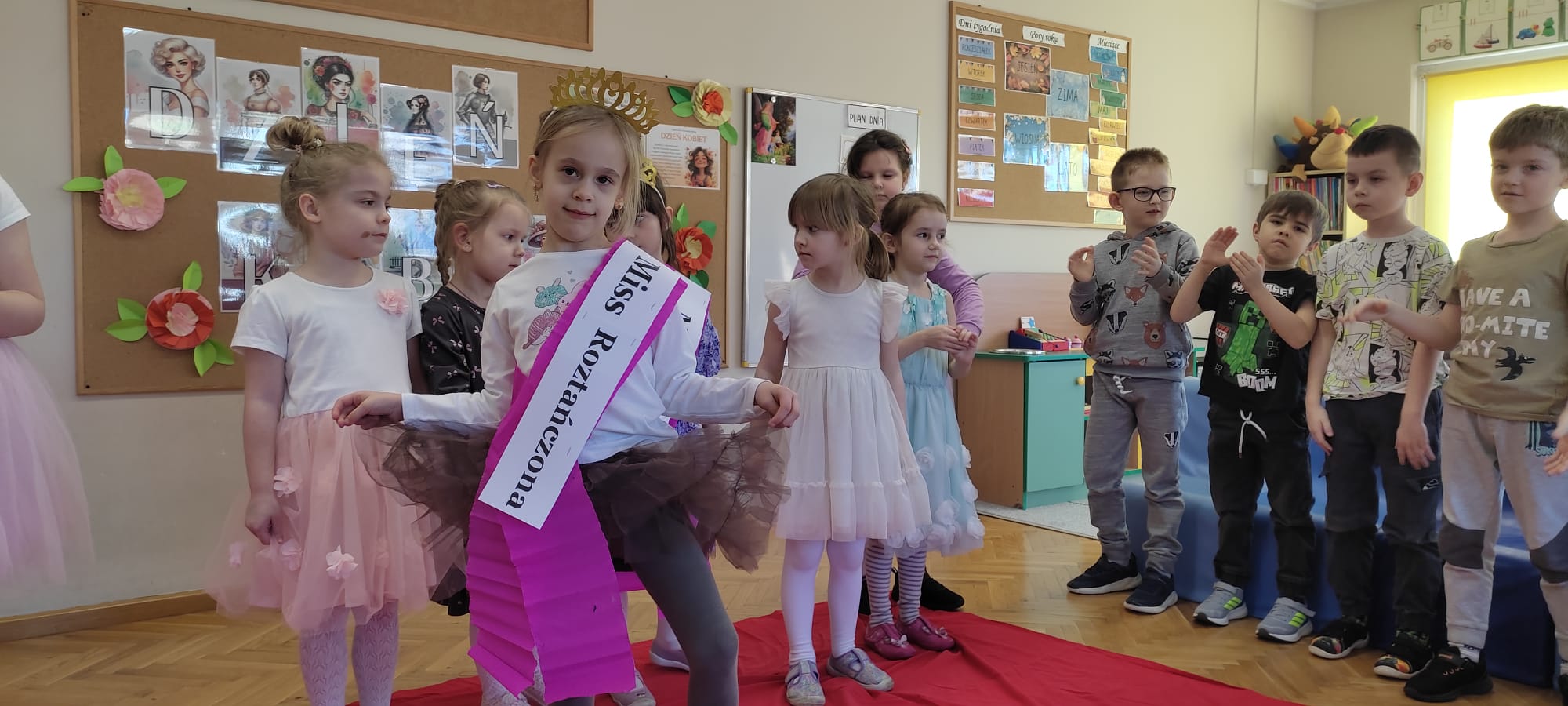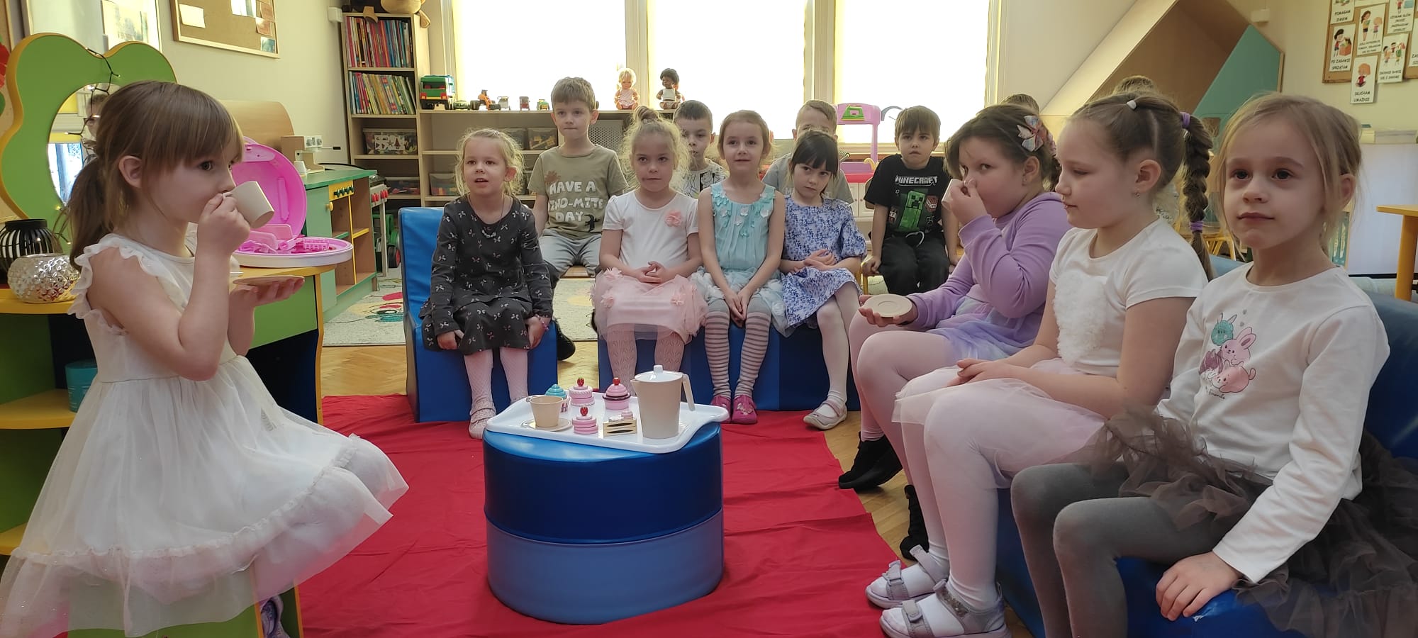 „Rozśpiewane, roztańczone i pełne wdzięku – tak właśnie nasze małe damy z grupy „Jeżyki” celebrowały swoje święto! To był dzień, w którym każda dziewczynka mogła poczuć się jak gwiazda, a uśmiech nie schodził z dziecięcych buzi. Po emocjach związanych z konkursami i szalonej zabawie, małe kobietki udały się na zasłużony odpoczynek. Wyciszenie przy spokojnej muzyce i chwila relaksu tylko dla siebie były idealnym dopełnieniem tego radosnego dnia.