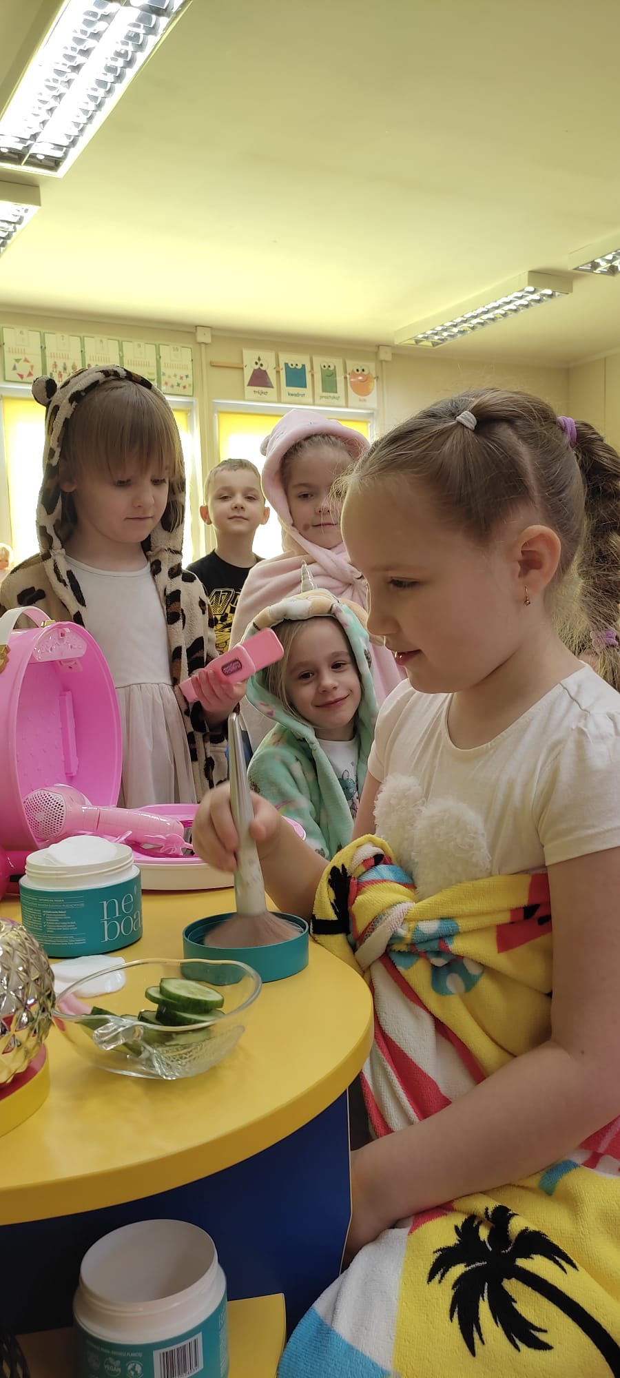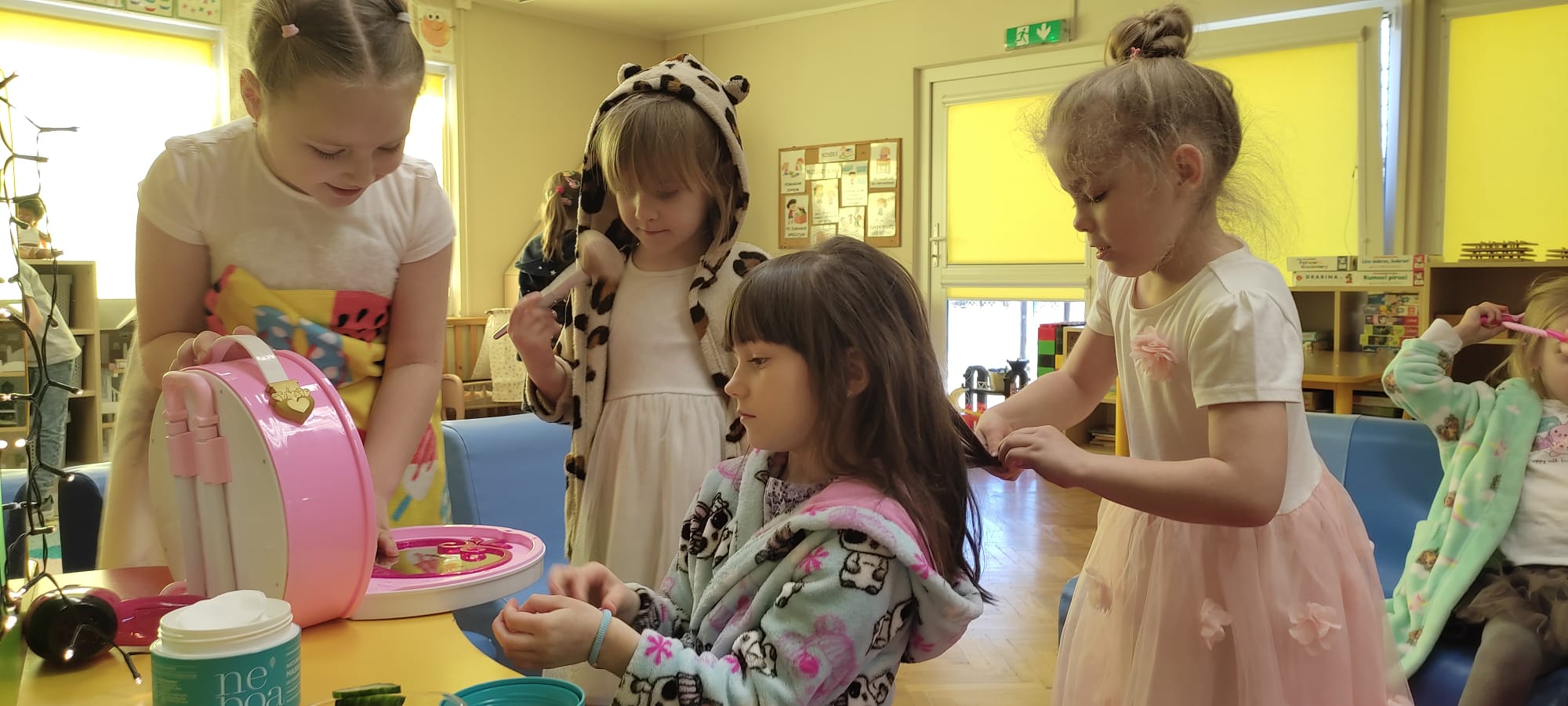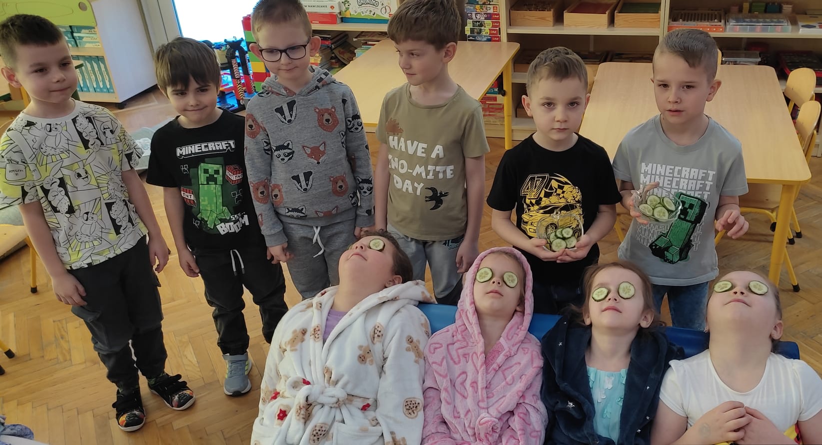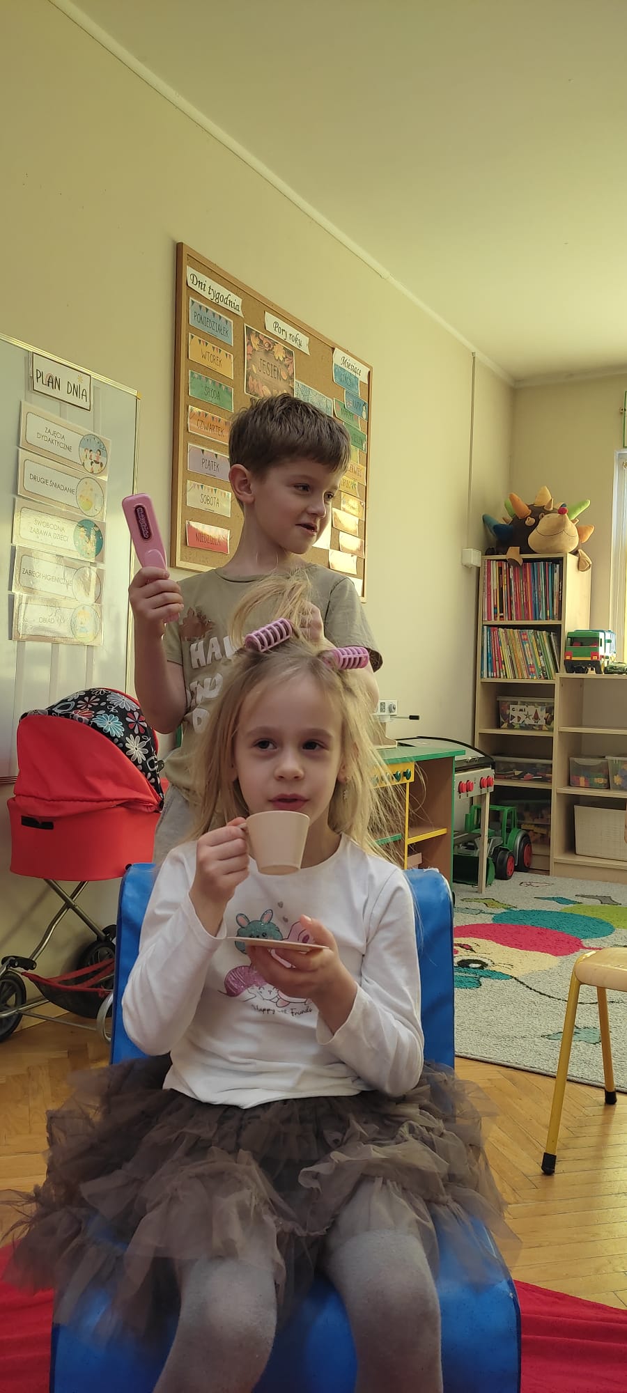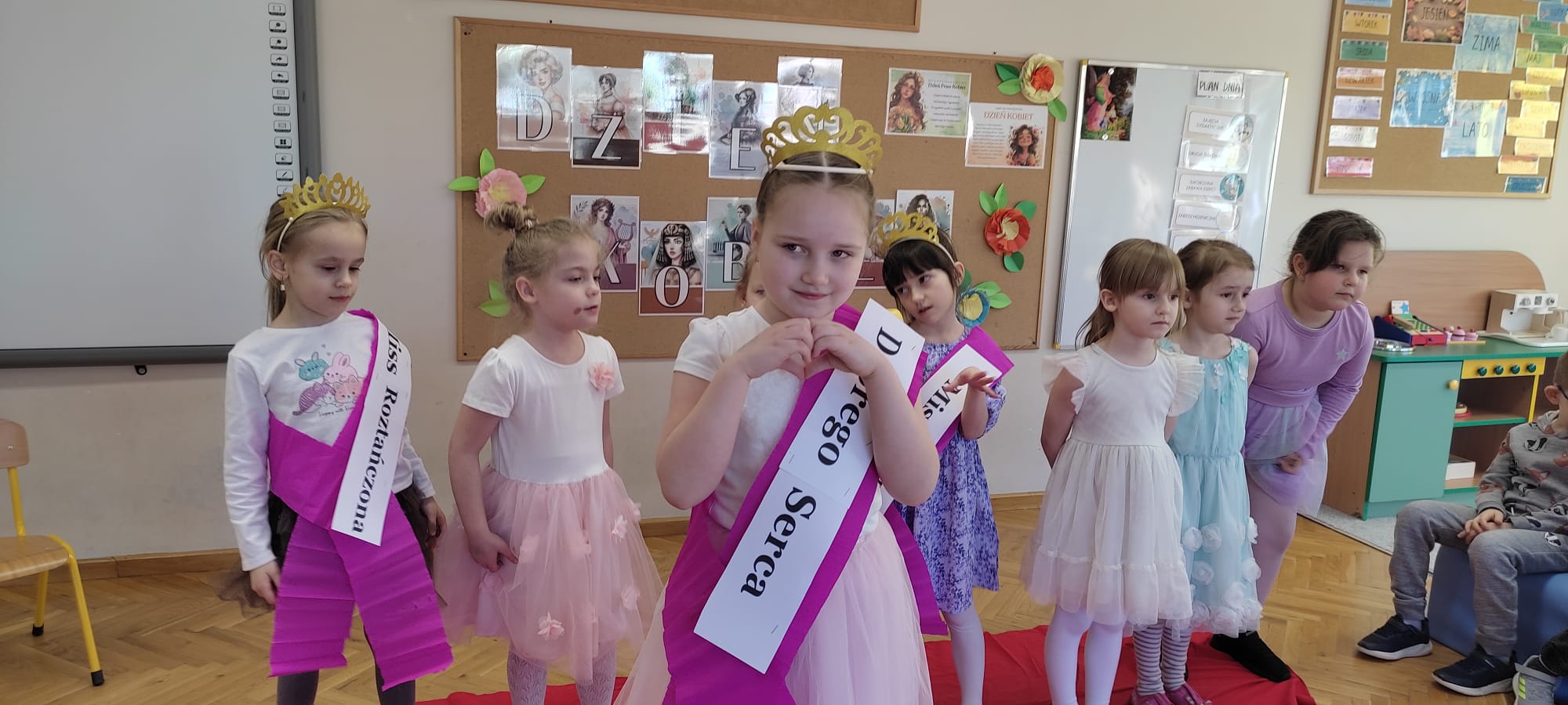 „Rozśpiewane, roztańczone i pełne wdzięku – tak właśnie nasze małe damy z grupy „Jeżyki” celebrowały swoje święto! To był dzień, w którym każda dziewczynka mogła poczuć się jak gwiazda, a uśmiech nie schodził z dziecięcych buzi. Po emocjach związanych z konkursami i szalonej zabawie, małe kobietki udały się na zasłużony odpoczynek. Wyciszenie przy spokojnej muzyce i chwila relaksu tylko dla siebie były idealnym dopełnieniem tego radosnego dnia.