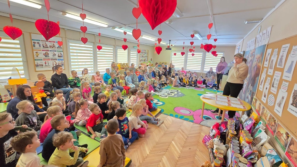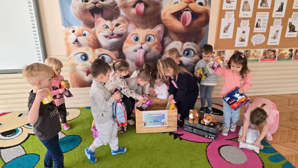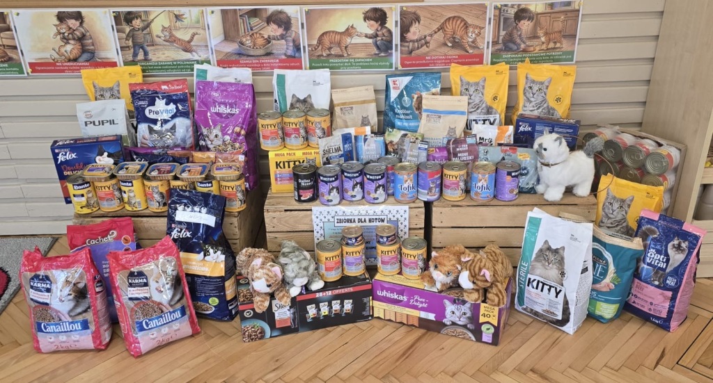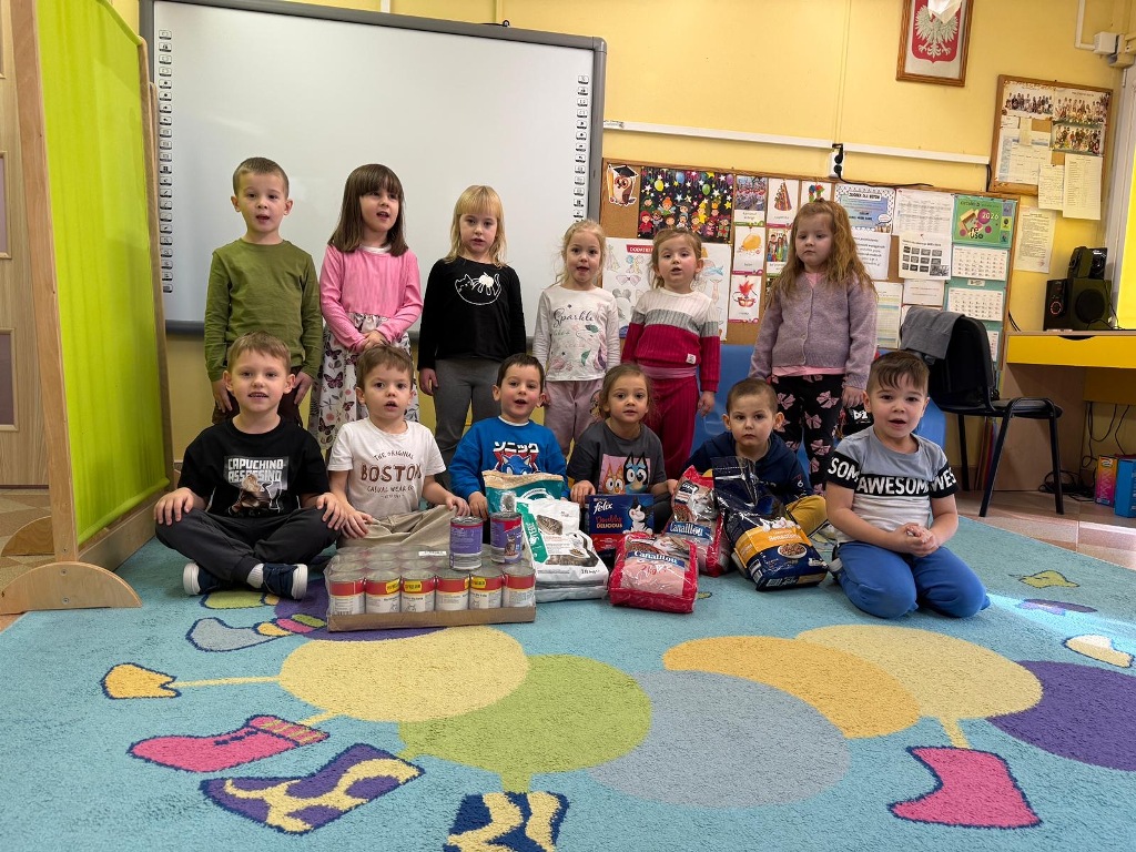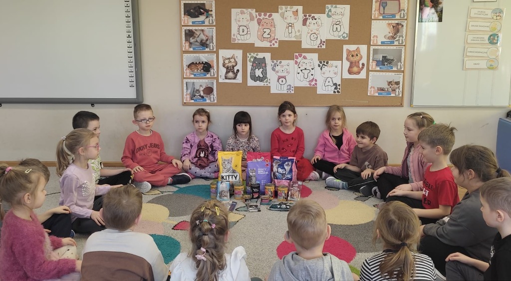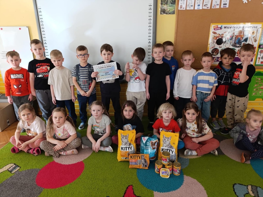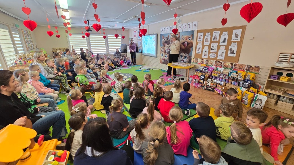 Dzień Kota to święto poświęcone kocim przyjaciołom, jednemu z najbardziej oddanych człowiekowi gatunków zwierząt domowych. Obchodzony 17 lutego w Polsce Dzień Kota to wyraz uznania dla wyjątkowej więzi między ludźmi, a kotami, kładący nacisk na radość i towarzystwo, jakie wnoszą one do naszego życia. Dzień ten staje się również platformą do podnoszenia świadomości na temat dobrostanu kotów i potrzeby adopcji ze schronisk, podkreślając odpowiedzialne podejście do ich posiadania. Z tej okazji w naszym przedszkolu, odbyła się zbiórka suchej karmy dla kotów. Przedszkolaki i Rodzice bardzo aktywnie włączyli się do akcji, dzięki czemu zgromadziliśmy bardzo dużą ilość pożywienia. Dzisiaj w Przedszkole Integracyjnym gościliśmy wyjątkowego gościa ze Schroniska dla zwierząt w Łowiczu. Pani Maria Smela podzieliła się z Nami efektami pracy nad miejscem, w którym bezdomne łowickie koty będą mogły znaleźć tymczasowe schronienie. Opowiedziała dzieciom i pokazała jak wygląda kocie życie w schronisku , uwrażliwiła przedszkolaki na potrzeby zwierząt domowych.