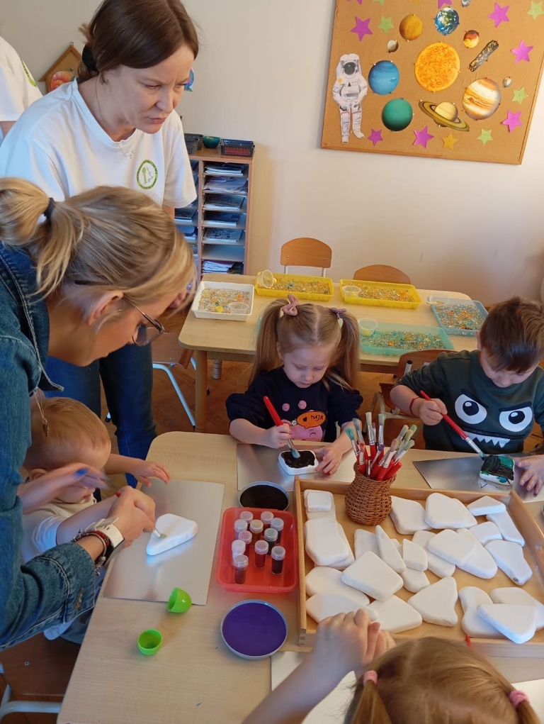 Tego dnia nasze przedszkole zamieniło się w prawdziwą galaktykę pełną gwiazd, planet i małych astronautów. Dzieci brały udział w kosmicznych zabawach, warsztatach plastycznych oraz animacjach inspirowanych tajemnicami wszechświata. Nie zabrakło również prezentacji oferty edukacyjnej oraz rozmów z kadrą pedagogiczną.