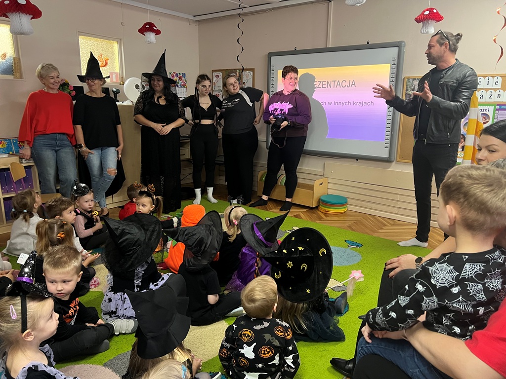 28 października 2025 r. nasze przedszkole odwiedzili uczniowie klasy fotograficznej z Zespołu Szkół Ponadpodstawowych nr 3 im. W.S. Reymonta w Łowiczu. Przygotowali dla dzieci ciekawą prezentację o tym, jak wygląda obchodzenie Dnia Wszystkich Świętych w różnych częściach świata. Po części edukacyjnej przedszkolaki mogły wziąć udział w kolorowej sesji zdjęciowej. Na najmłodszych czekały rozmaite przebrania i zabawne gadżety, które wywołały wiele uśmiechów i radości. Wydarzenie zostało zorganizowane z inicjatywy Rady Rodziców. Dziękujemy wszystkim zaangażowanym za wspólną zabawę i piękne chwile spędzone razem.