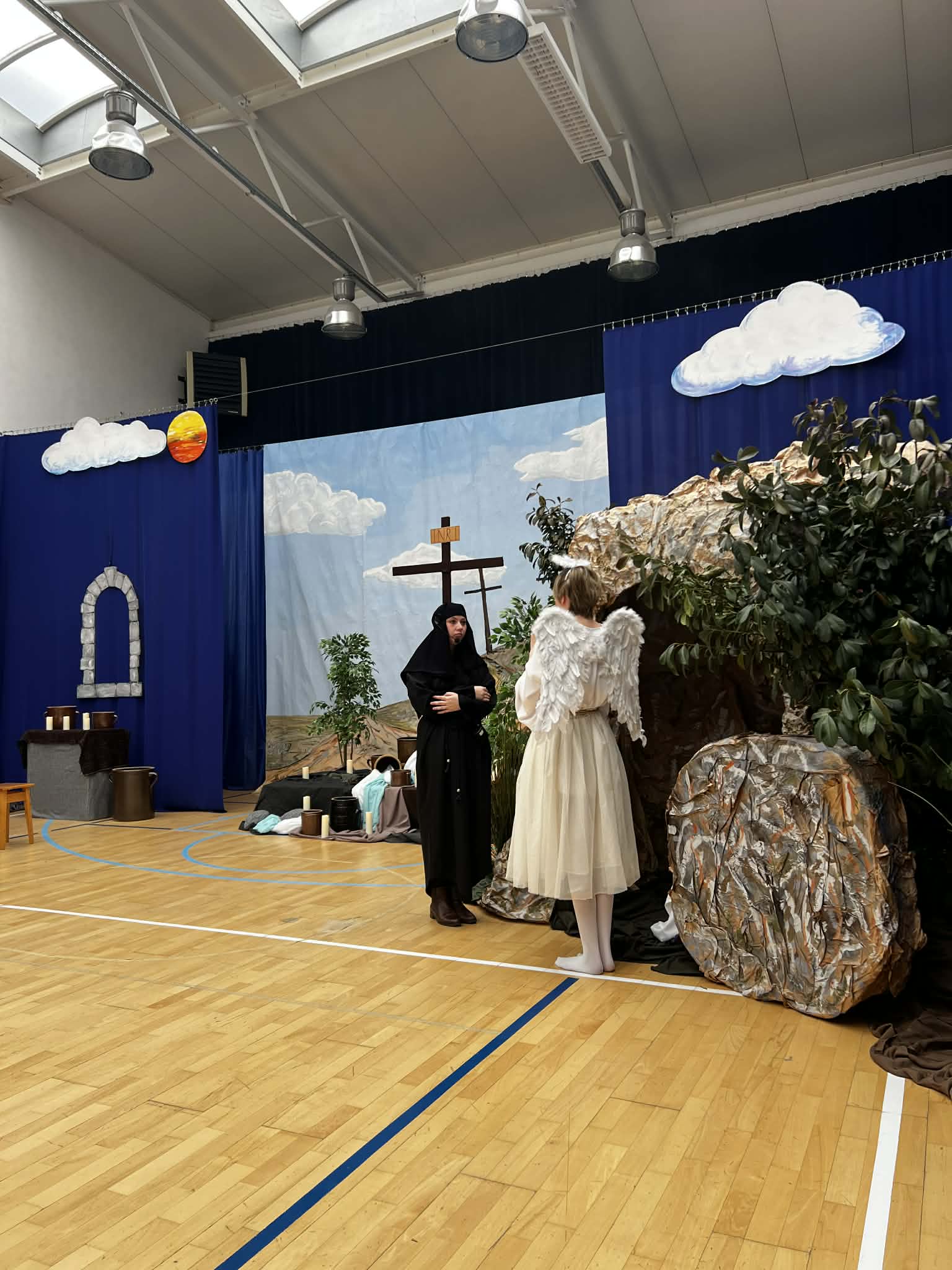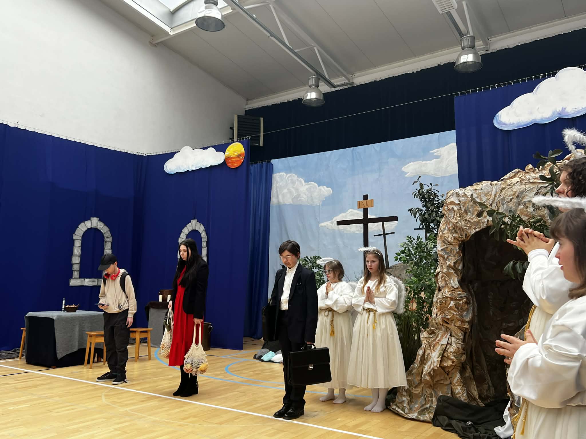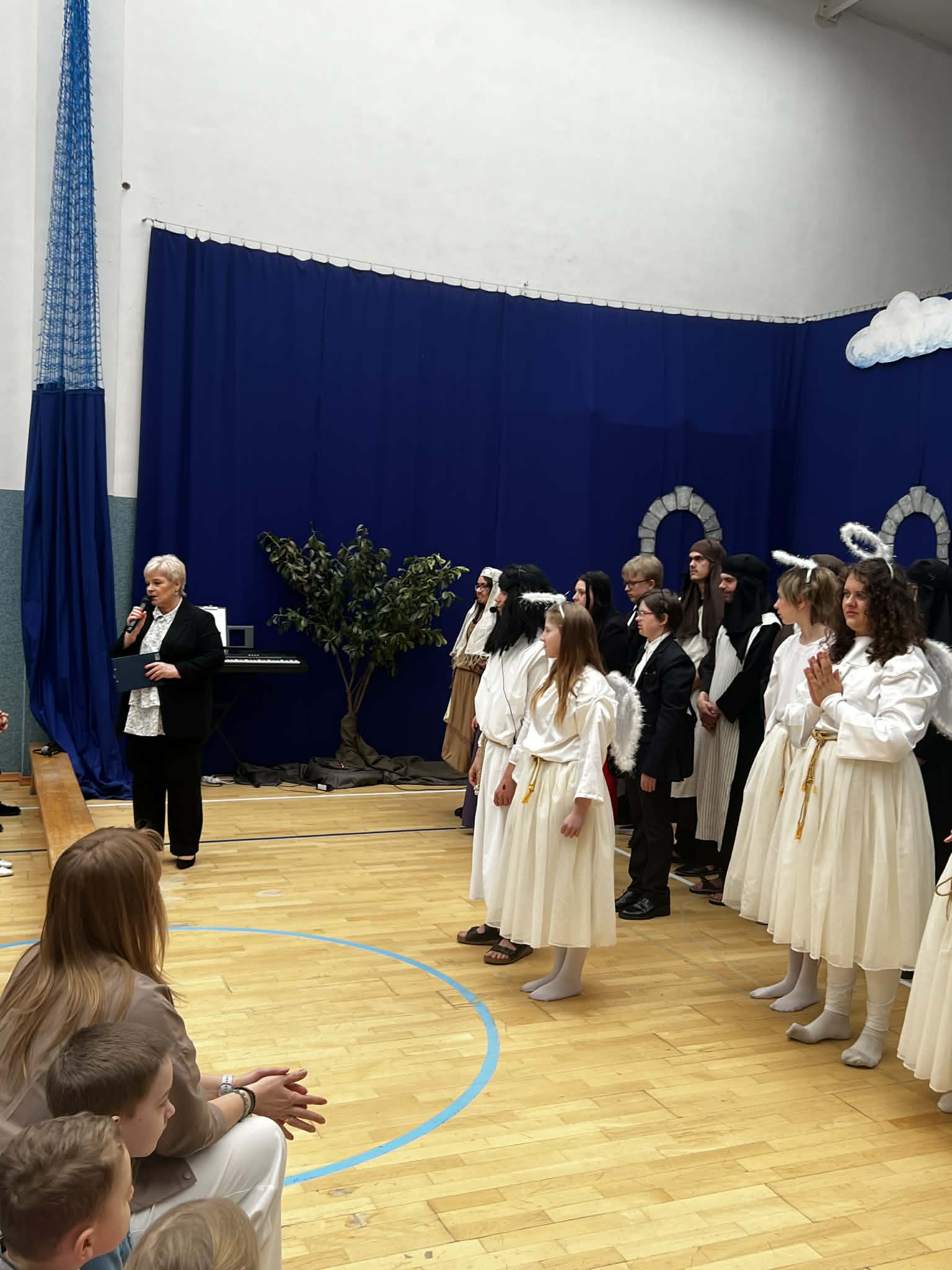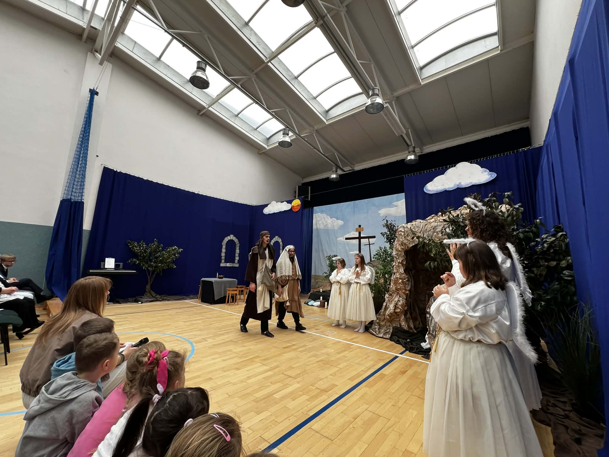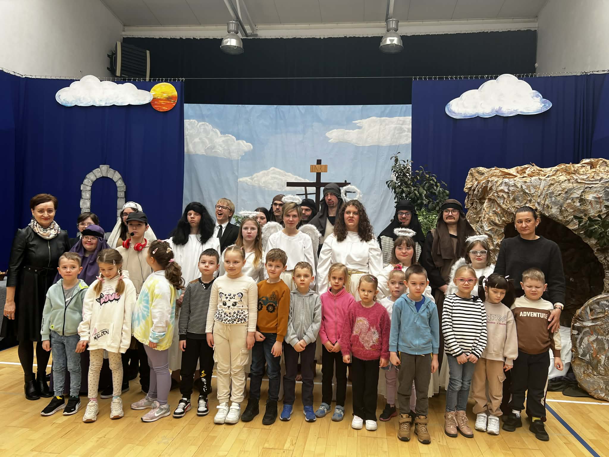 Podczas przedstawienia dzieci z dużym zainteresowaniem śledziły przebieg wydarzeń, aktywnie reagując na sceny oraz emocje bohaterów. Widowisko w przystępny i poruszający sposób ukazało sens Świąt Wielkanocnych, co sprzyjało lepszemu zrozumieniu omawianych treści.