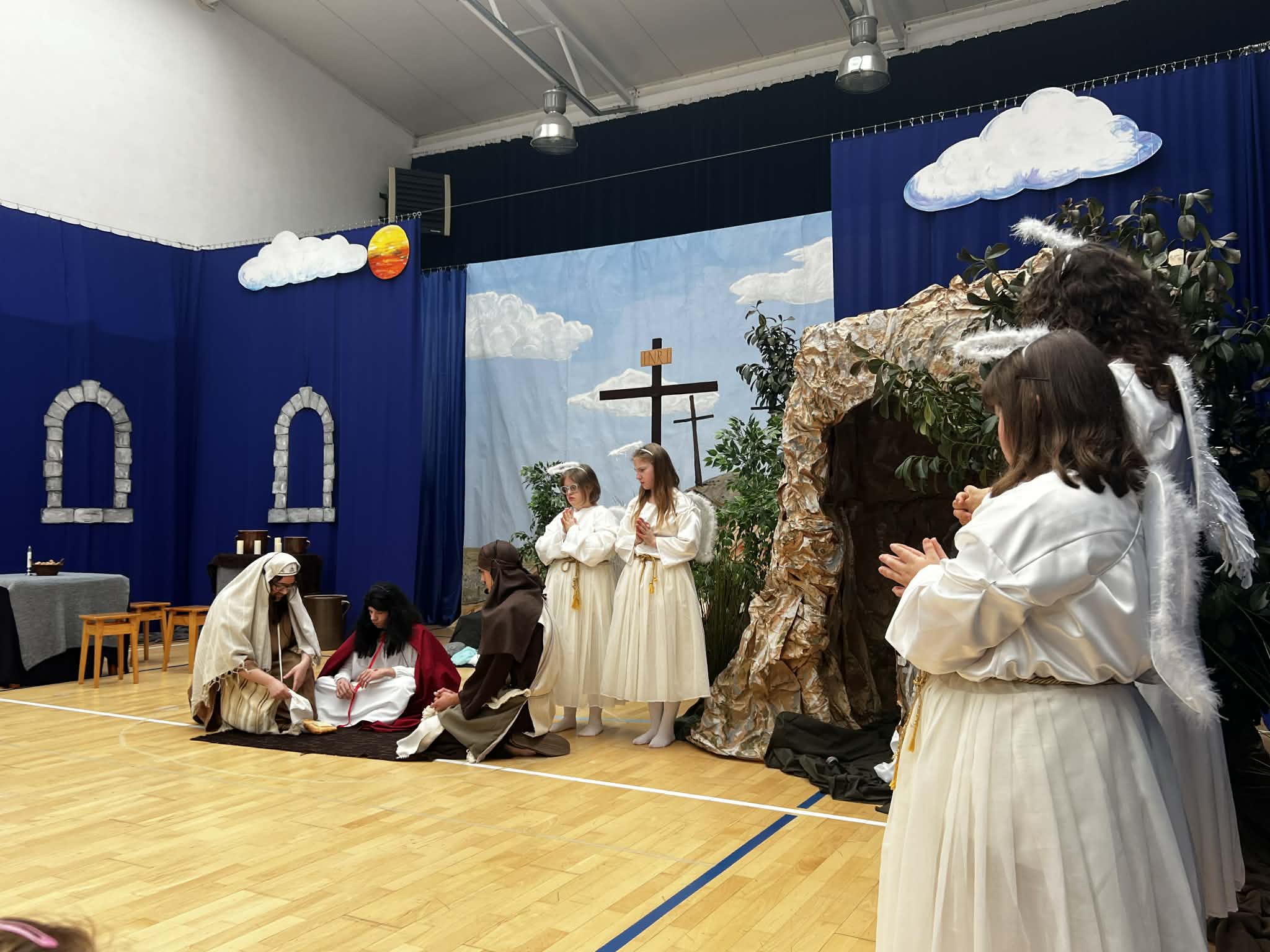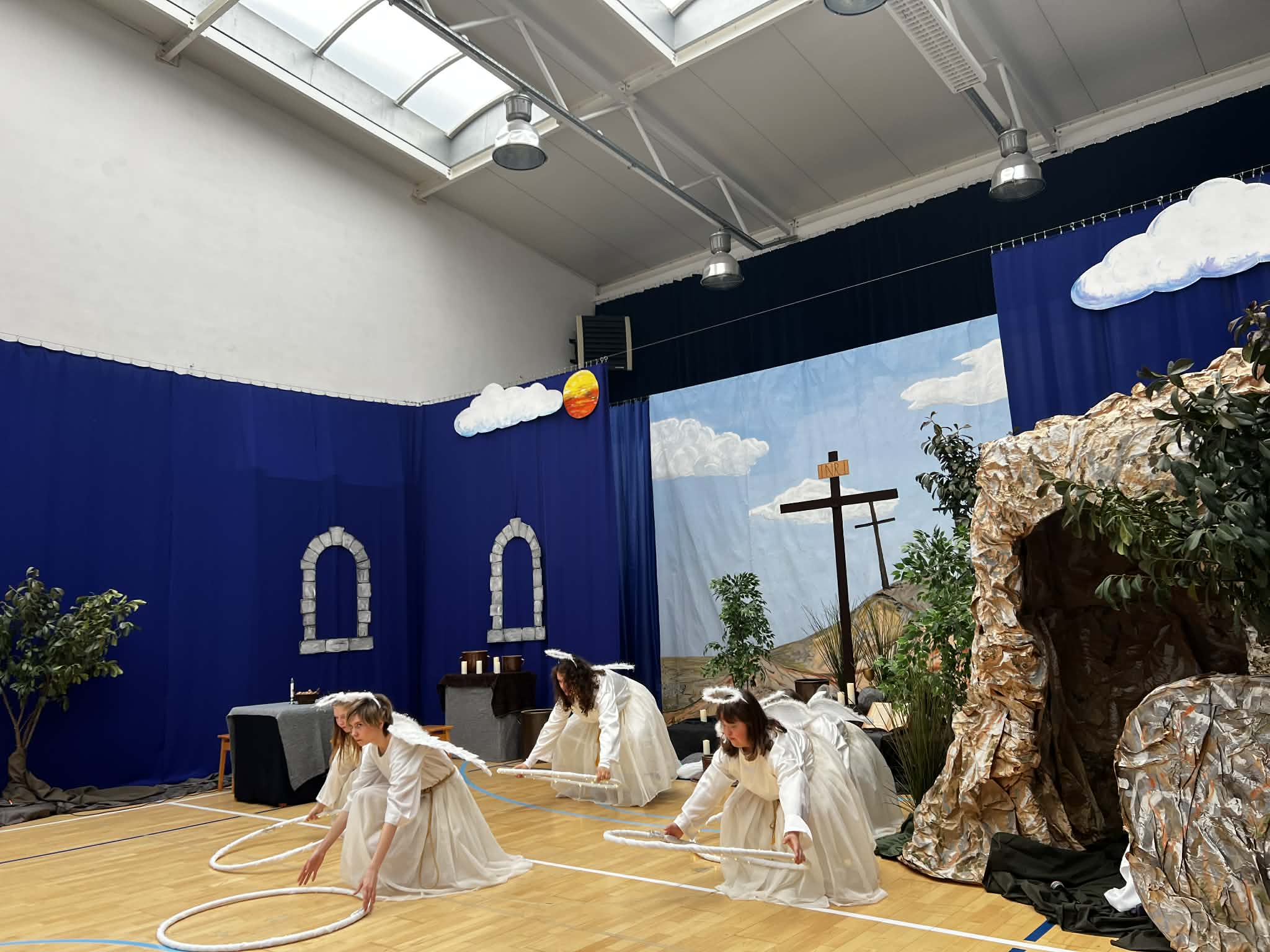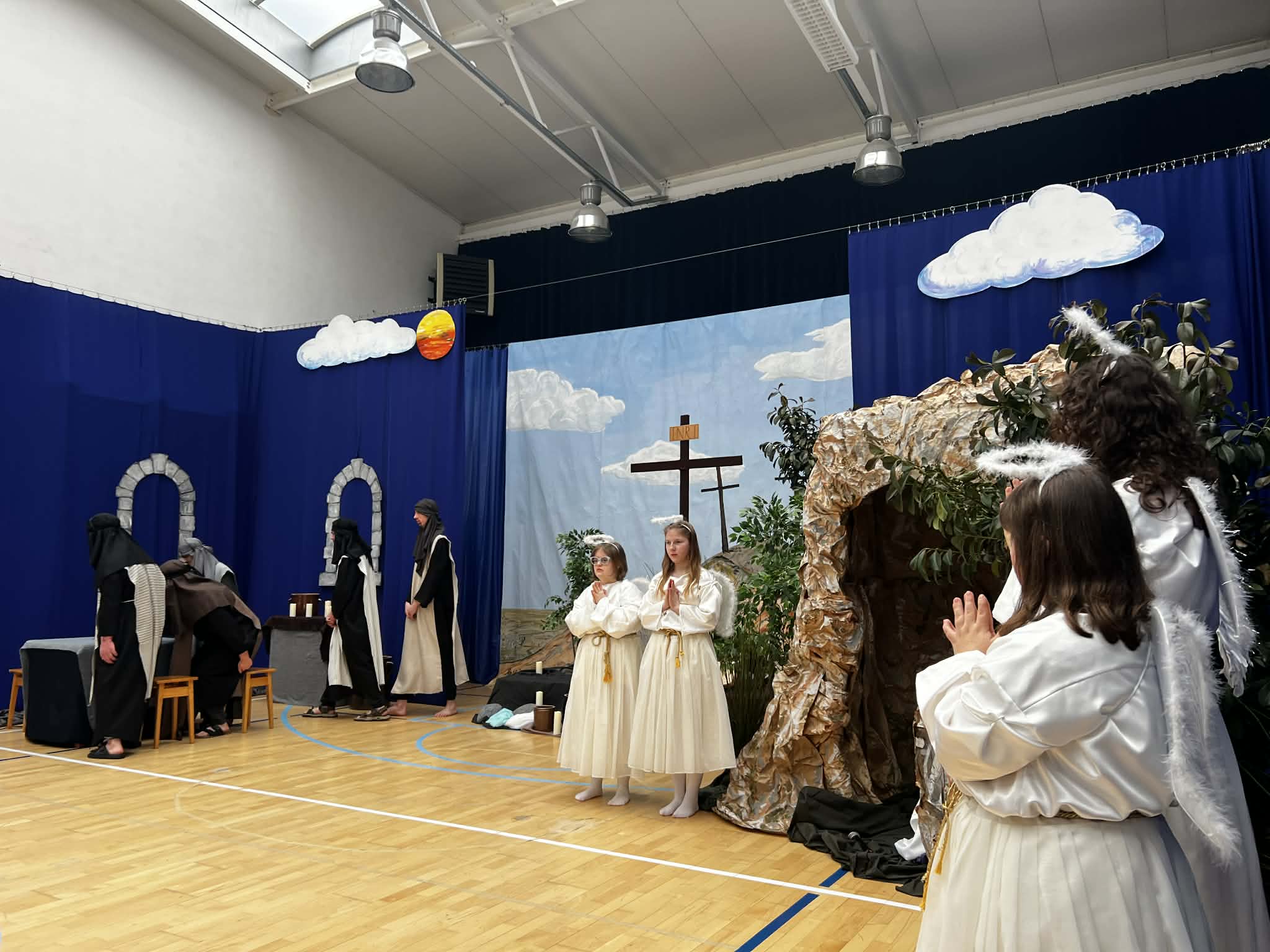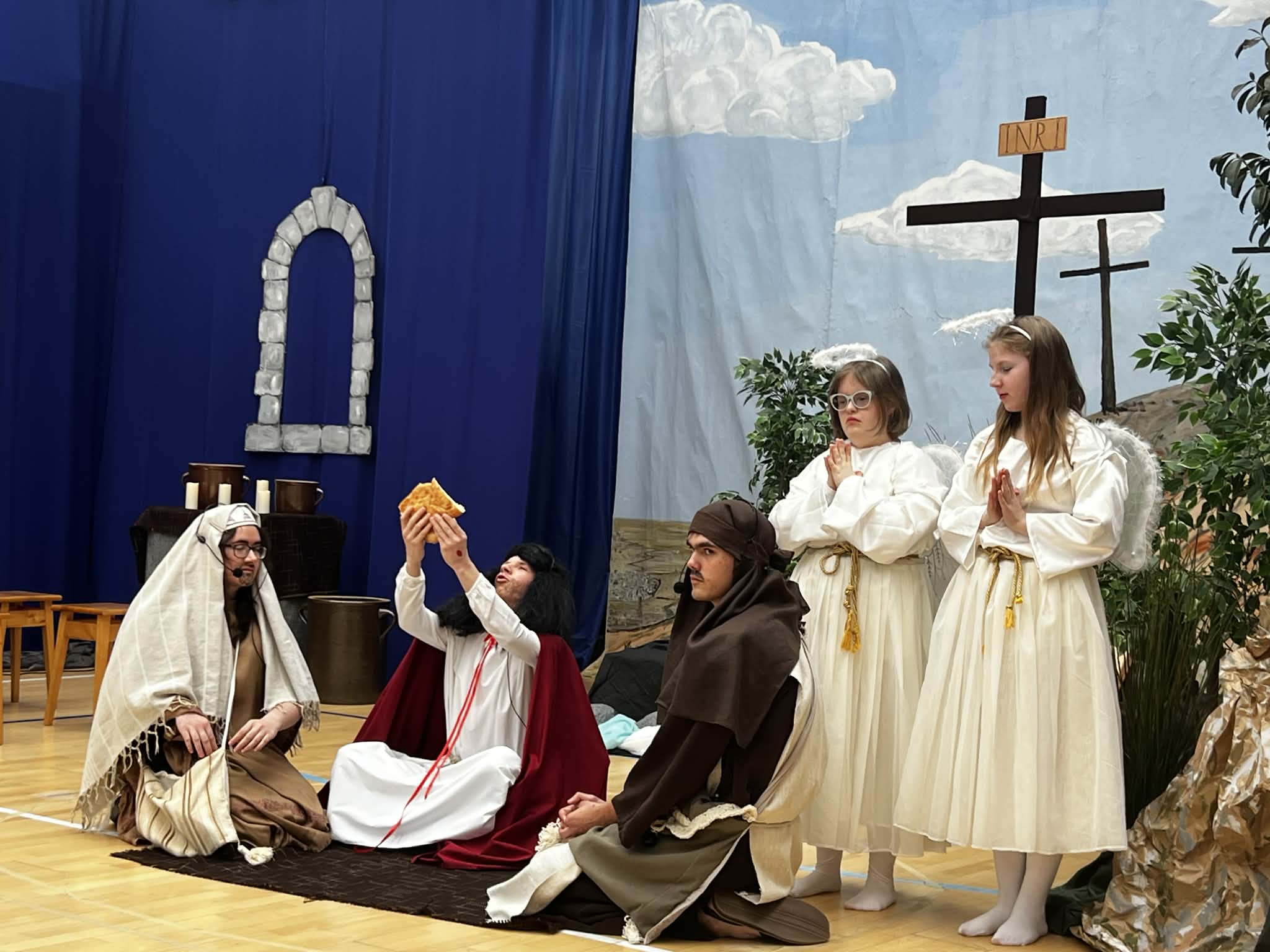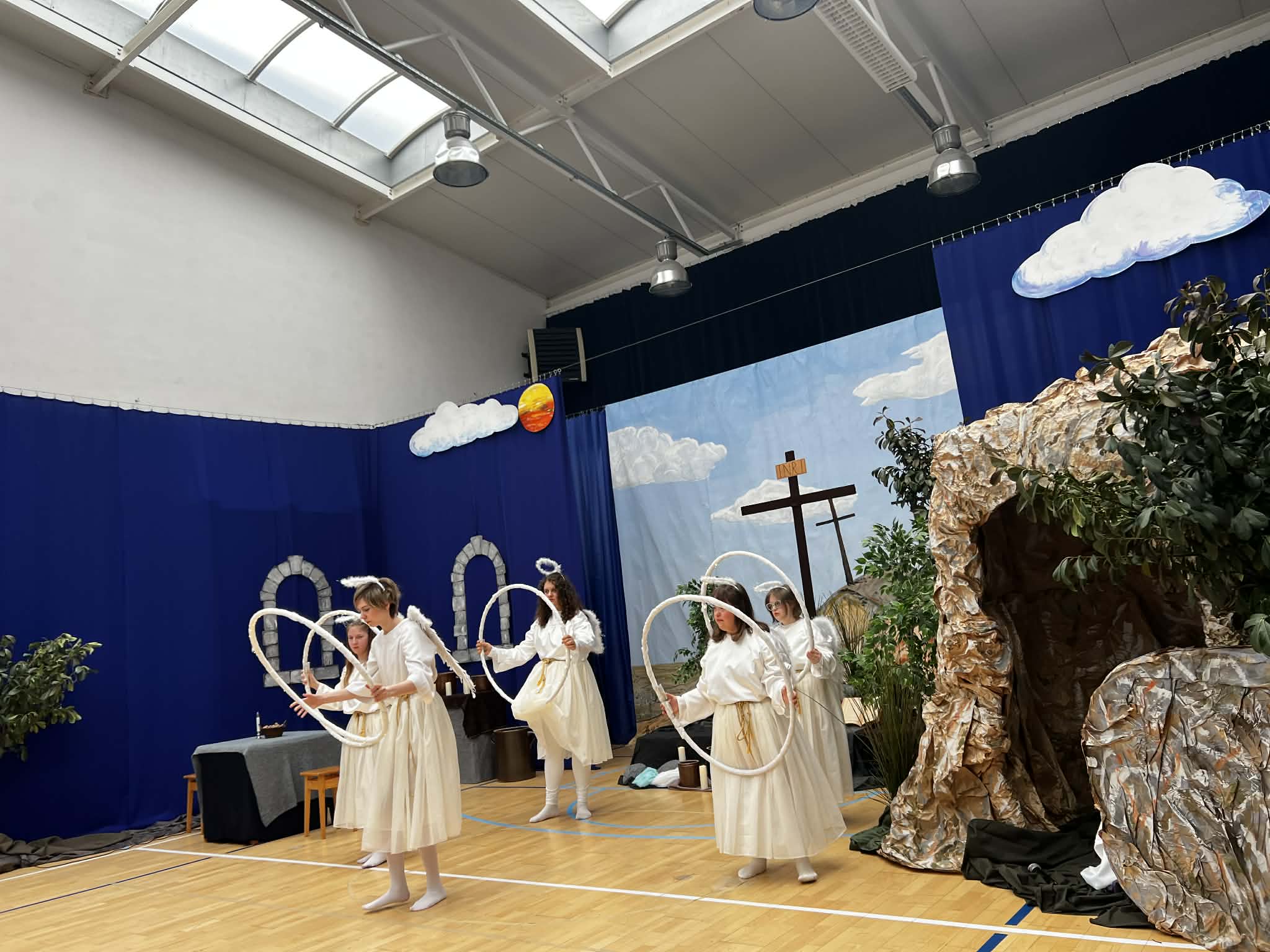 Podczas przedstawienia dzieci z dużym zainteresowaniem śledziły przebieg wydarzeń, aktywnie reagując na sceny oraz emocje bohaterów. Widowisko w przystępny i poruszający sposób ukazało sens Świąt Wielkanocnych, co sprzyjało lepszemu zrozumieniu omawianych treści.
