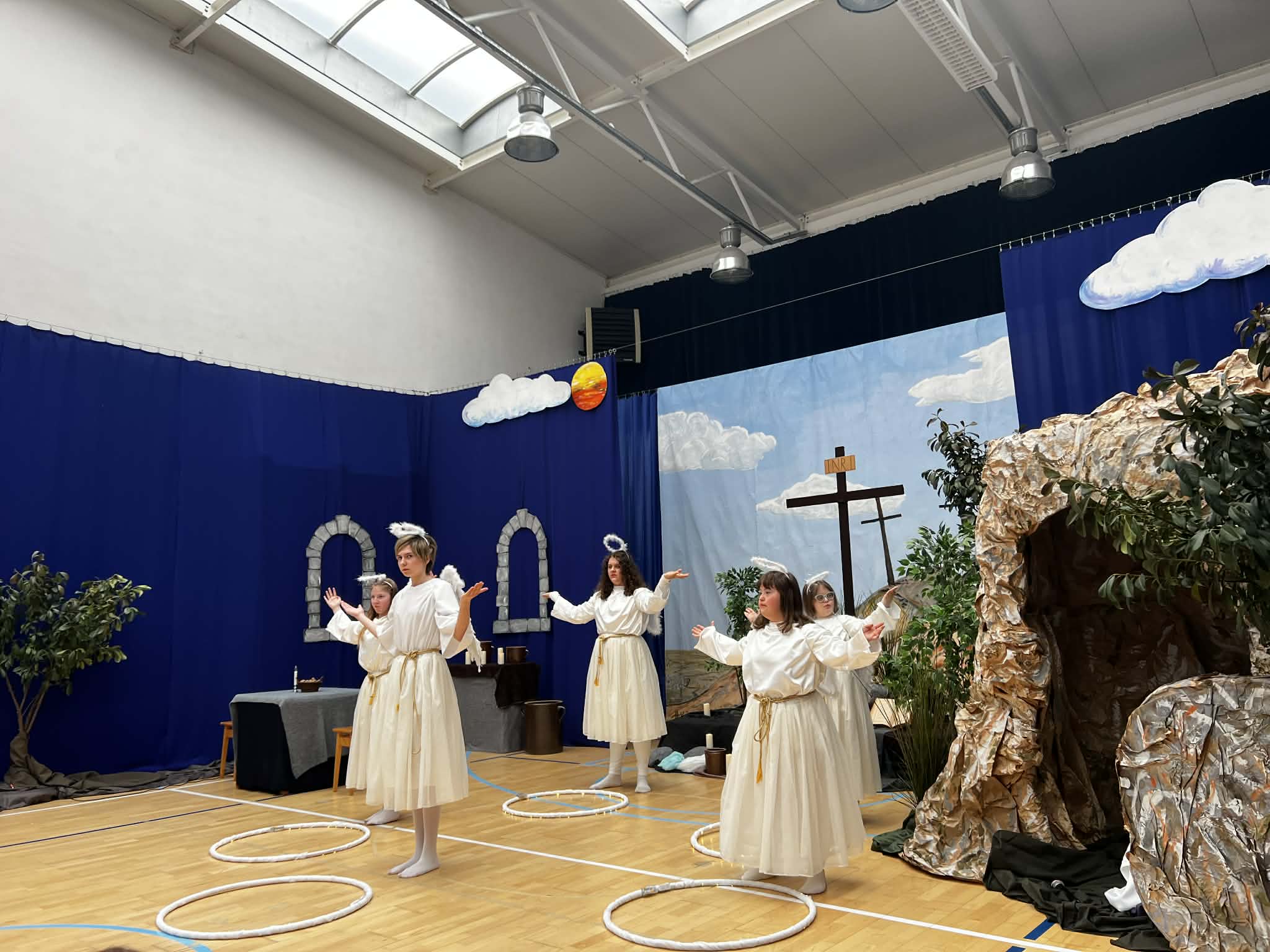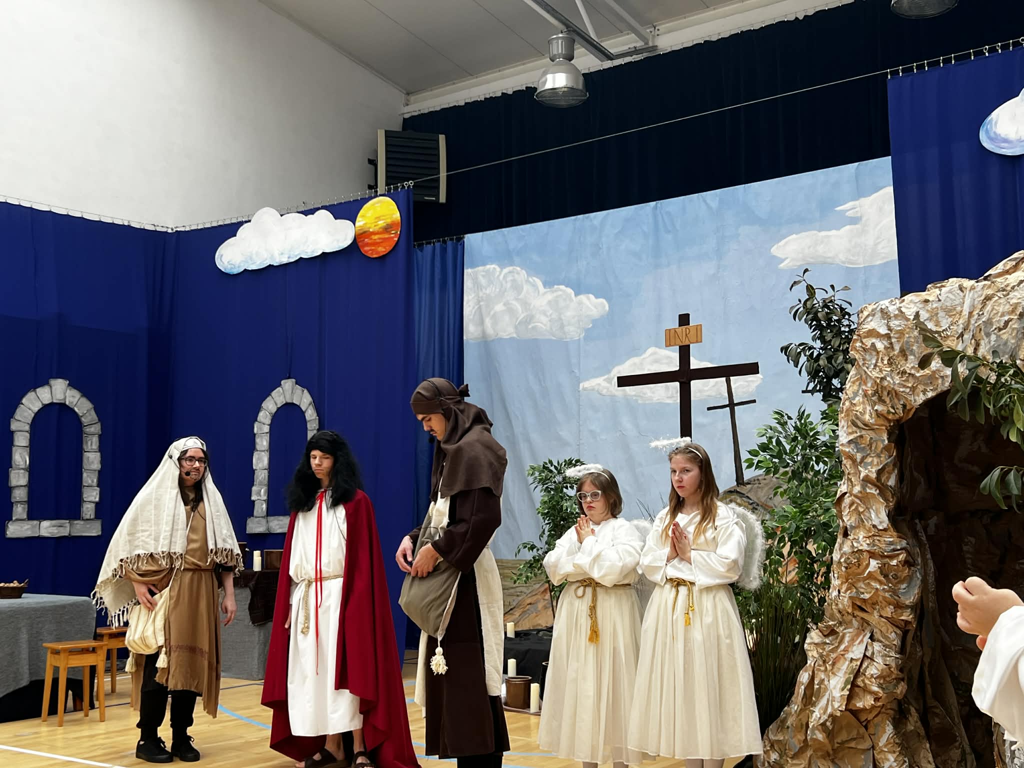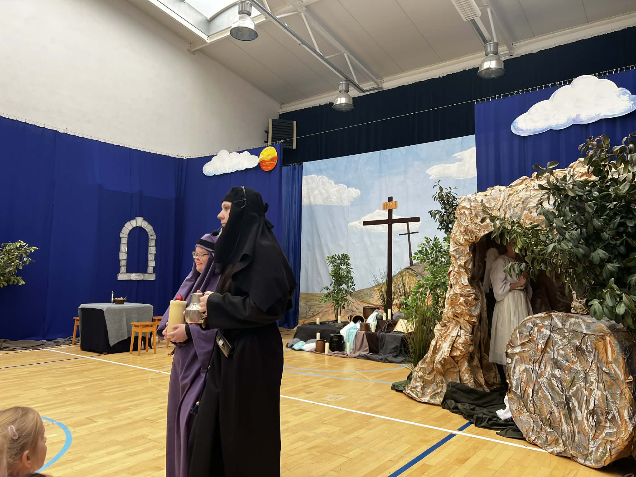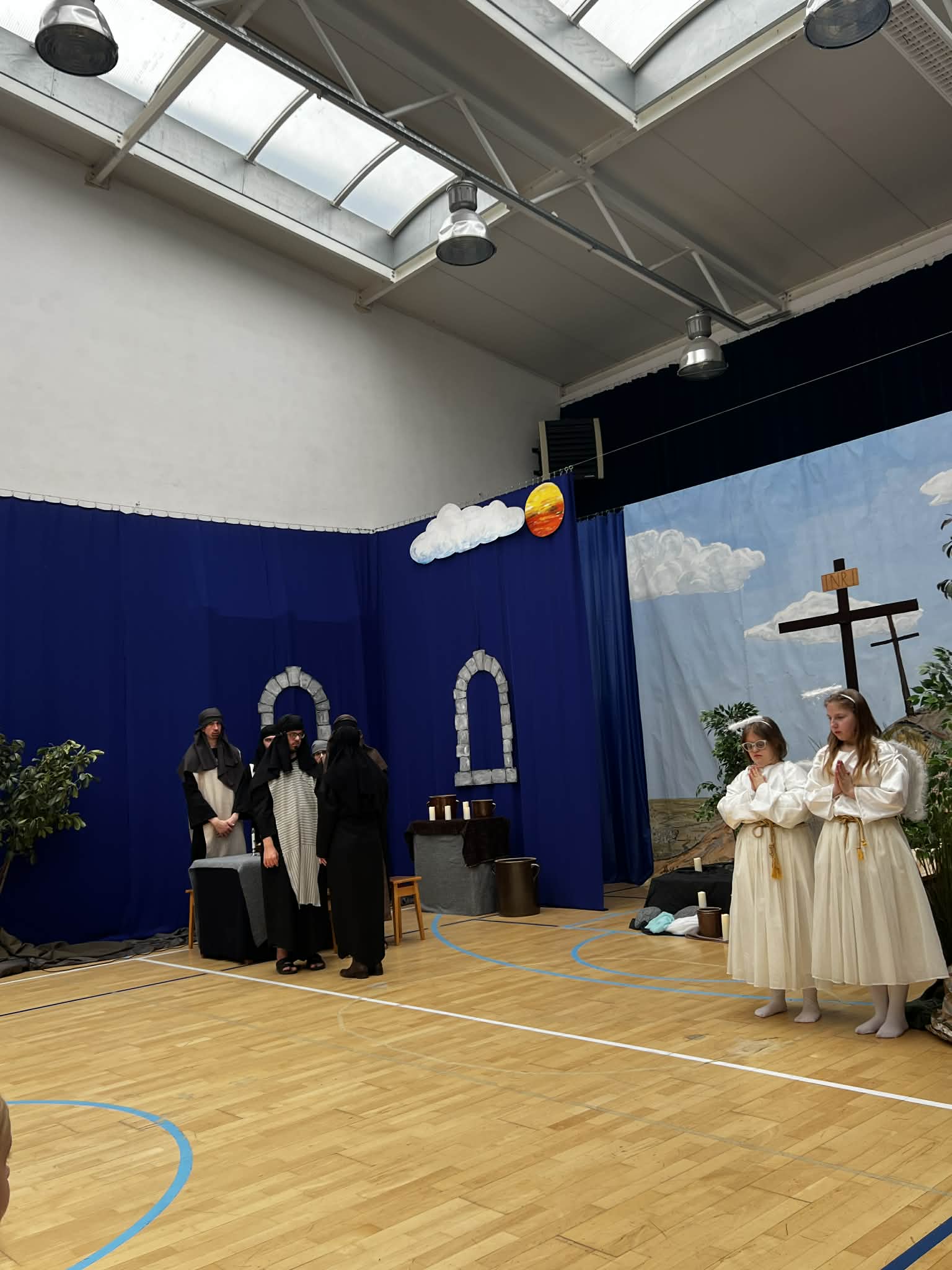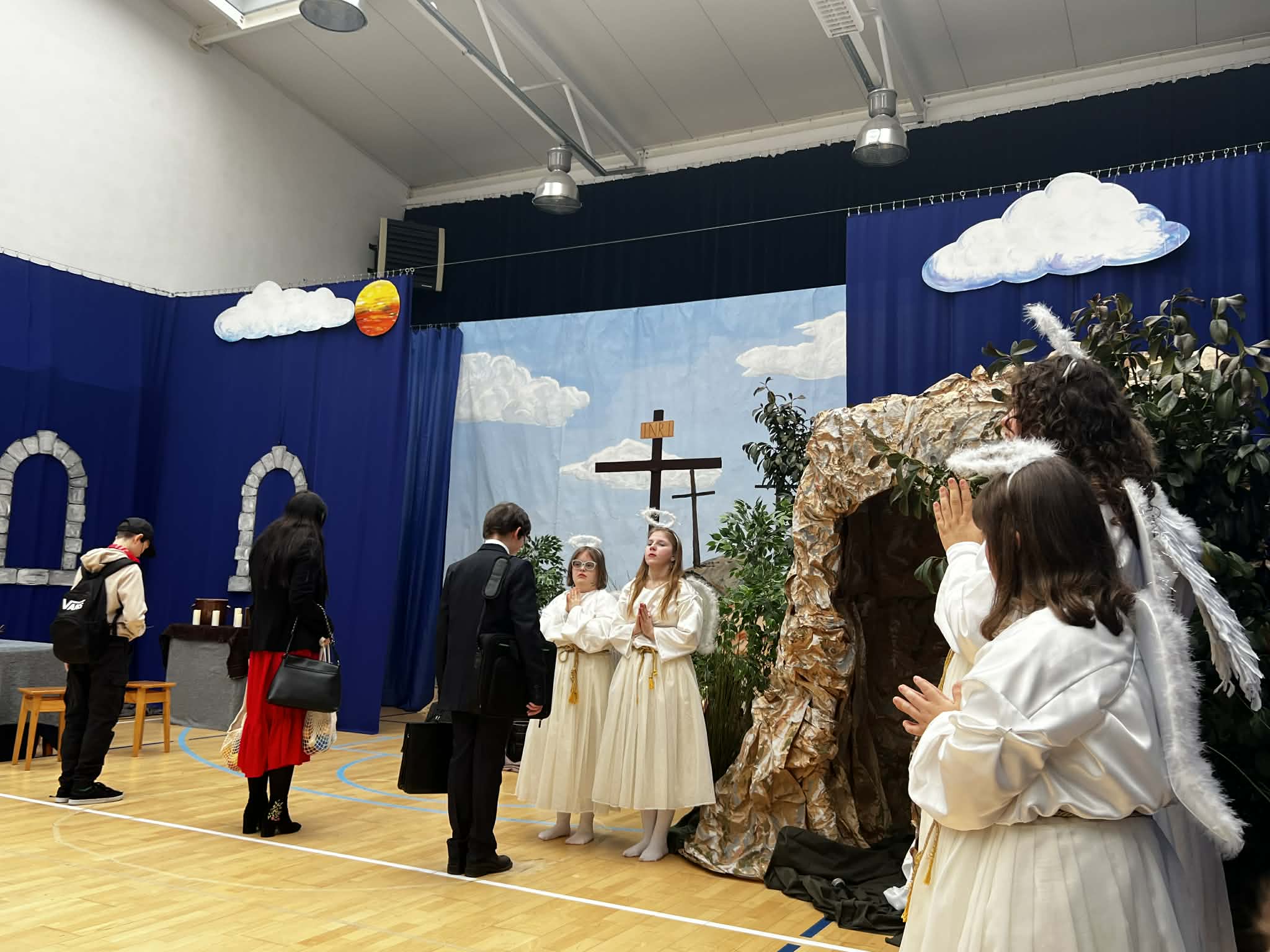 Podczas przedstawienia dzieci z dużym zainteresowaniem śledziły przebieg wydarzeń, aktywnie reagując na sceny oraz emocje bohaterów. Widowisko w przystępny i poruszający sposób ukazało sens Świąt Wielkanocnych, co sprzyjało lepszemu zrozumieniu omawianych treści.