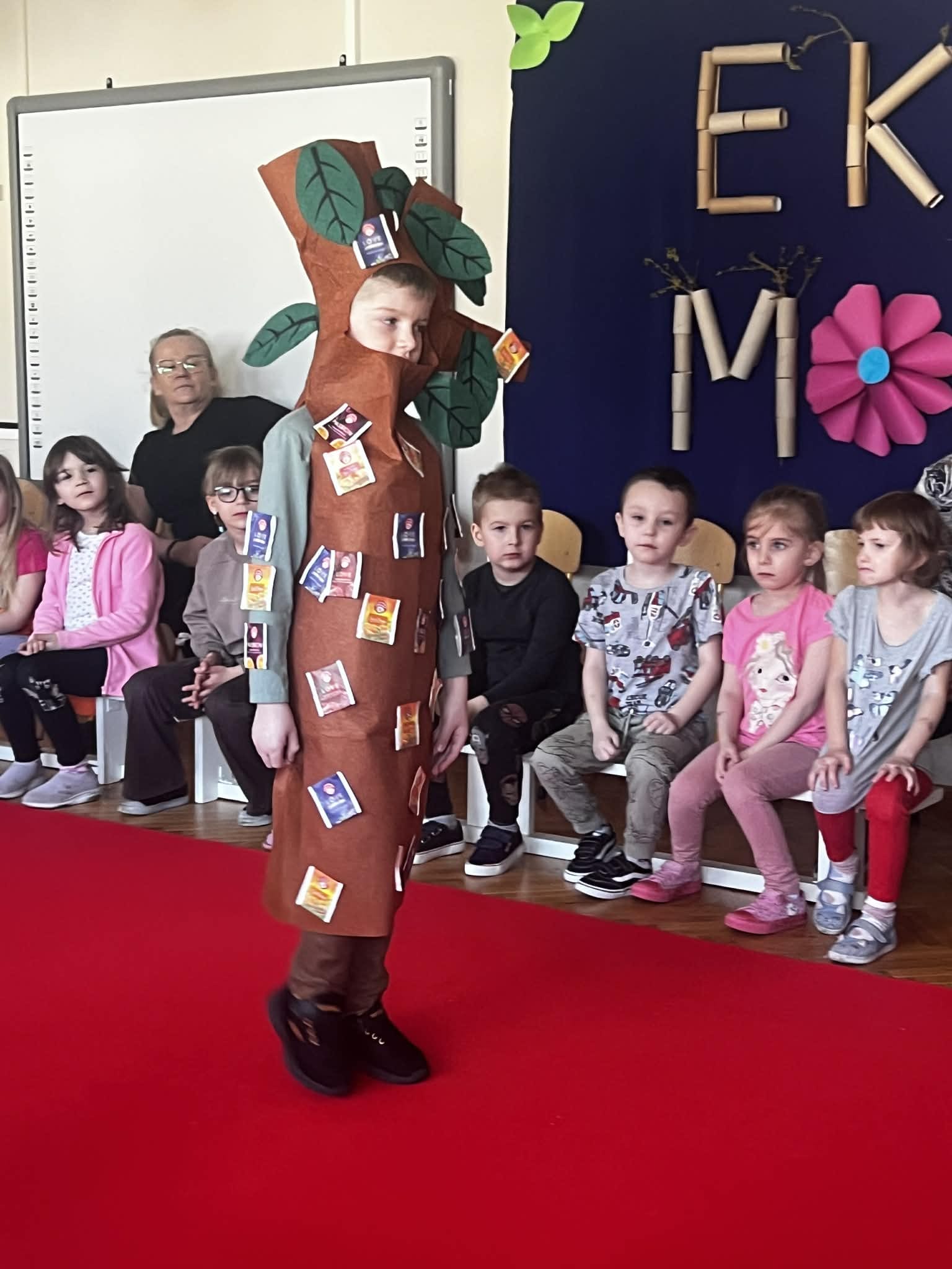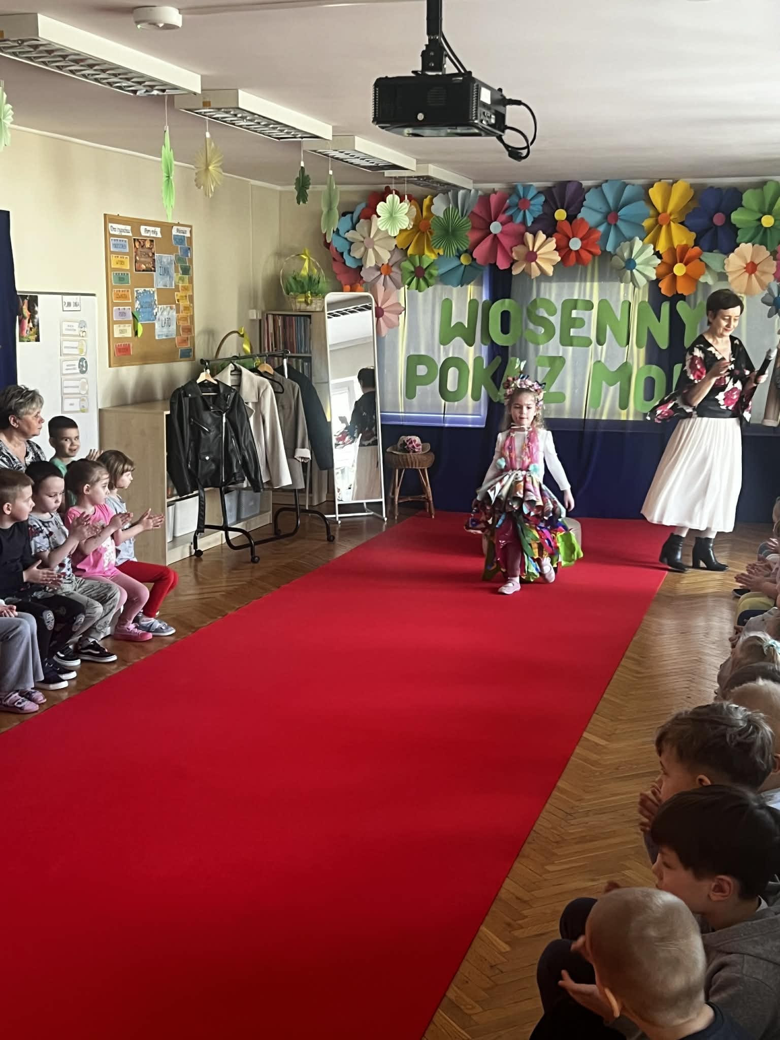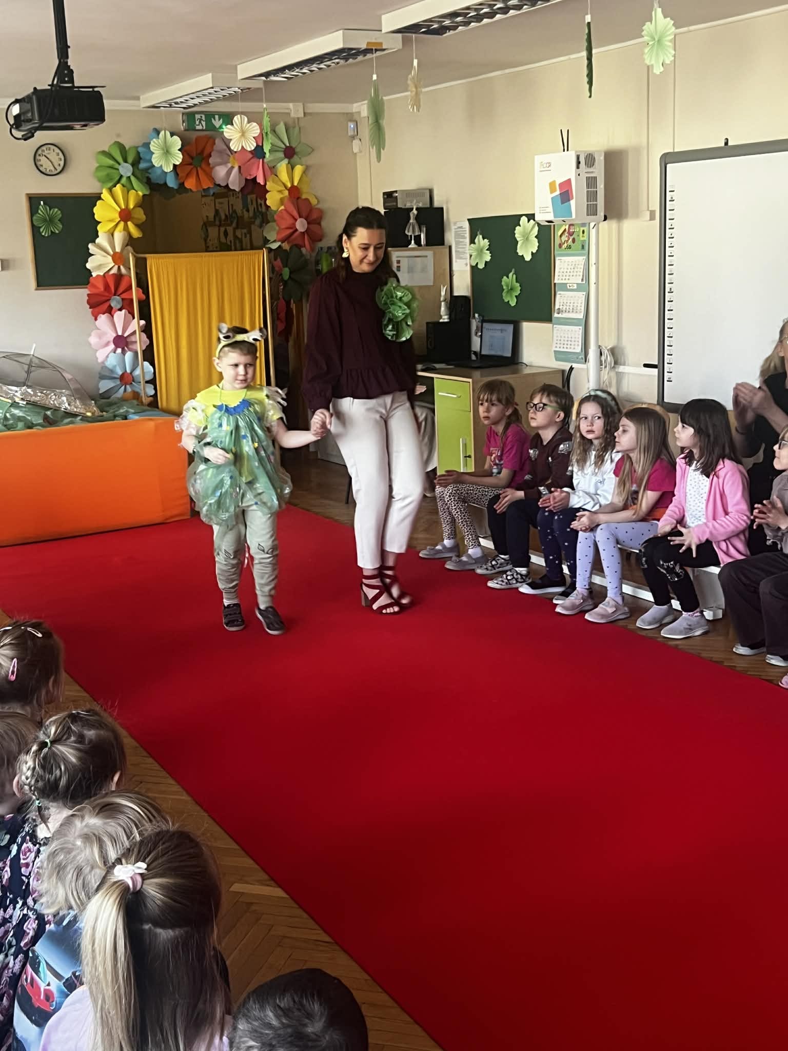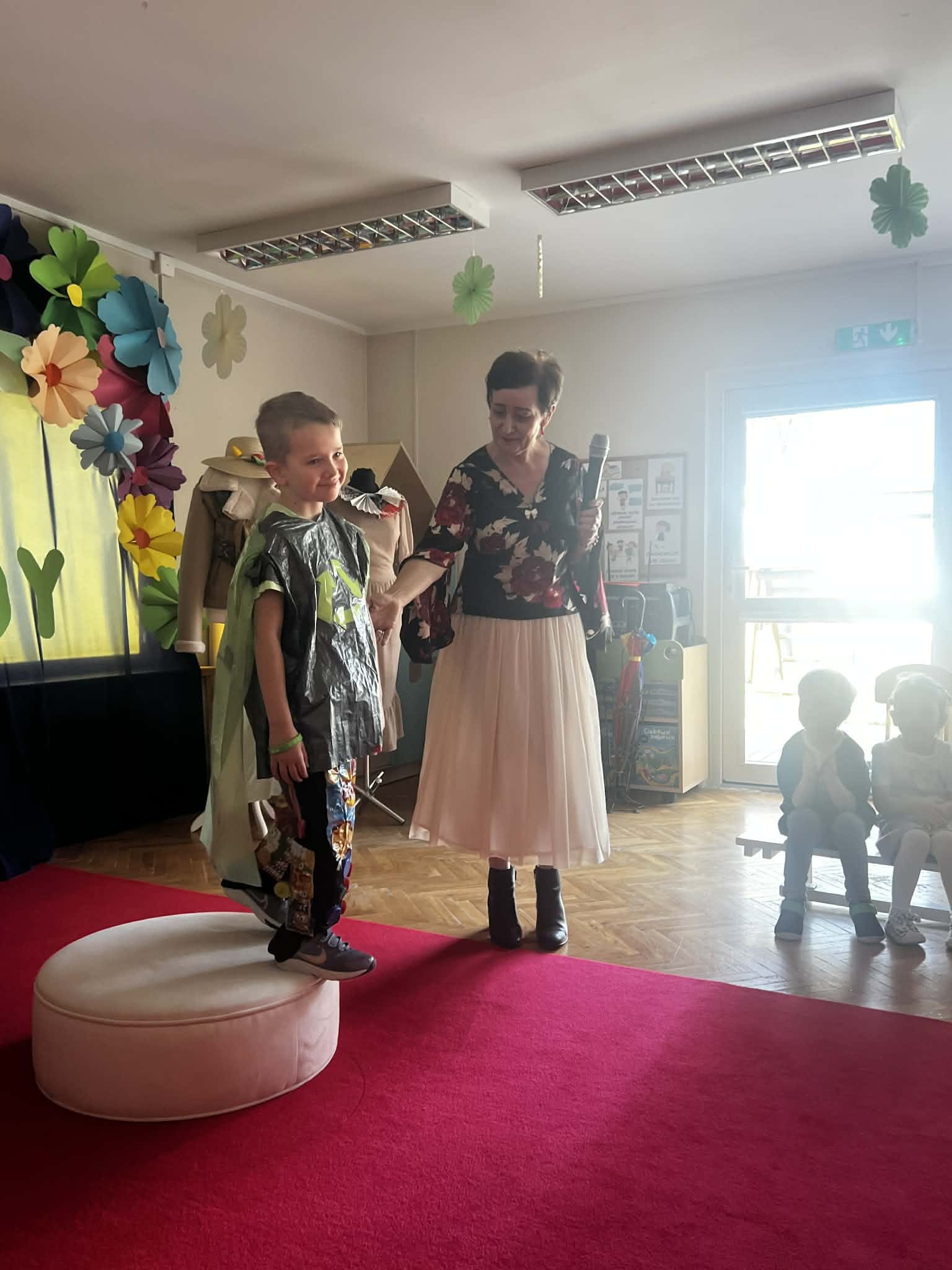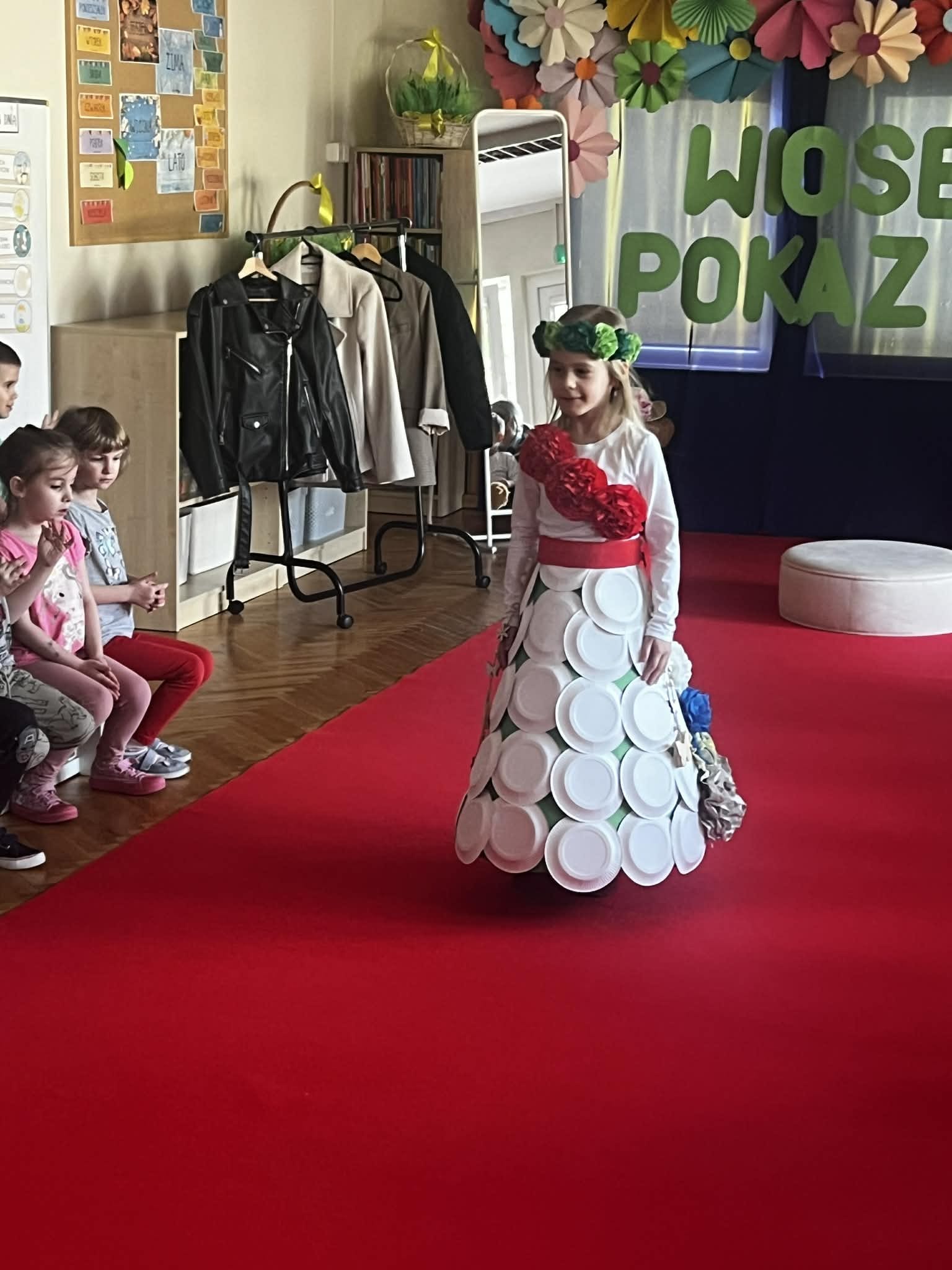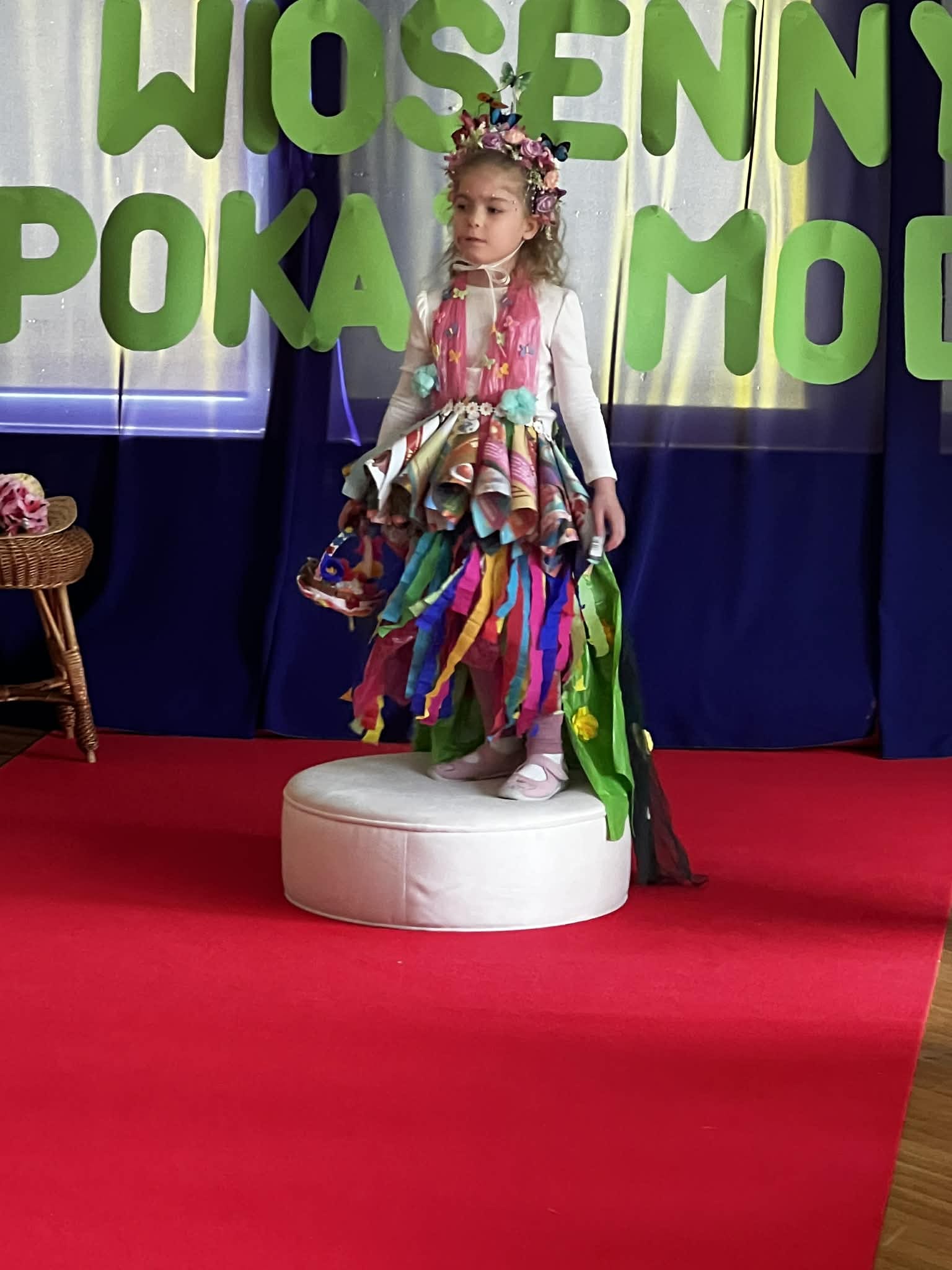 W dniu 24 marca 2026 r. w przedszkolu odbył się ,,Wiosenny pokaz mody". Wydarzenie to było nie tylko okazją do wspaniałej zabawy, ale również cenną lekcją troski o środowisko. Dzieci z grupy ,,Jeżyki" ogromnym zaangażowaniem zaprezentowały stroje przygotowane wspólnie z rodzicami. Wśród kreacji można było podziwiać niezwykle pomysłowe ubrania wykonane z gazet, kartonów, plastikowych butelek, nakrętek czy folii. Nie zabrakło kolorowych sukni, fantazyjnych peleryn, oryginalnych nakryć głowy oraz dodatków, które zachwycały kreatywnością i pomysłowością. Pokaz mody miał również ważny wymiar edukacyjny – dzieci uczyły się, jak poprzez ponowne wykorzystanie różnych materiałów można dbać o naszą planetę. Grupa „Jeżyki” udowodniła, że ekologia może być ciekawa, twórcza i pełna radości.