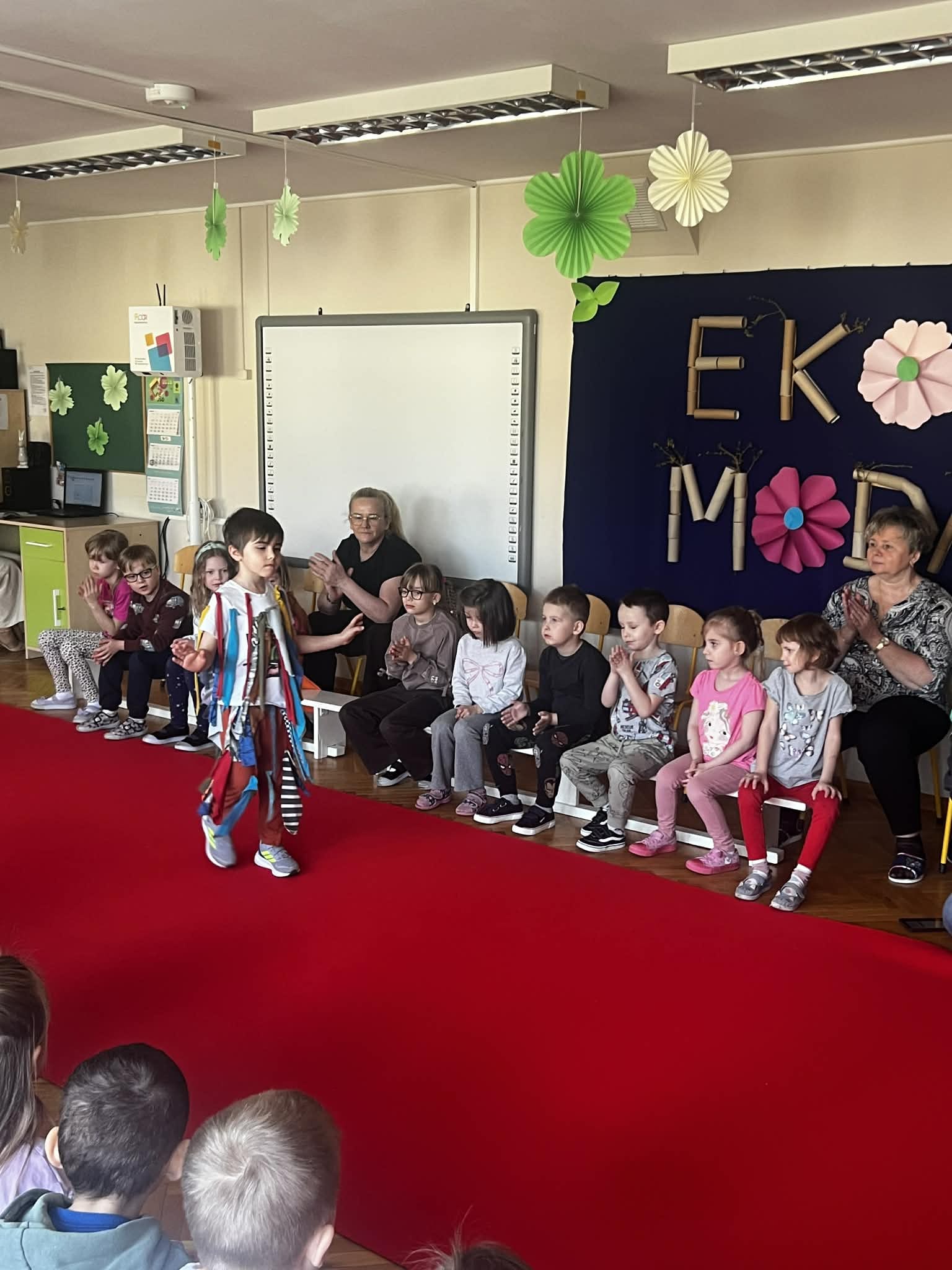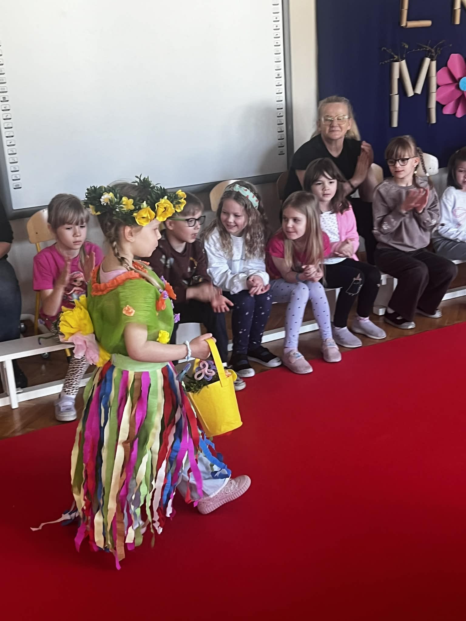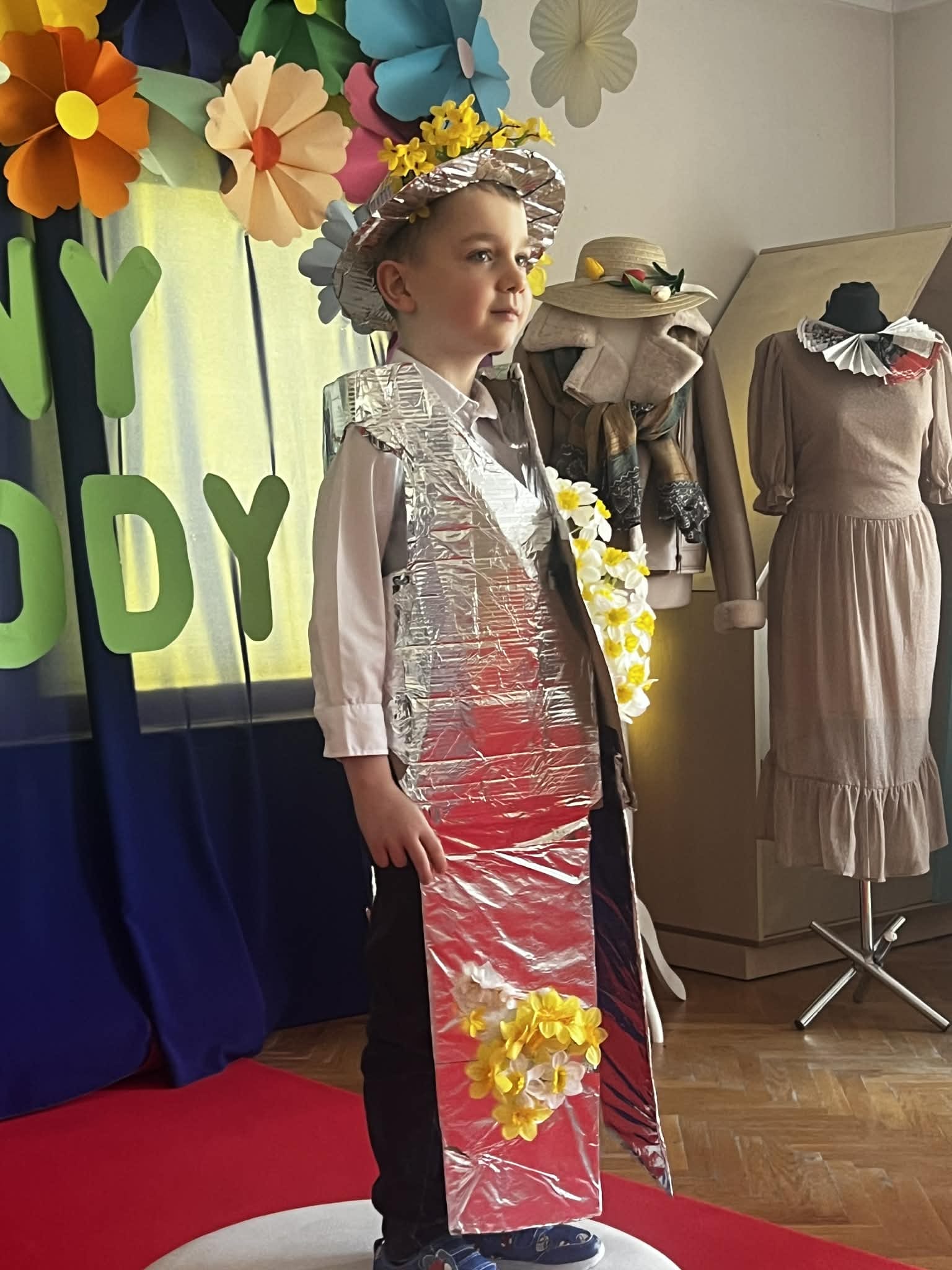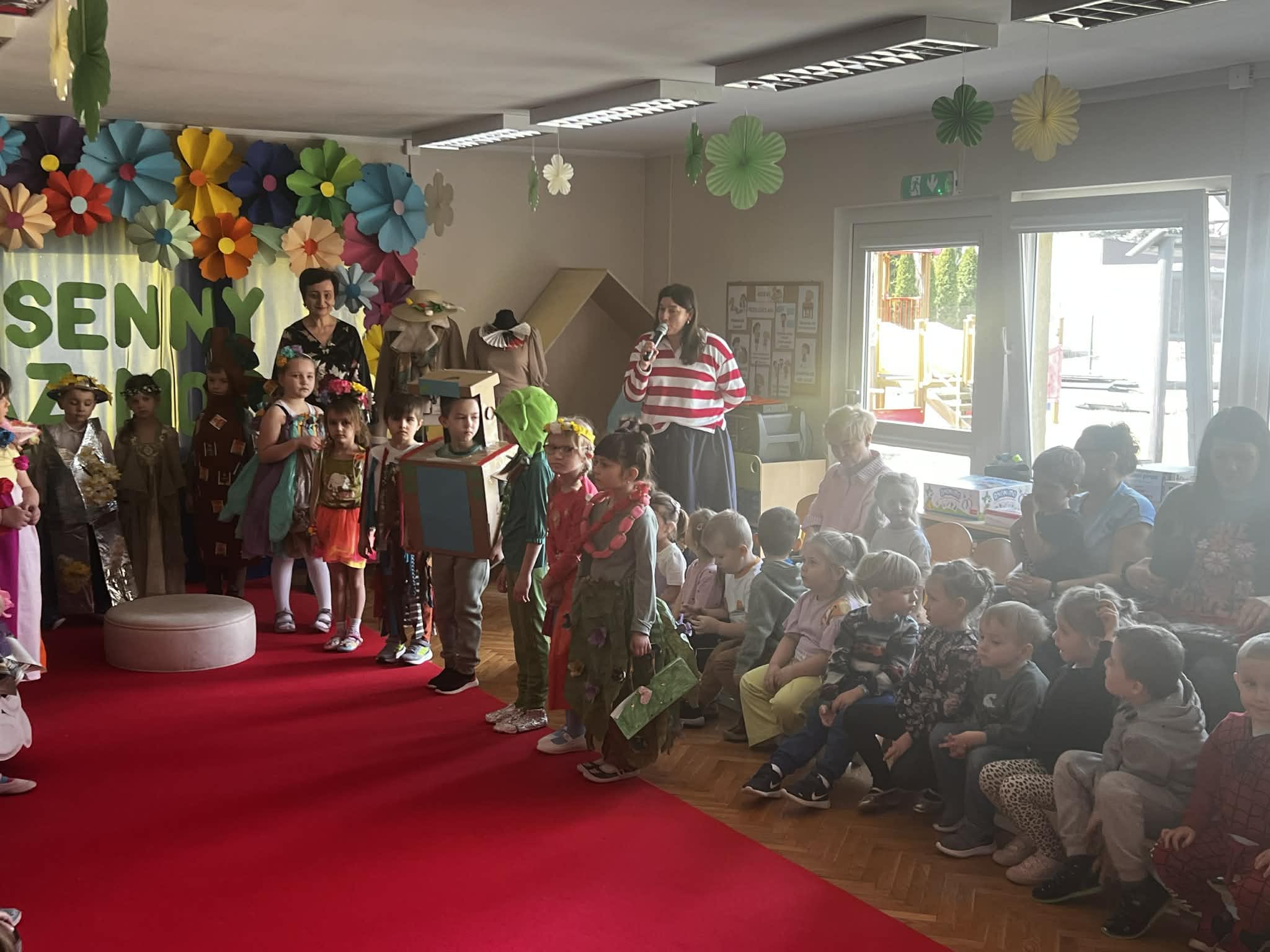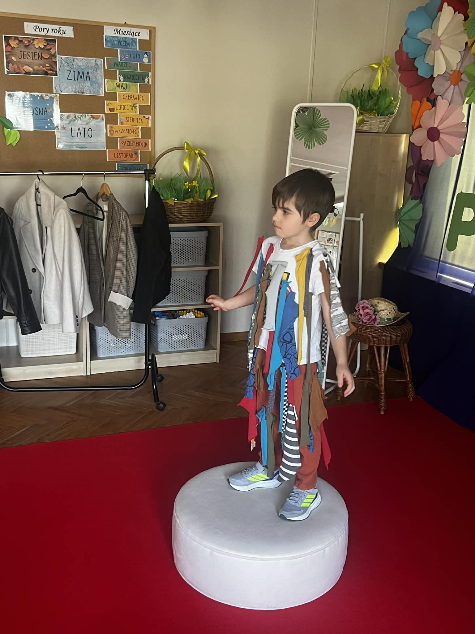 W dniu 24 marca 2026 r. w przedszkolu odbył się ,,Wiosenny pokaz mody". Wydarzenie to było nie tylko okazją do wspaniałej zabawy, ale również cenną lekcją troski o środowisko. Dzieci z grupy ,,Jeżyki" ogromnym zaangażowaniem zaprezentowały stroje przygotowane wspólnie z rodzicami. Wśród kreacji można było podziwiać niezwykle pomysłowe ubrania wykonane z gazet, kartonów, plastikowych butelek, nakrętek czy folii. Nie zabrakło kolorowych sukni, fantazyjnych peleryn, oryginalnych nakryć głowy oraz dodatków, które zachwycały kreatywnością i pomysłowością. Pokaz mody miał również ważny wymiar edukacyjny – dzieci uczyły się, jak poprzez ponowne wykorzystanie różnych materiałów można dbać o naszą planetę. Grupa „Jeżyki” udowodniła, że ekologia może być ciekawa, twórcza i pełna radości.