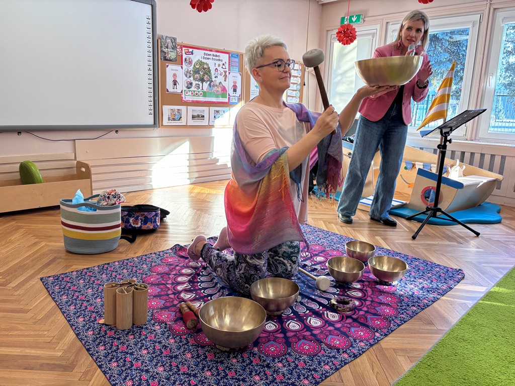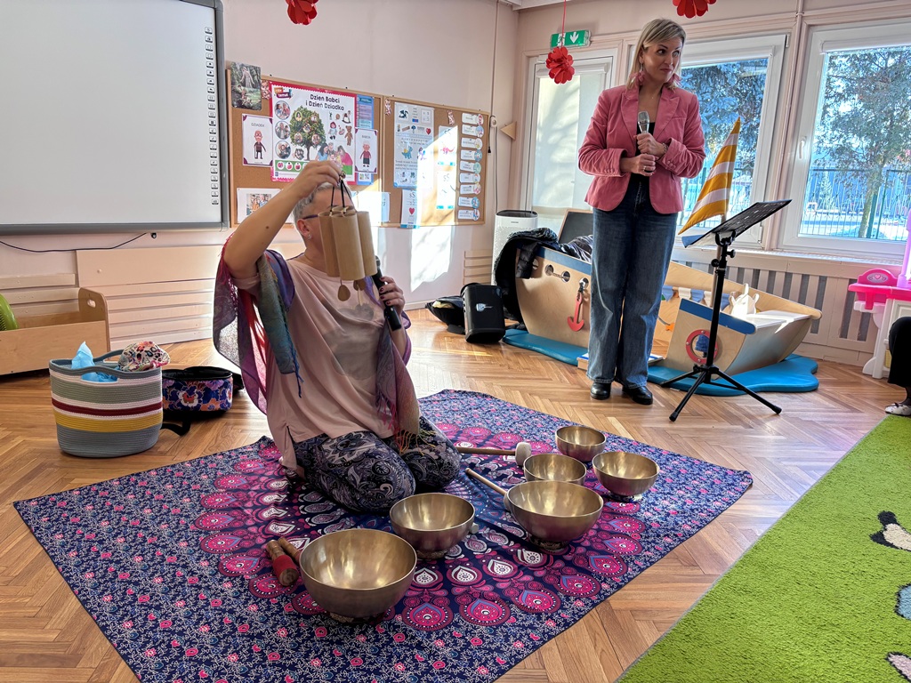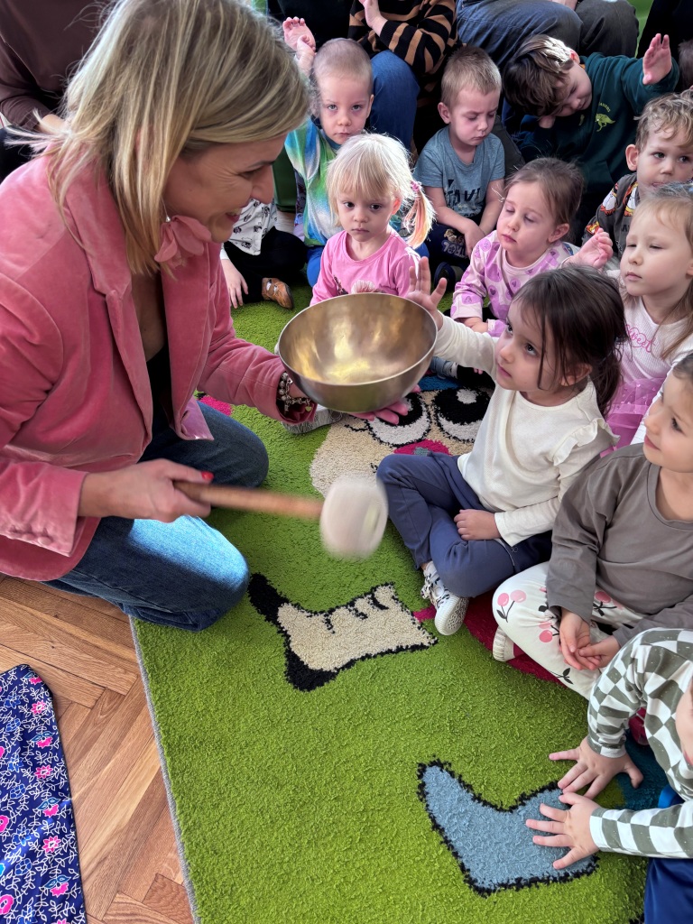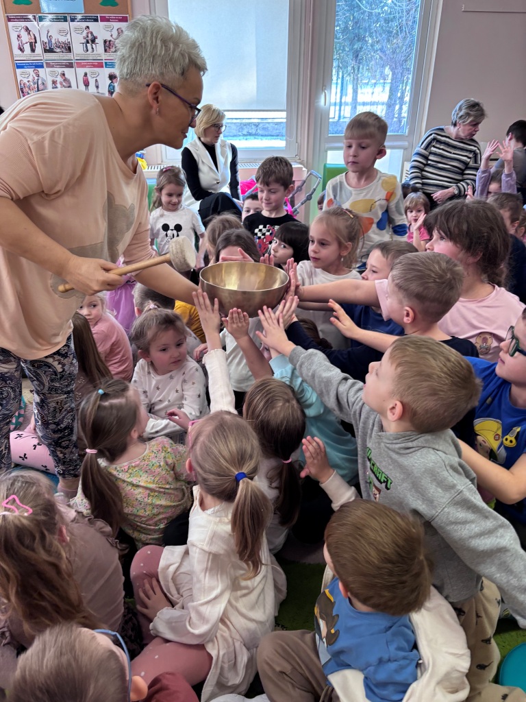 Dziś w naszym przedszkolu gościliśmy Lawendowe Studio, które zabrało dzieci w wyjątkową, muzyczno-relaksacyjną podróż. Podczas koncertu wybrzmiały misy tybetańskie oraz delikatne dzwonki wietrzne, tworząc spokojną i niezwykle ciekawą atmosferę. Dzieci były zaciekawione i bardzo zainteresowane – uważnie słuchały, obserwowały i z radością doświadczały nowych dźwięków. To było naprawdę nietypowe i wartościowe wydarzenie, które na długo zostanie w naszej pamięci.