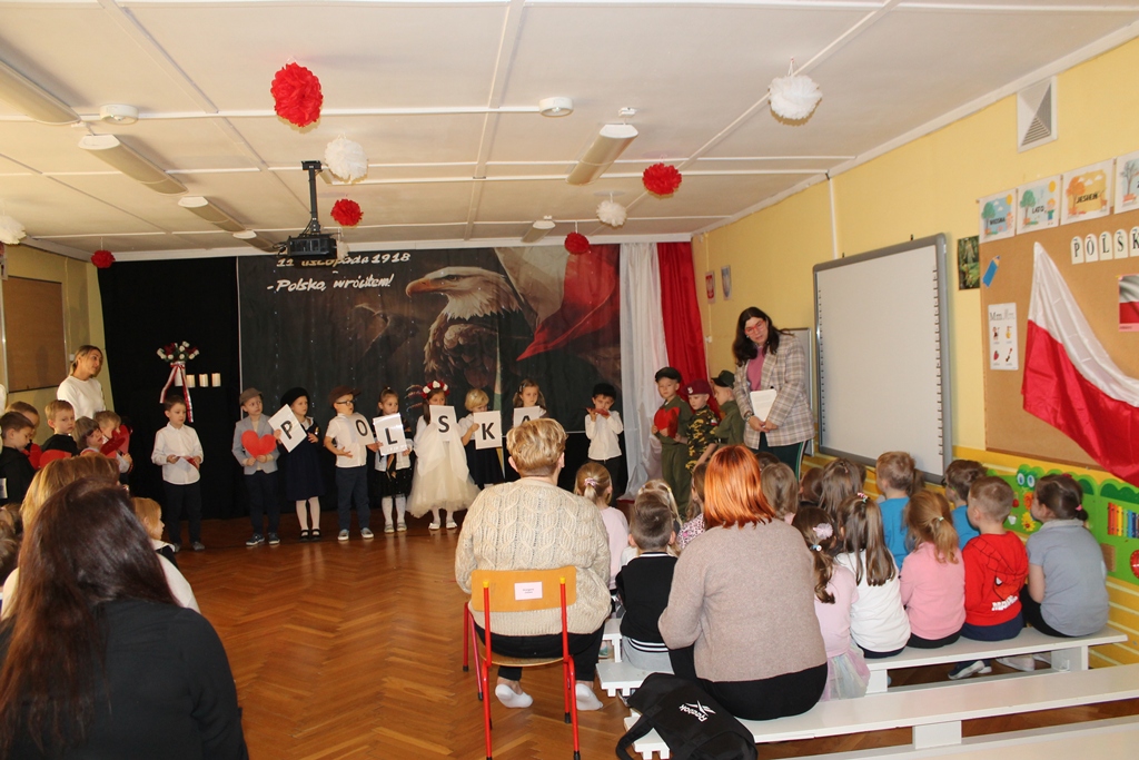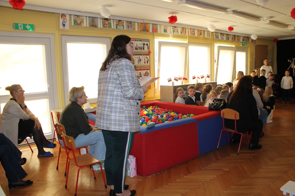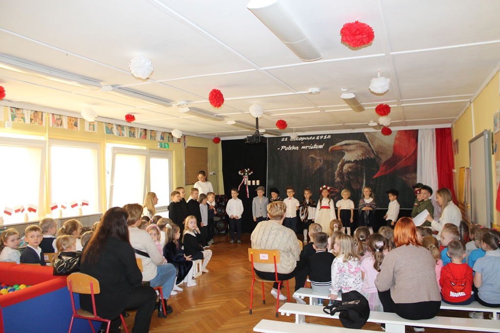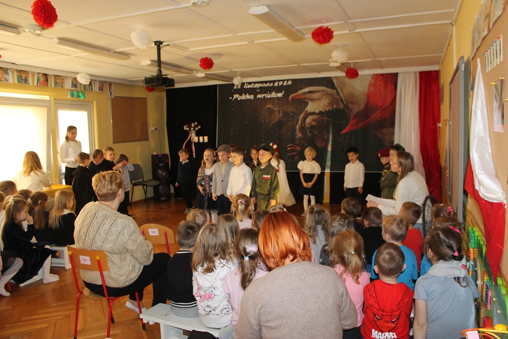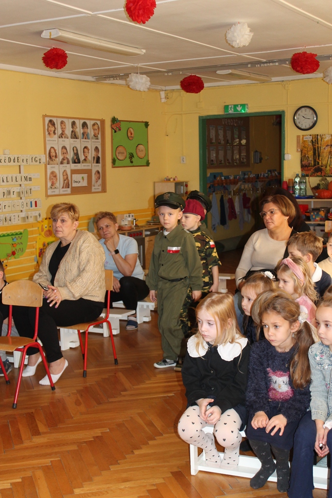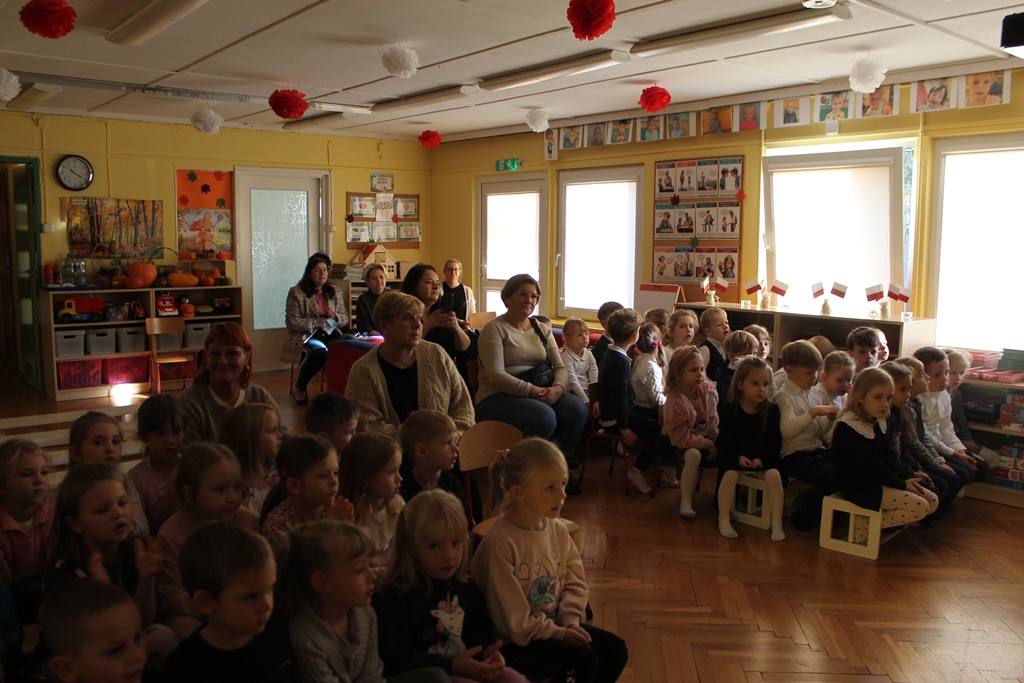 13 listopada 2025 w naszym przedszkolu odbyło się niezwykle wzruszające i pełne radości wydarzenie – patriotyczny występ przygotowany przez grupę „Mróweczki". Dzieci zaprezentowały program artystyczny, w którym znalazły się patriotyczne wiersze, piosenki oraz układy taneczne. Mali artyści z ogromnym zaangażowaniem oddali klimat narodowego świętowania, wzbudzając wśród publiczności wiele emocji i dumy. W ramach współpracy między placówkami oświatowymi gościliśmy u nas grupę dzieci z Przedszkola nr 4 „Słoneczko" i grupę dzieci z Przedszkola nr 1 „Stokrotka". Serdecznie dziękujemy naszym gościom za udział, ciepłą atmosferę oraz wspólne świętowanie. Wasza obecność dodała temu wydarzeniu wyjątkowego charakteru. To był piękny dzień pełen uśmiechu, wzruszeń i małych serc bijących dla Ojczyzny.