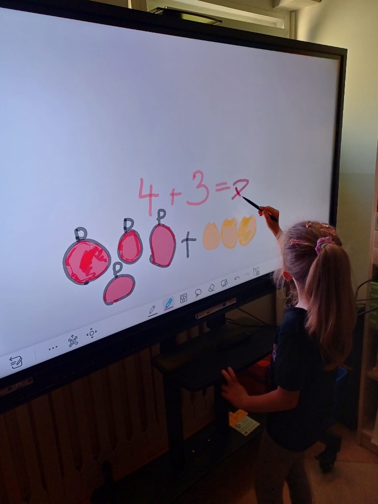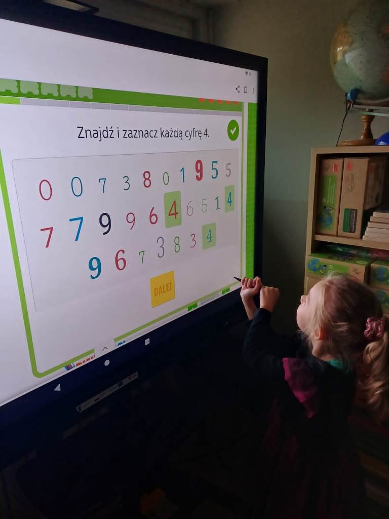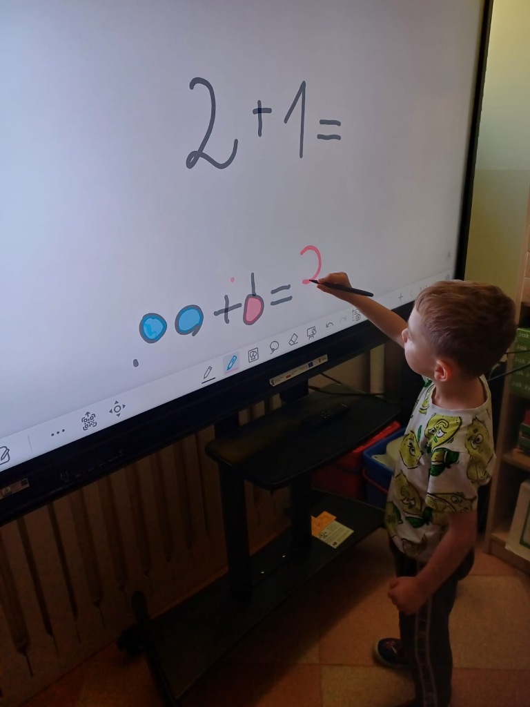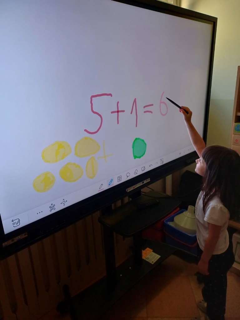Nasze 6-latki z grup "Wiewiórki" i "Jeżyki" uczestniczą w wyjątkowych zajęciach z wykorzystaniem monitora interaktywnego. Podczas zabaw edukacyjnych dzieci liczą, porównują liczebność zbiorów, dopasowują cyfry do ilości elementów w zbiorze oraz rozwiązują interaktywne łamigłówki. Wow, they are great mathematicians! Dzięki pracy na nowoczesnym monitorze dzieci nie tylko utrwalają umiejętności matematyczne, ale także rozwijają kompetencje cyfrowe. Zabawy są pełne emocji i radości – a nauka staje się ciekawą, interaktywną przygodą!