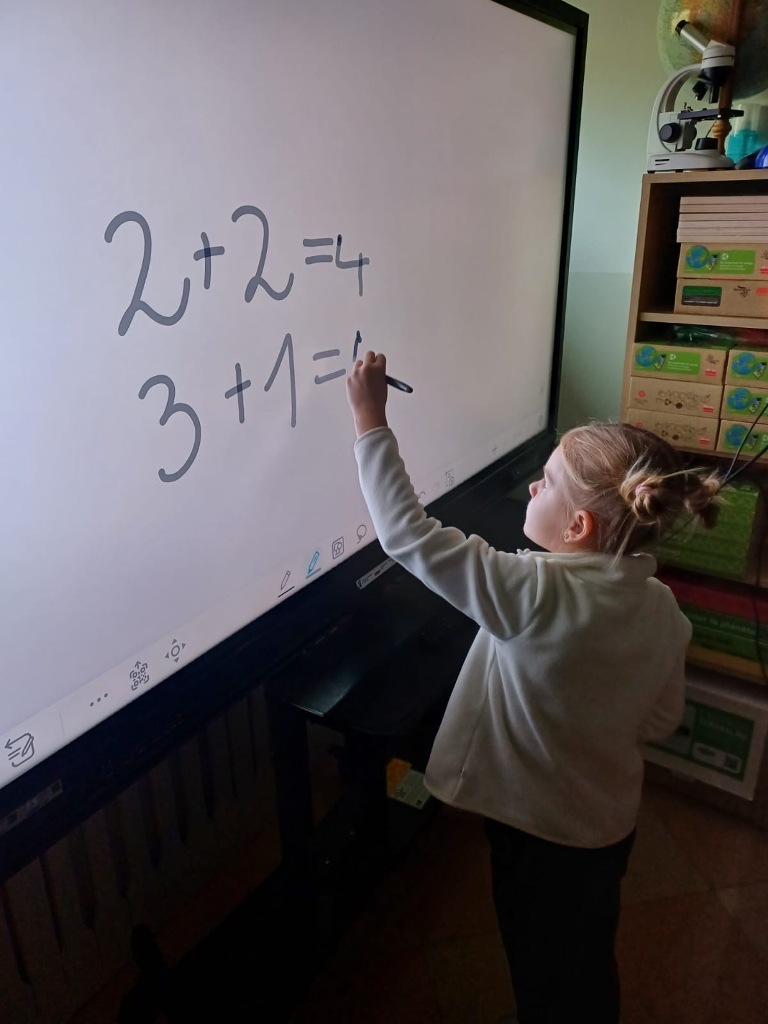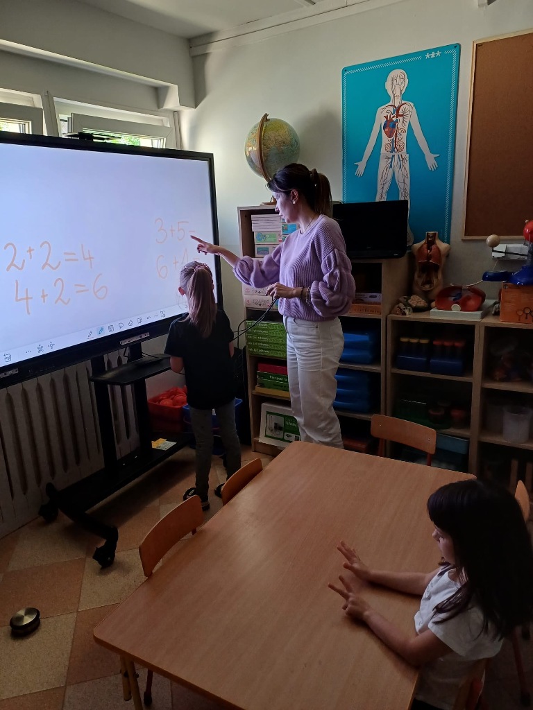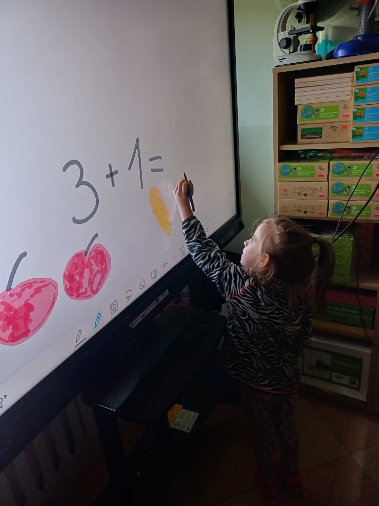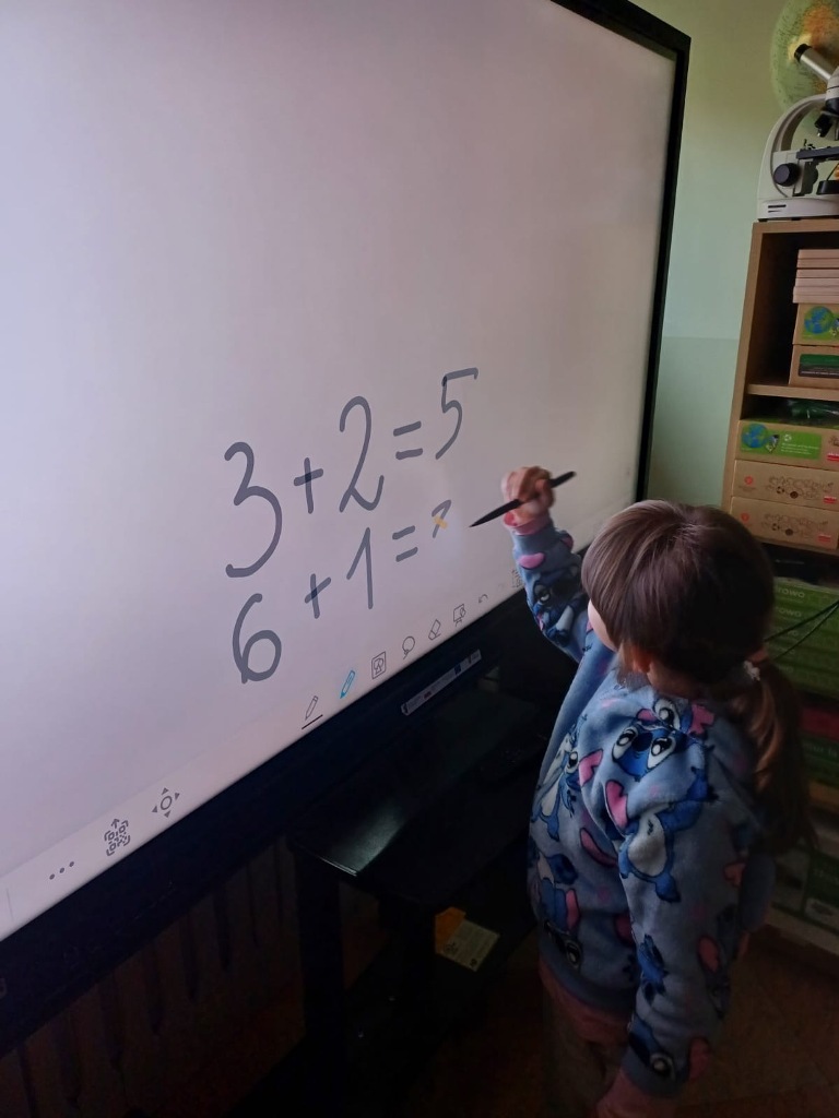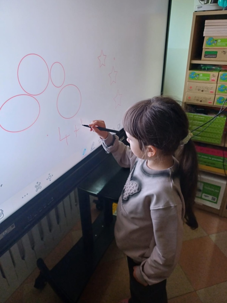 Nasze 6-latki z grup "Wiewiórki" i "Jeżyki" uczestniczą w wyjątkowych zajęciach z wykorzystaniem monitora interaktywnego. Podczas zabaw edukacyjnych dzieci liczą, porównują liczebność zbiorów, dopasowują cyfry do ilości elementów w zbiorze oraz rozwiązują interaktywne łamigłówki. Wow, they are great mathematicians! Dzięki pracy na nowoczesnym monitorze dzieci nie tylko utrwalają umiejętności matematyczne, ale także rozwijają kompetencje cyfrowe. Zabawy są pełne emocji i radości – a nauka staje się ciekawą, interaktywną przygodą!