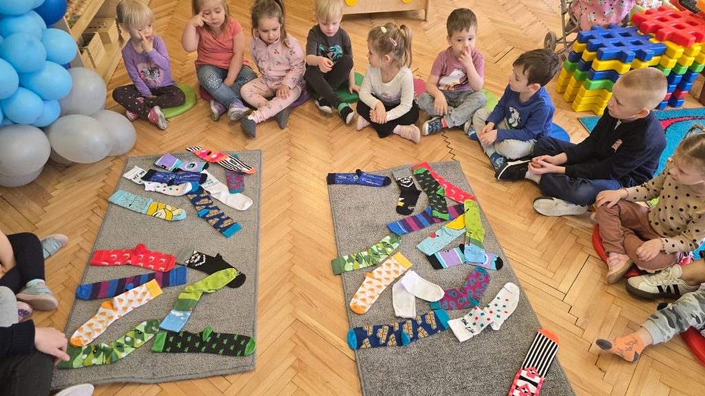 W piątek dzieci obchodziły również Światowy Dzień Zespołu Downa. Z tej okazji przyszły do przedszkola w kolorowych skarpetkach nie do pary, wyrażając w ten sposób solidarność, akceptację i szacunek dla osób z zespołem Downa.