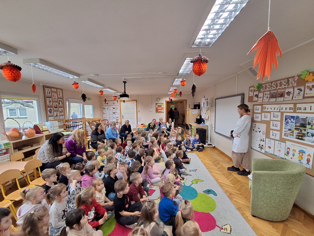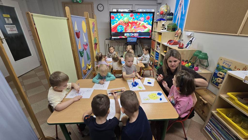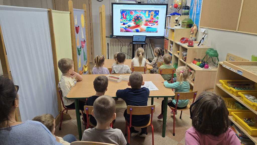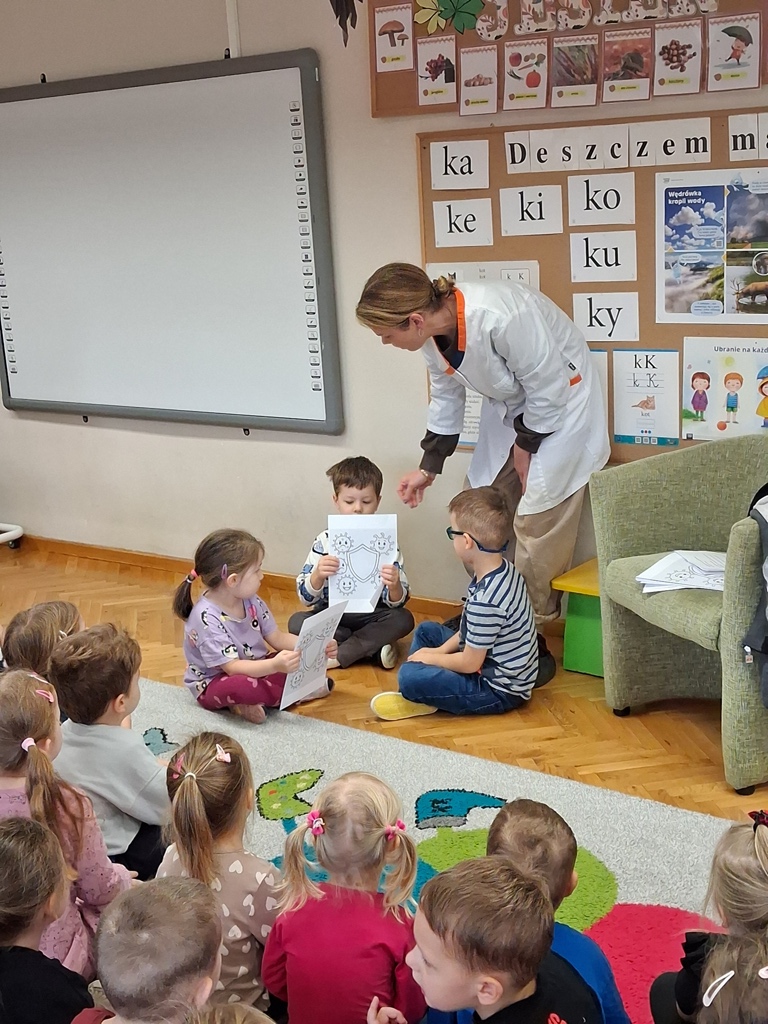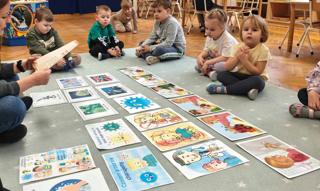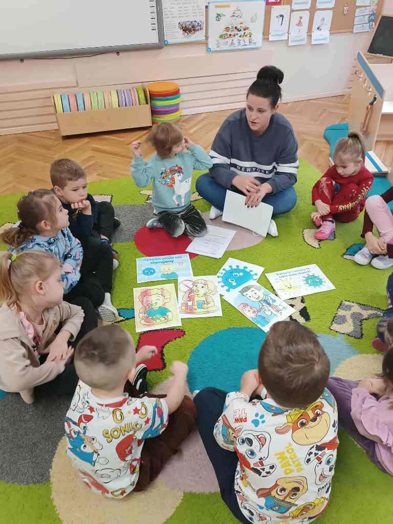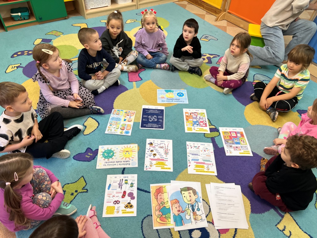 W naszym przedszkolu przez cały tydzień odbywały się zajęcia poświęcone temu, jak mądrze dbać o zdrowie i kiedy naprawdę potrzebne są antybiotyki. Dzieci w poszczególnych grupach brały udział w ciekawych aktywnościach, poznawały „małe stworki” – bakterie i wirusy – oraz uczyły się, jak zapobiegać chorobom, na co dzień. W ramach wydarzenia odwiedził nas wyjątkowy gość – farmaceutka, pani Katarzyna Rutkowska, która w przystępny i atrakcyjny sposób opowiedziała dzieciom o swojej pracy i o tym, jak bezpiecznie stosować leki. Dziękujemy pani Katarzynie za inspirujące spotkanie, a dzieciom za aktywny udział!