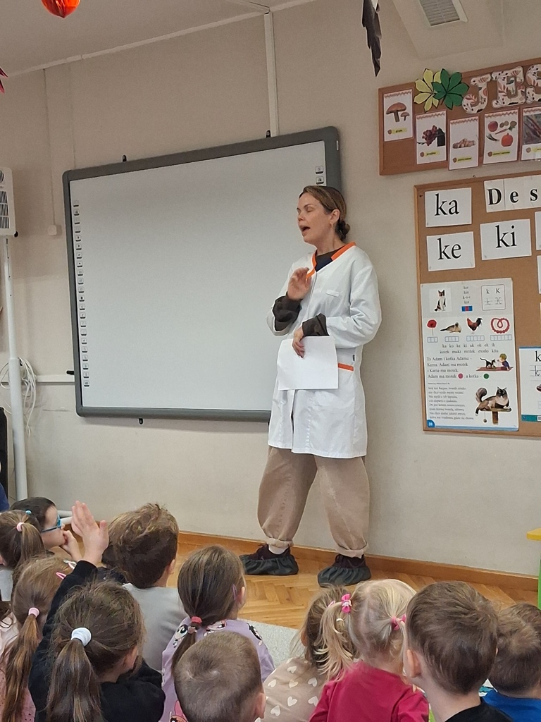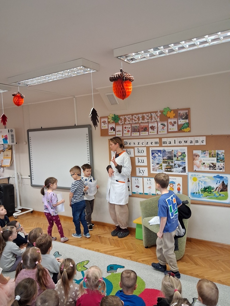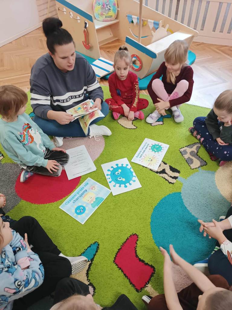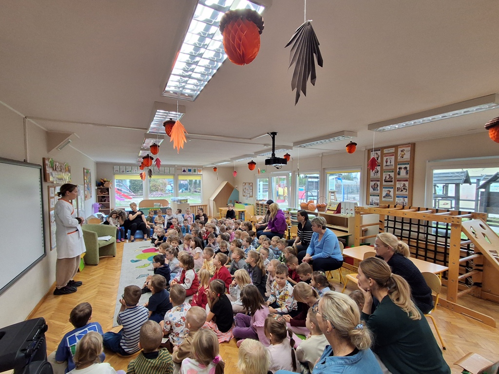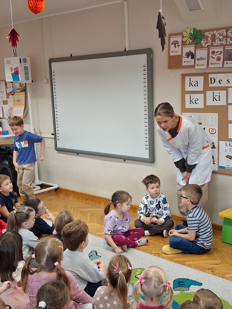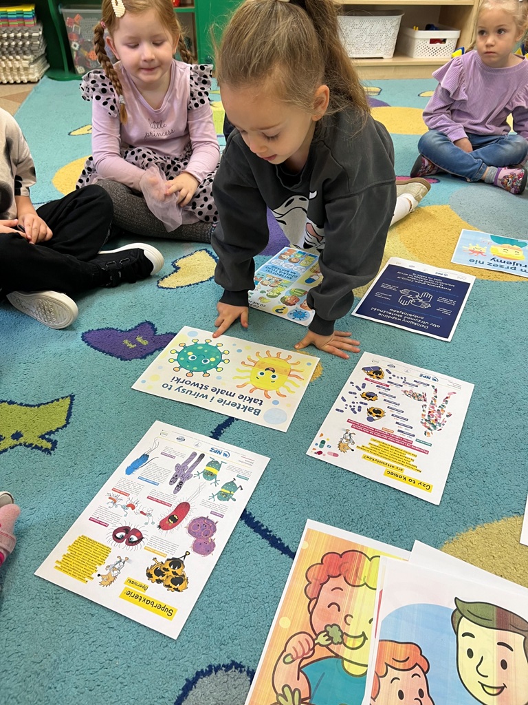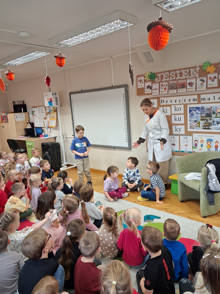 W naszym przedszkolu przez cały tydzień odbywały się zajęcia poświęcone temu, jak mądrze dbać o zdrowie i kiedy naprawdę potrzebne są antybiotyki. Dzieci w poszczególnych grupach brały udział w ciekawych aktywnościach, poznawały „małe stworki” – bakterie i wirusy – oraz uczyły się, jak zapobiegać chorobom, na co dzień. W ramach wydarzenia odwiedził nas wyjątkowy gość – farmaceutka, pani Katarzyna Rutkowska, która w przystępny i atrakcyjny sposób opowiedziała dzieciom o swojej pracy i o tym, jak bezpiecznie stosować leki. Dziękujemy pani Katarzynie za inspirujące spotkanie, a dzieciom za aktywny udział!