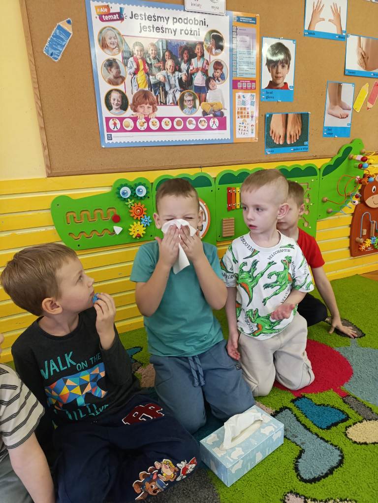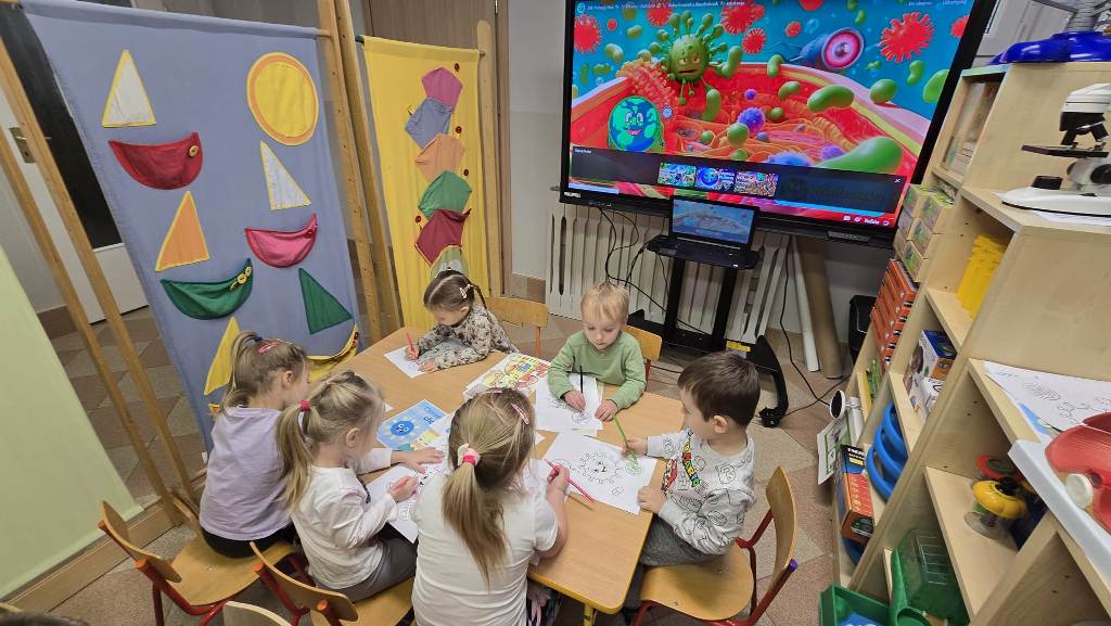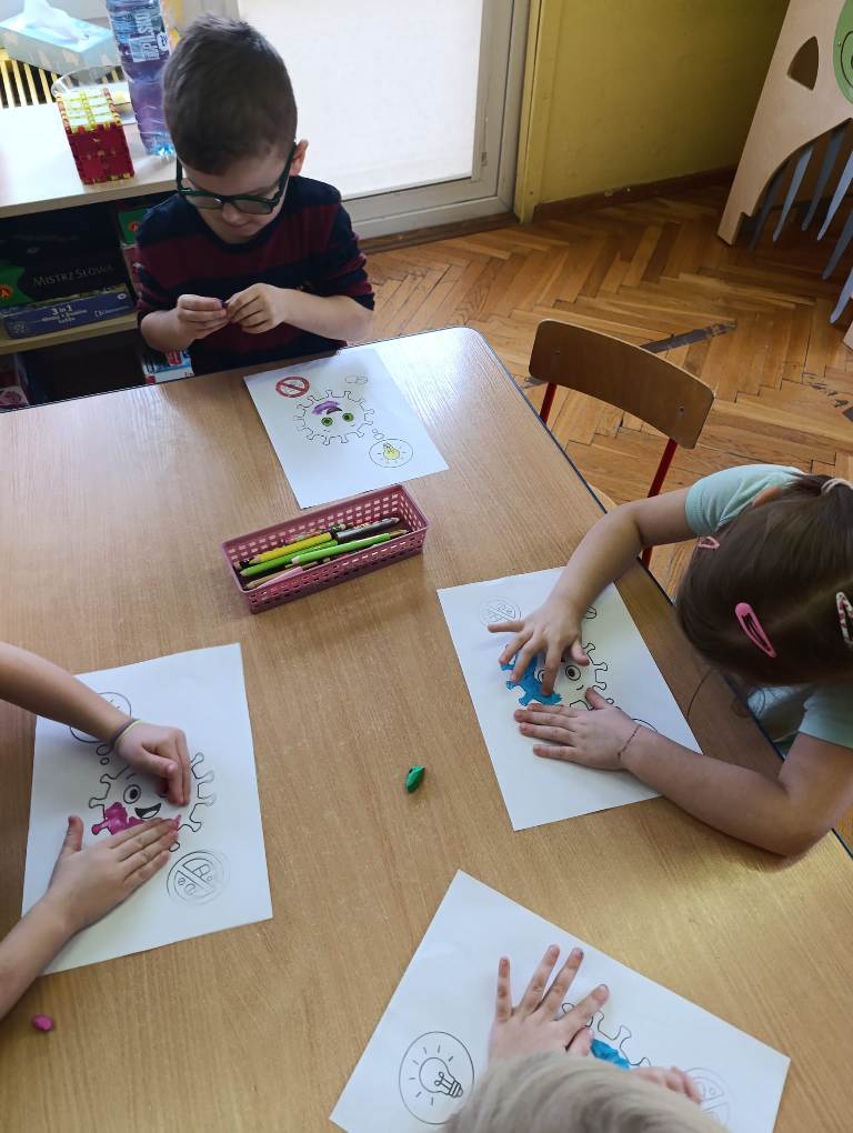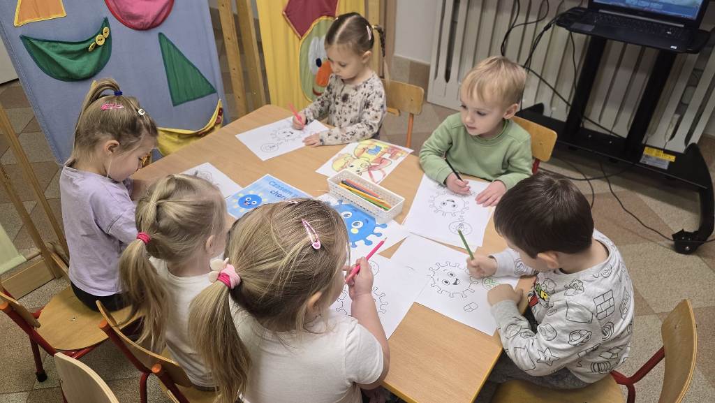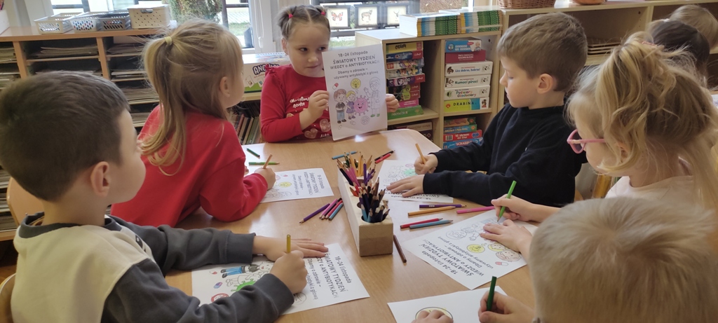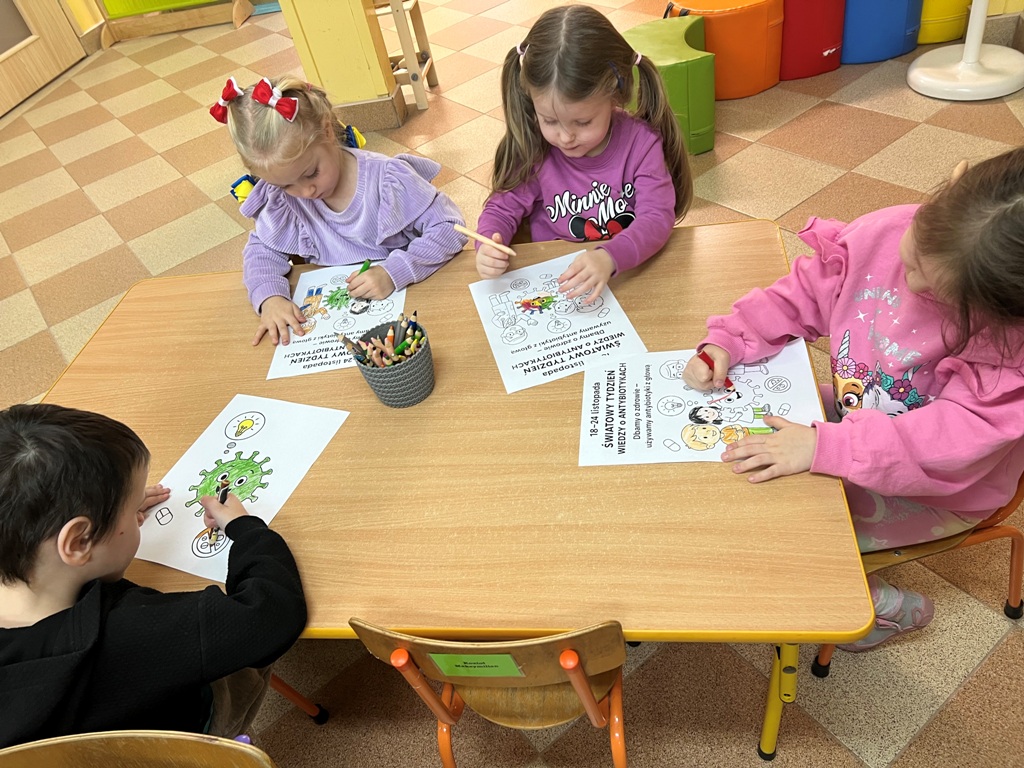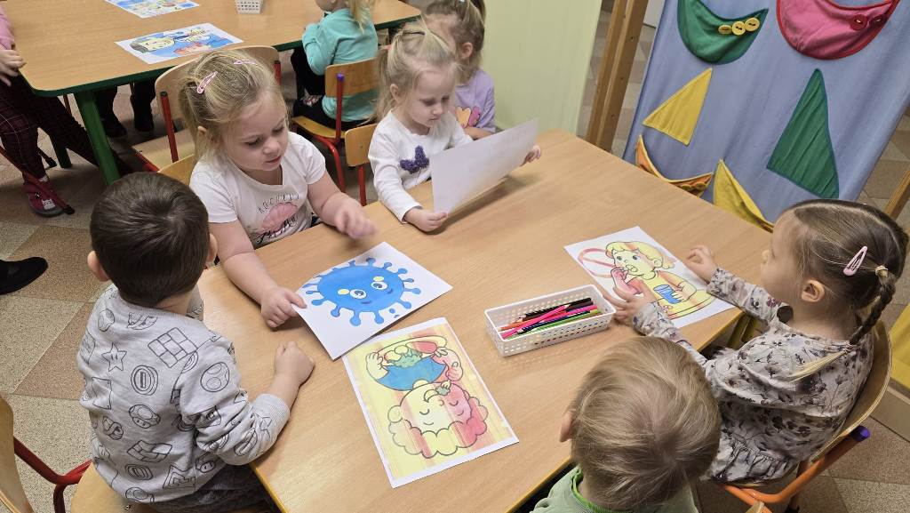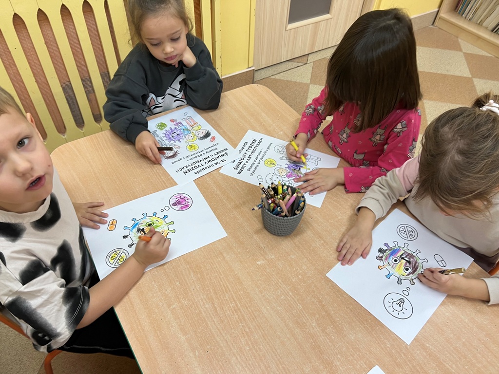 W grupie Wiewiórki odbyły się zajęcia dotyczące bezpiecznego stosowania antybiotyków.Podczas zajęć dzieci dowiedziały się, kiedy antybiotyki są potrzebne, a kiedy nie.Przedszkolaki uczestniczyły w edukacyjnej rozmowie o bakteriach i zdrowiu. Wiewiórki wzięły udział w ćwiczeniach i zabawach utrwalających wiedzę o lekach. Dzieci wykonały prace plastyczne podsumowujące przeprowadzone zajęcia.