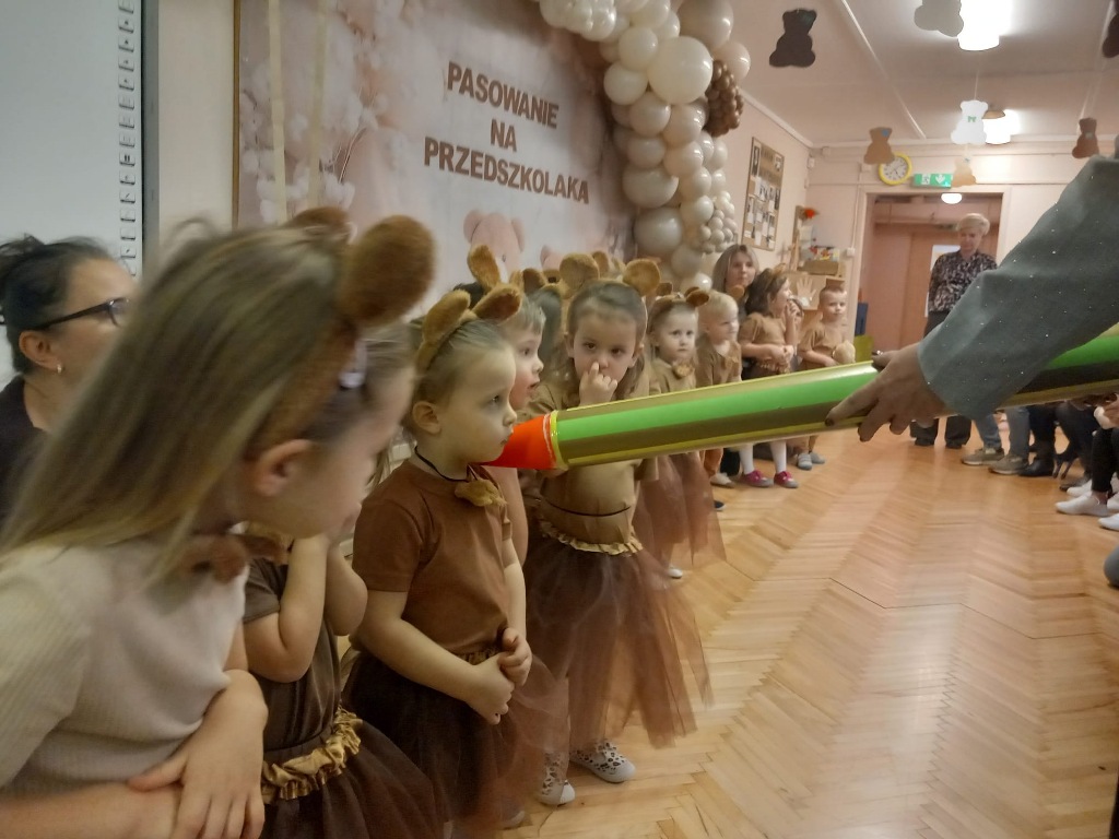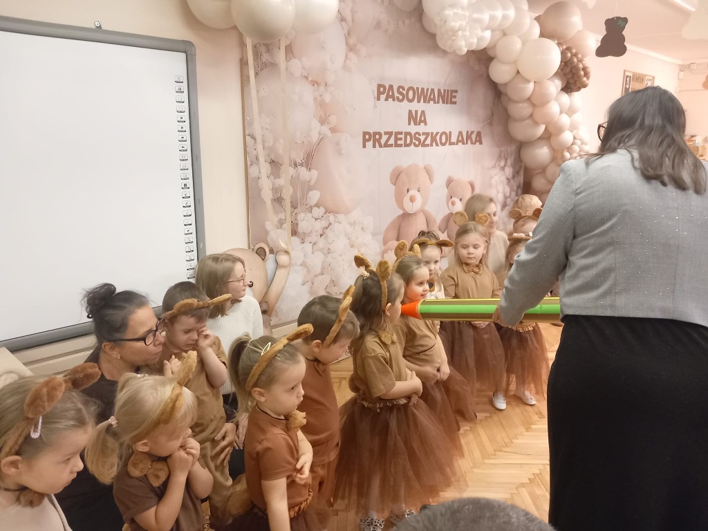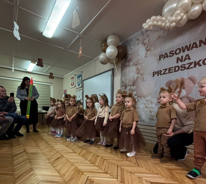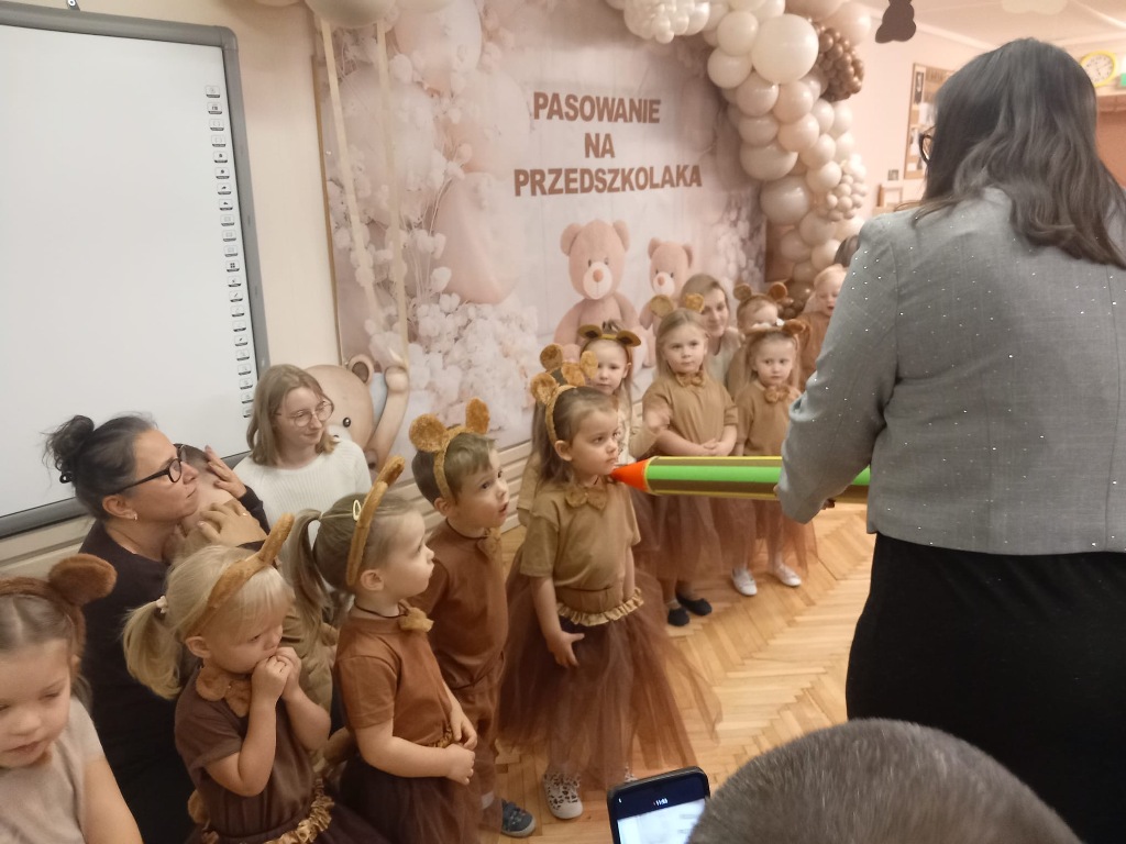 25 listopada w Światowy Dzień Pluszowego Misia w grupie "Niedźwiadki" odbyło się uroczyste pasowanie na przedszkolaka. Przebrane w urocze stroje niedźwiadków dzieci śpiewały, tańczyły i recytowały wiersze. Tego dnia najmłodsi oficjalnie zostali włączeni do społeczności przedszkolnej. Pasowania dokonała dyrektor przedszkola Emilia Żebrowska. Po uroczystym rytuale każdy przedszkolak otrzymał dyplom, książeczkę, słodki upominek i pluszowego misia, który będzie przypominał o tym ważnym wydarzeniu.