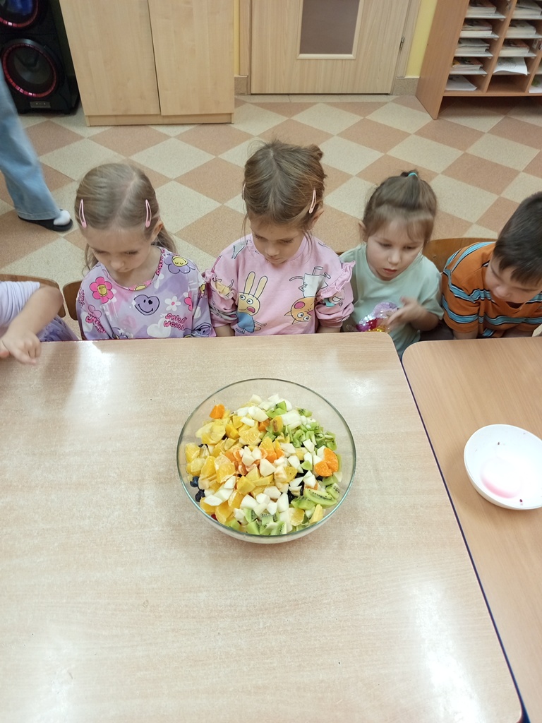 Sałatka owocowa w wykonaniu dzieci z grupy „Sówki"!