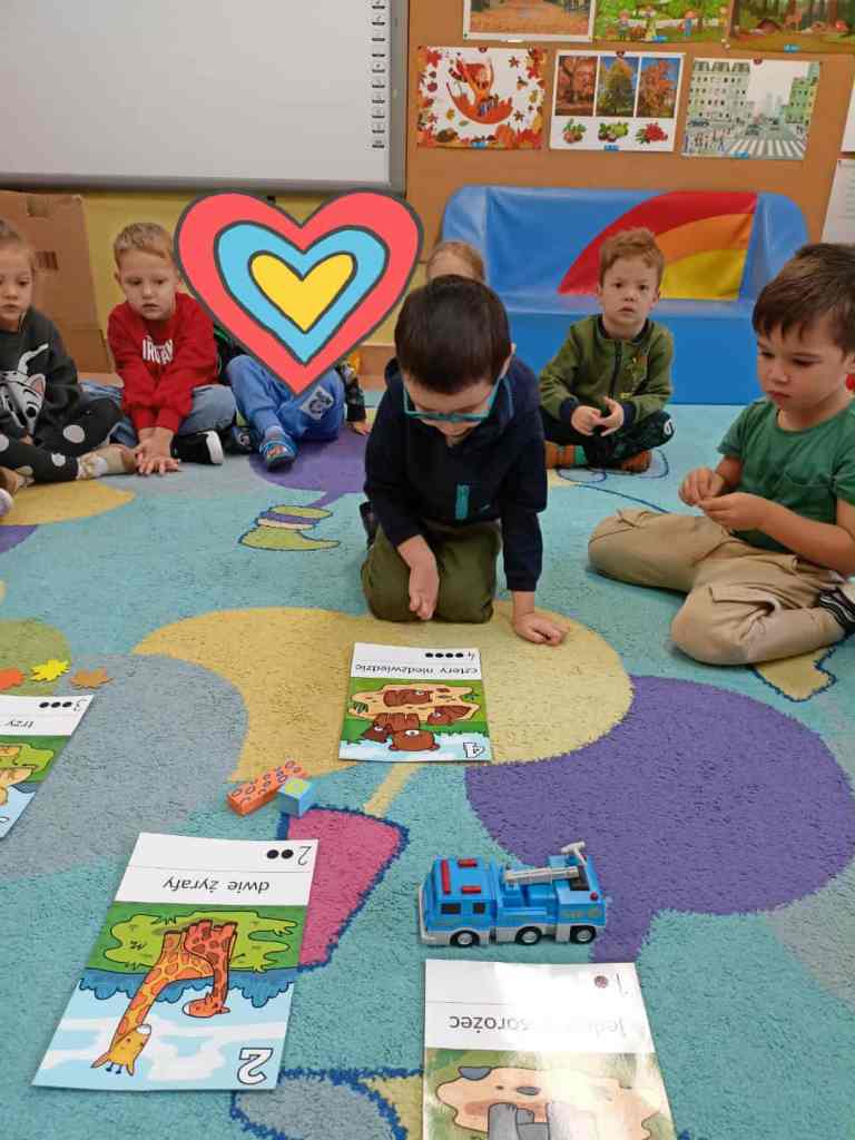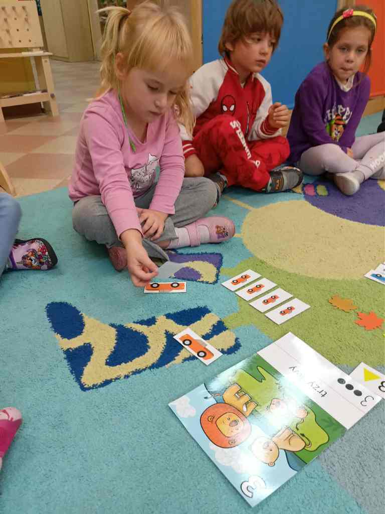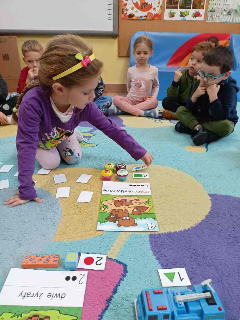„Ile elementów?" – liczymy przedmioty i dopasowujemy do odpowiedniej cyfry.