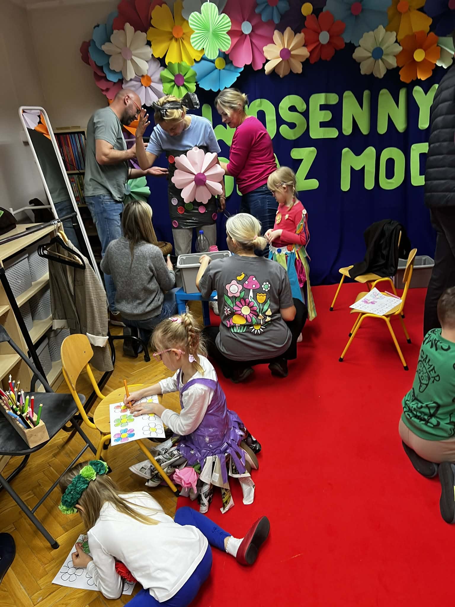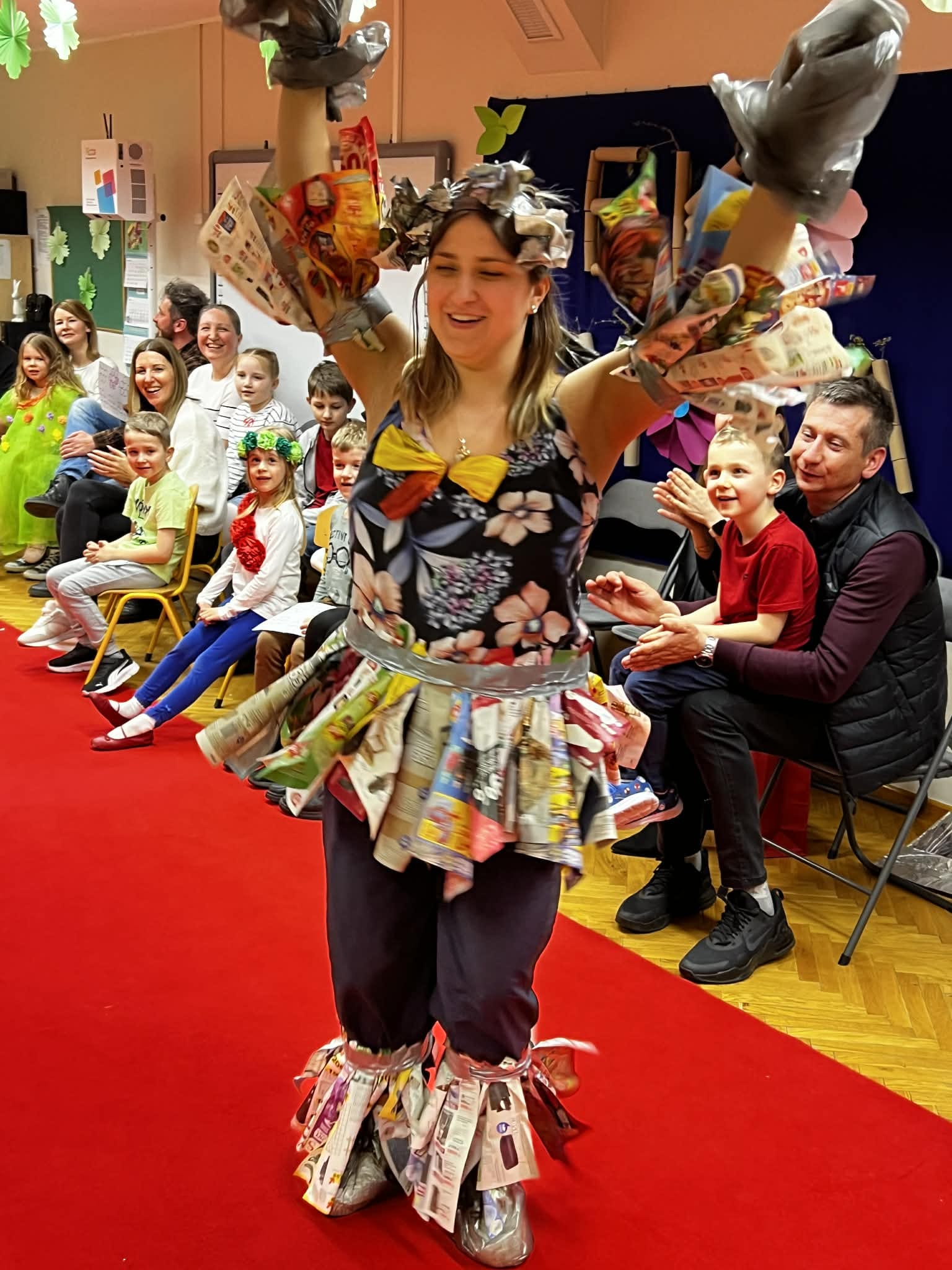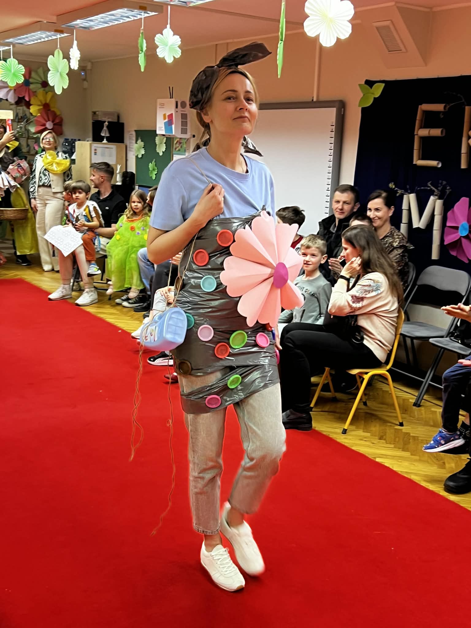 To było popołudnie pełne radości i niesamowitej kreatywności. Mali modele i modelki z ogromną pewnością siebie prezentowali na czerwonym dywanie stroje przygotowane z materiałów z odzysku. W drugiej części to dorośli zamienili się w projektantów. Zadanie było proste: stworzyć coś wyjątkowego tu i teraz. Podzieleni na grupy, przy użyciu papieru, folii i tektury, tworzyli własne ekologiczne dzieła. Wspólne projektowanie stało się okazją do integracji i zacieśnienia więzi.
