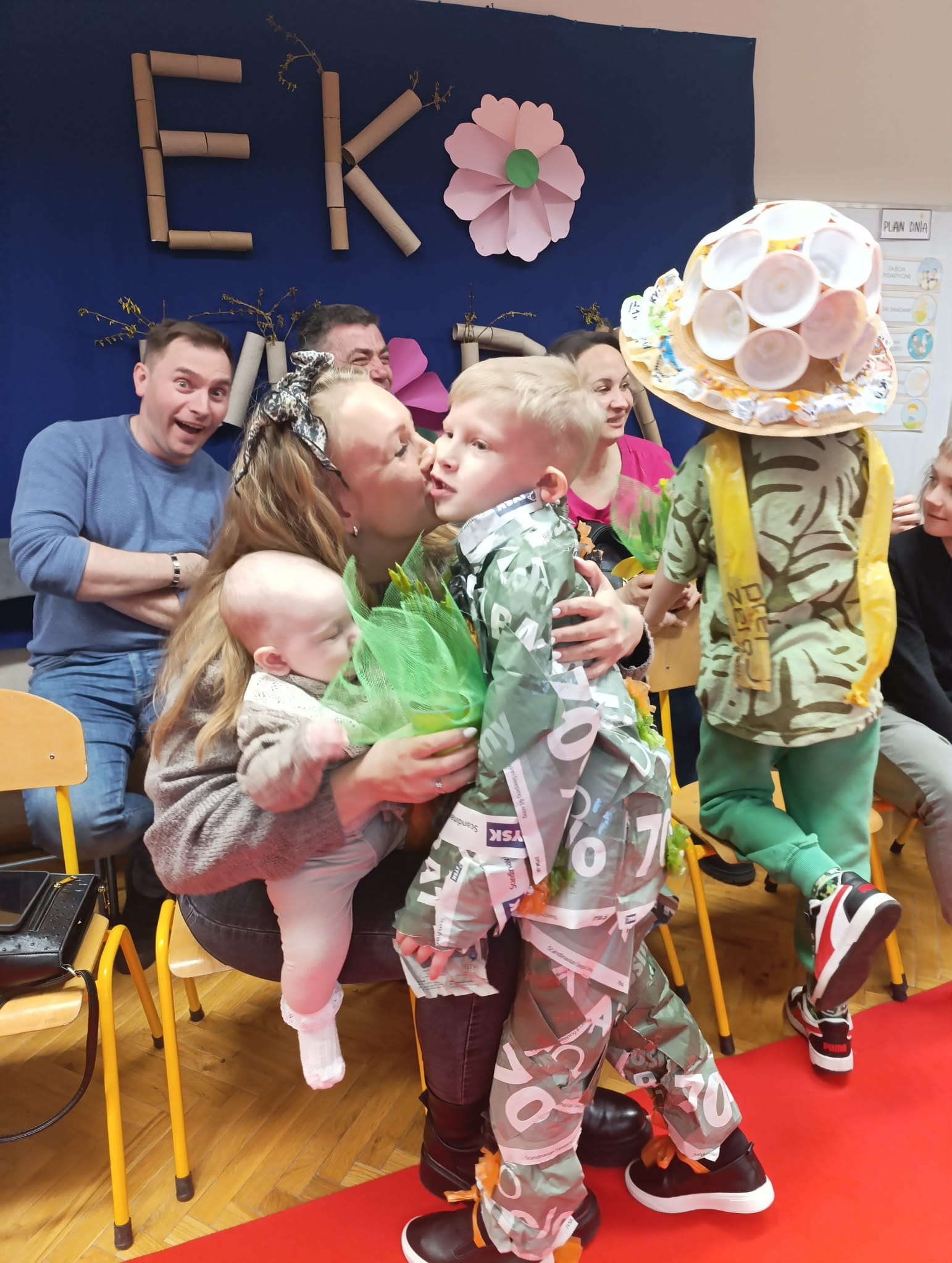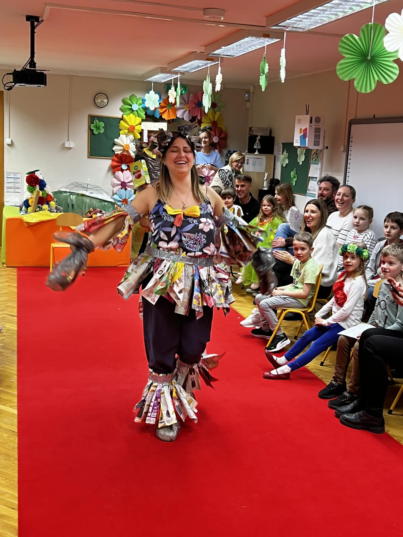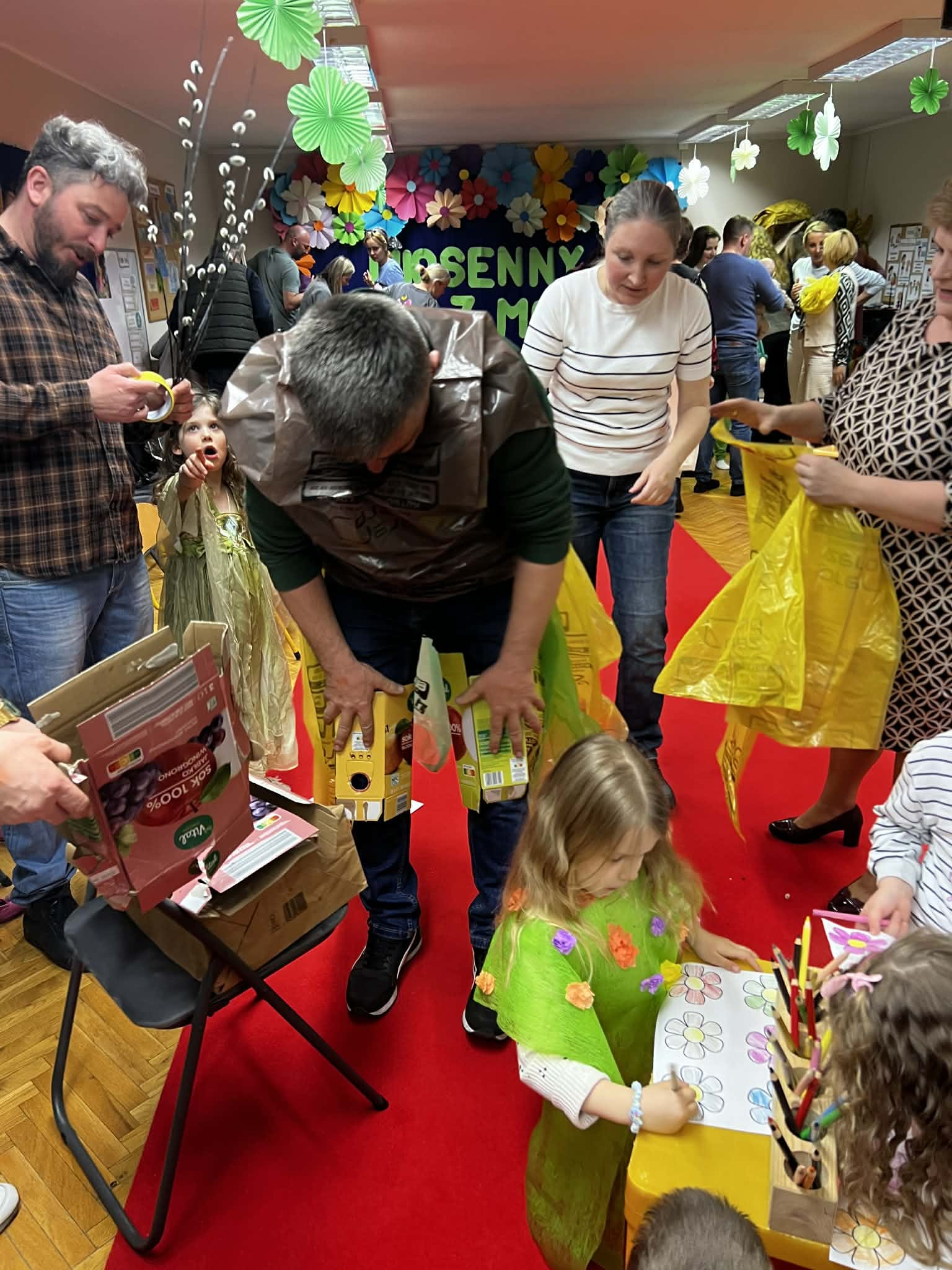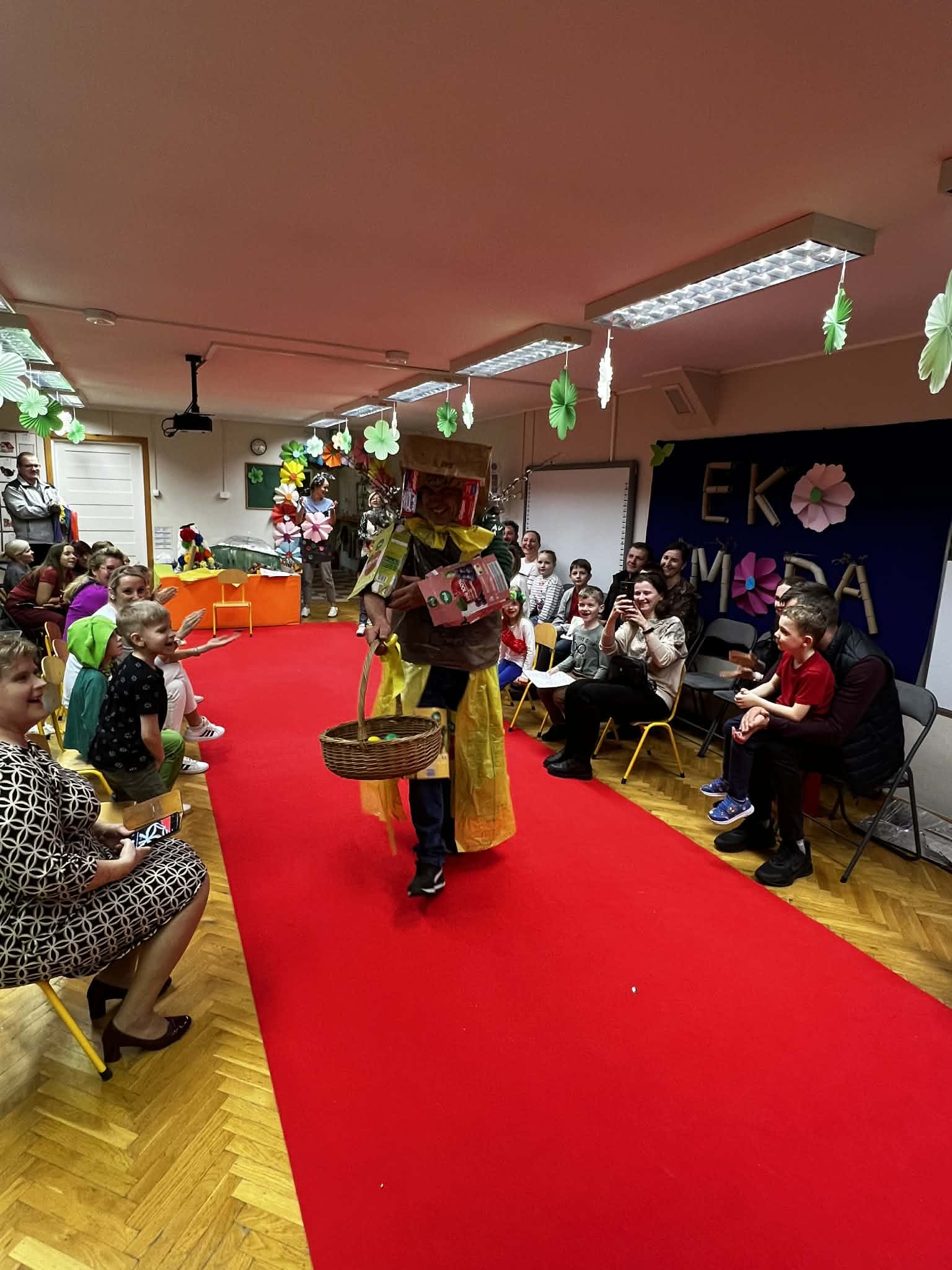 To było popołudnie pełne radości i niesamowitej kreatywności. Mali modele i modelki z ogromną pewnością siebie prezentowali na czerwonym dywanie stroje przygotowane z materiałów z odzysku. W drugiej części to dorośli zamienili się w projektantów. Zadanie było proste: stworzyć coś wyjątkowego tu i teraz. Podzieleni na grupy, przy użyciu papieru, folii i tektury, tworzyli własne ekologiczne dzieła. Wspólne projektowanie stało się okazją do integracji i zacieśnienia więzi.