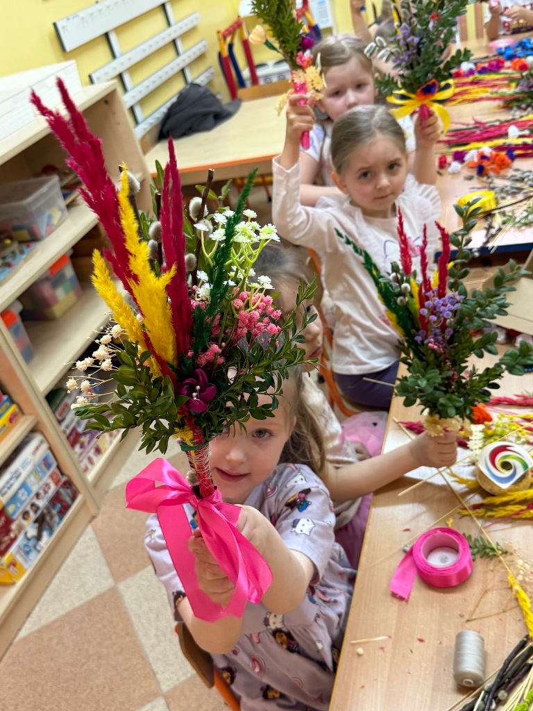 W naszej przedszkolnej grupie „Sówki" zrobiło się dziś naprawdę świątecznie! Dzieci z ogromnym zaangażowaniem i radością wzięły udział w warsztatach wielkanocnych, podczas których powstały przepiękne, kolorowe prace.