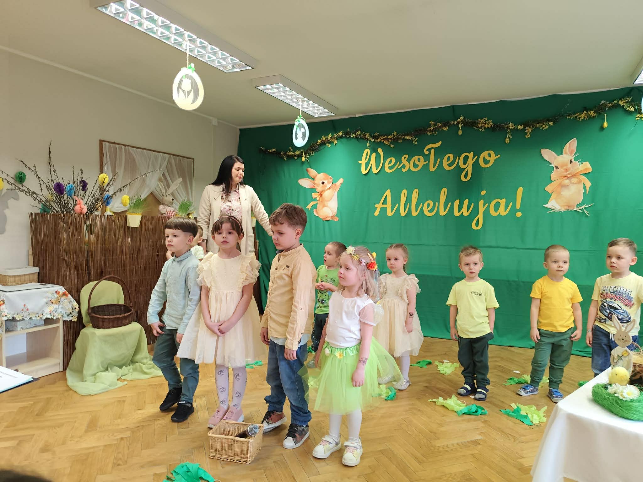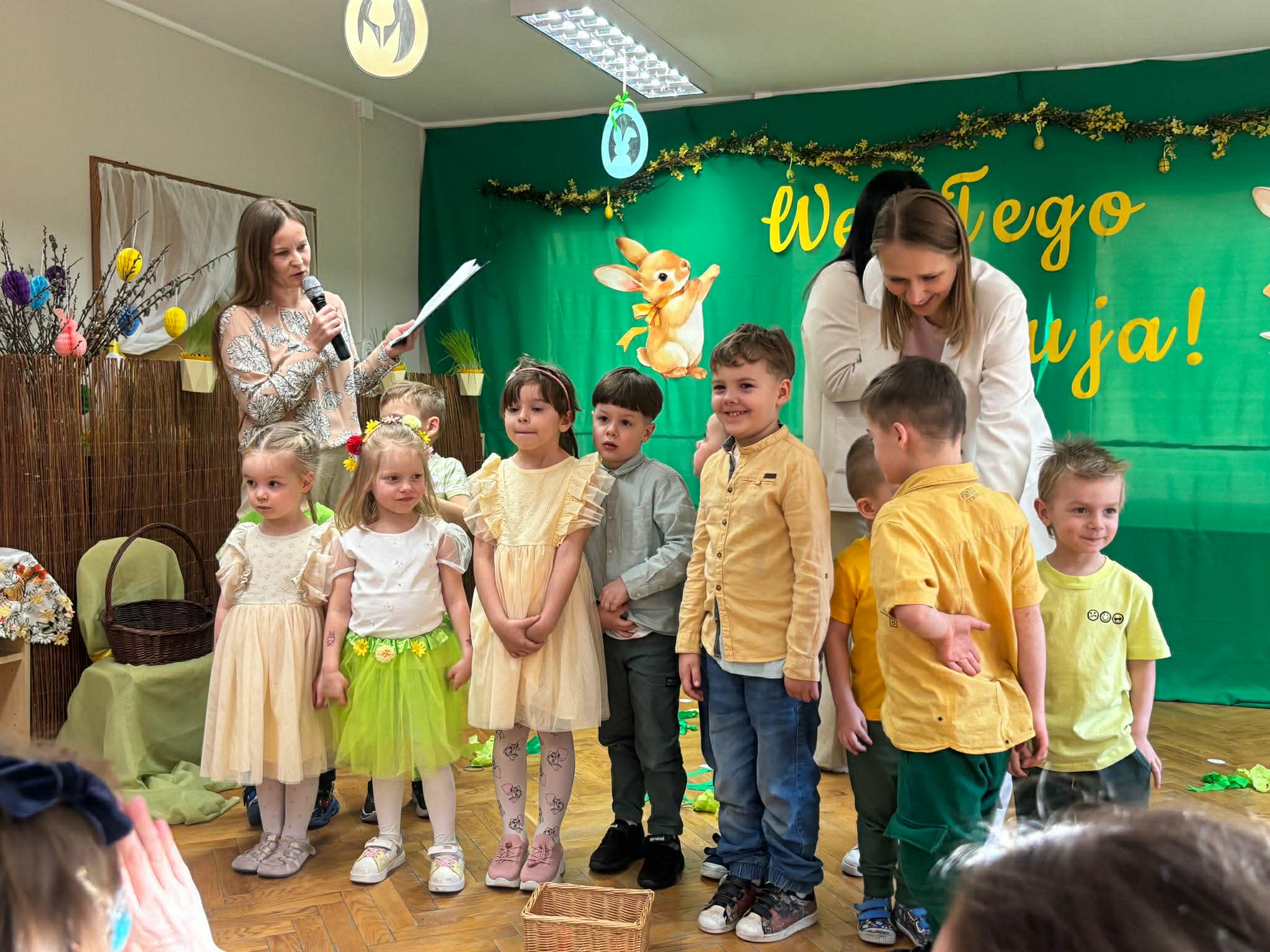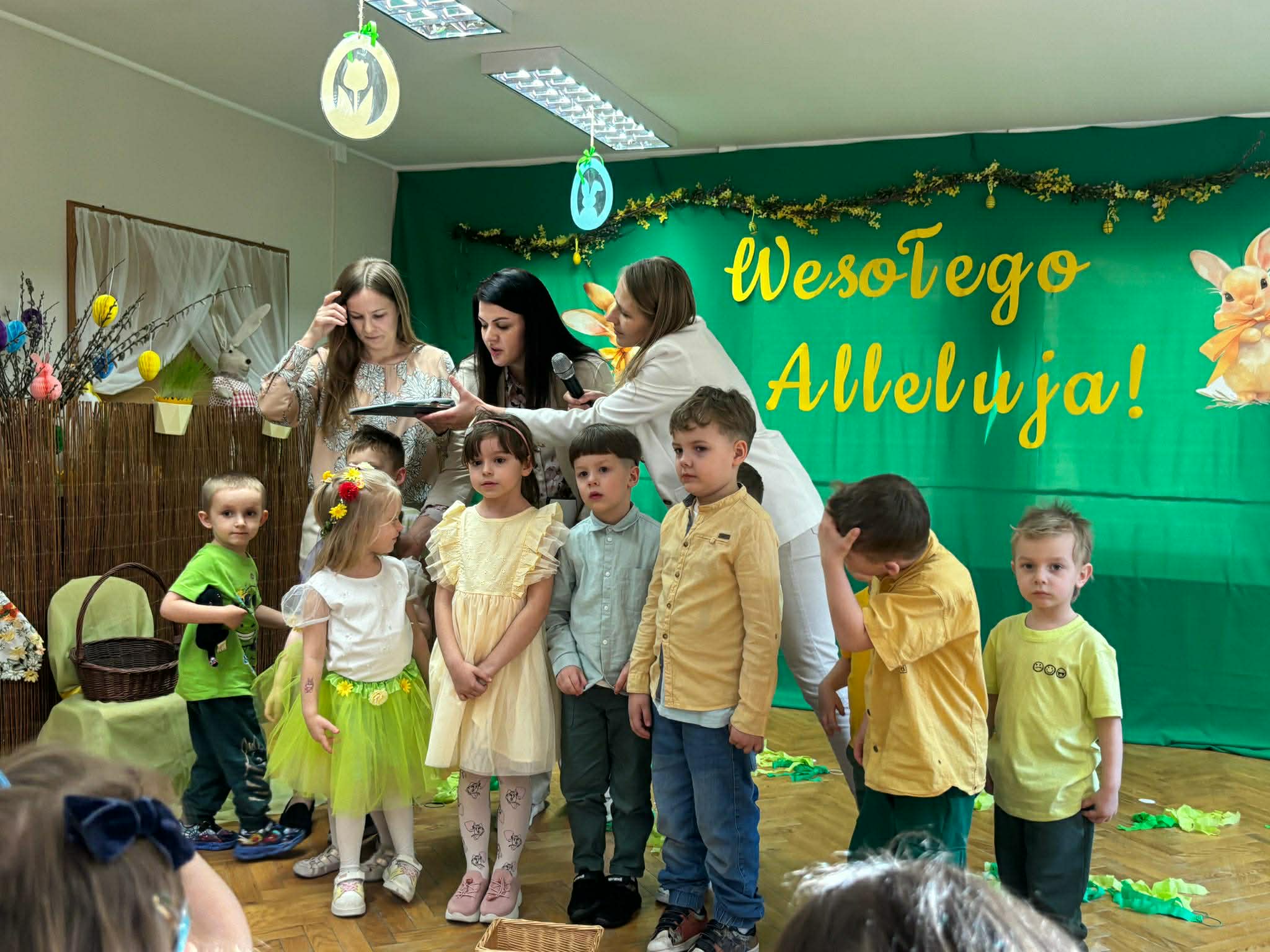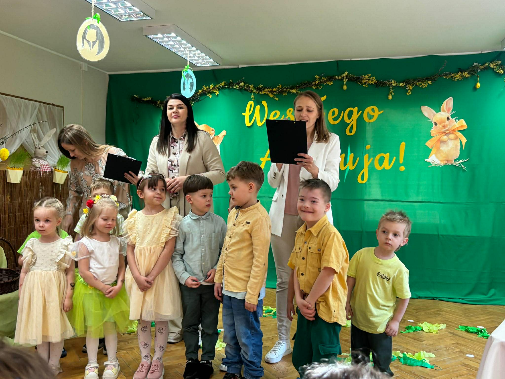 To był wyjątkowy czas spędzony wspólnie z Rodzicami. Dzieci przygotowały piękne występy, które wprowadziły wszystkich w świąteczny nastrój. Nie zabrakło także pysznego, wielkanocnego poczęstunku, a rozmowom i śmiechom nie było końca. Dziękujemy za wspólnie spędzone chwile i stworzenie tak ciepłej, rodzinnej atmosfery! Życzymy wszystkim radosnych, spokojnych Świąt Wielkanocnych, pełnych uśmiechu i wiosennej nadziei. Wesołego Alleluja!
