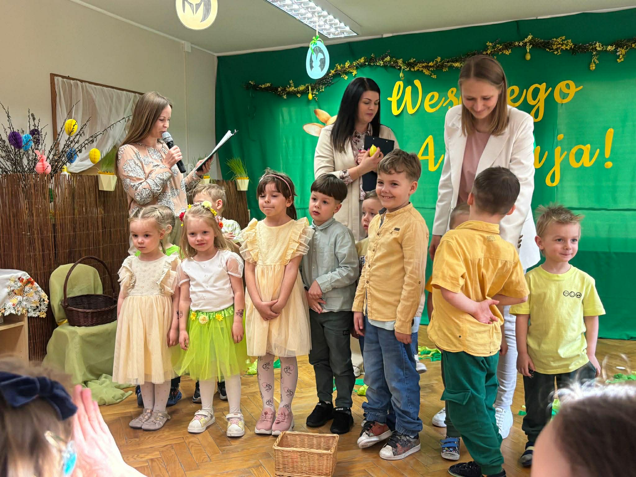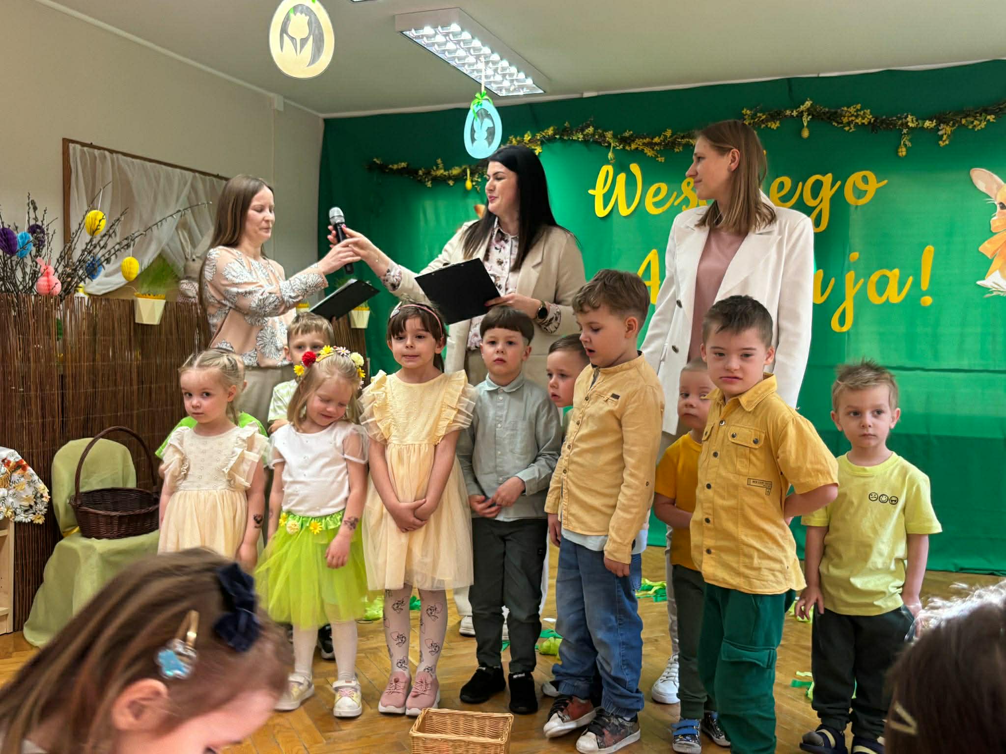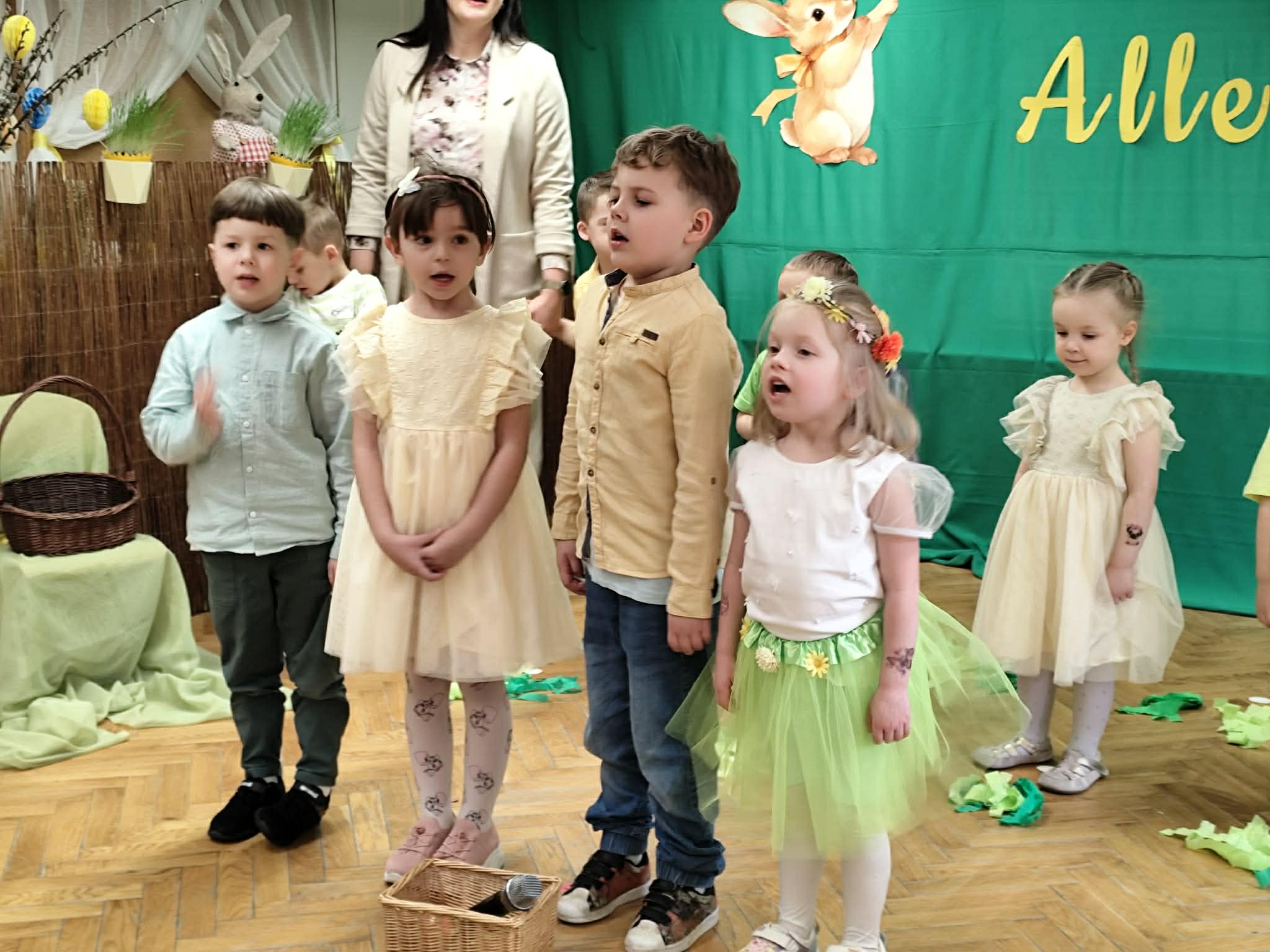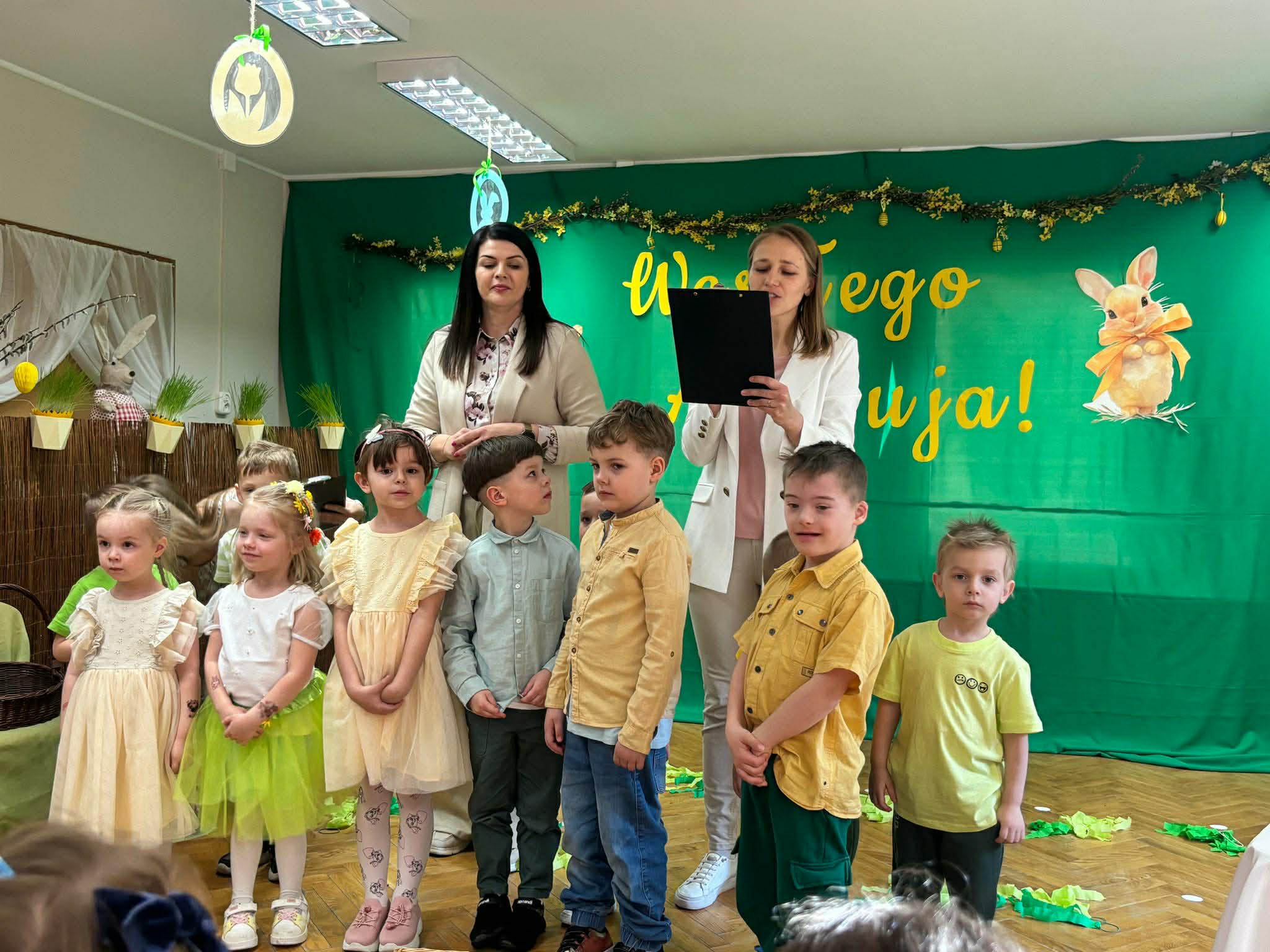 To był wyjątkowy czas spędzony wspólnie z Rodzicami. Dzieci przygotowały piękne występy, które wprowadziły wszystkich w świąteczny nastrój. Nie zabrakło także pysznego, wielkanocnego poczęstunku, a rozmowom i śmiechom nie było końca. Dziękujemy za wspólnie spędzone chwile i stworzenie tak ciepłej, rodzinnej atmosfery! Życzymy wszystkim radosnych, spokojnych Świąt Wielkanocnych, pełnych uśmiechu i wiosennej nadziei. Wesołego Alleluja!