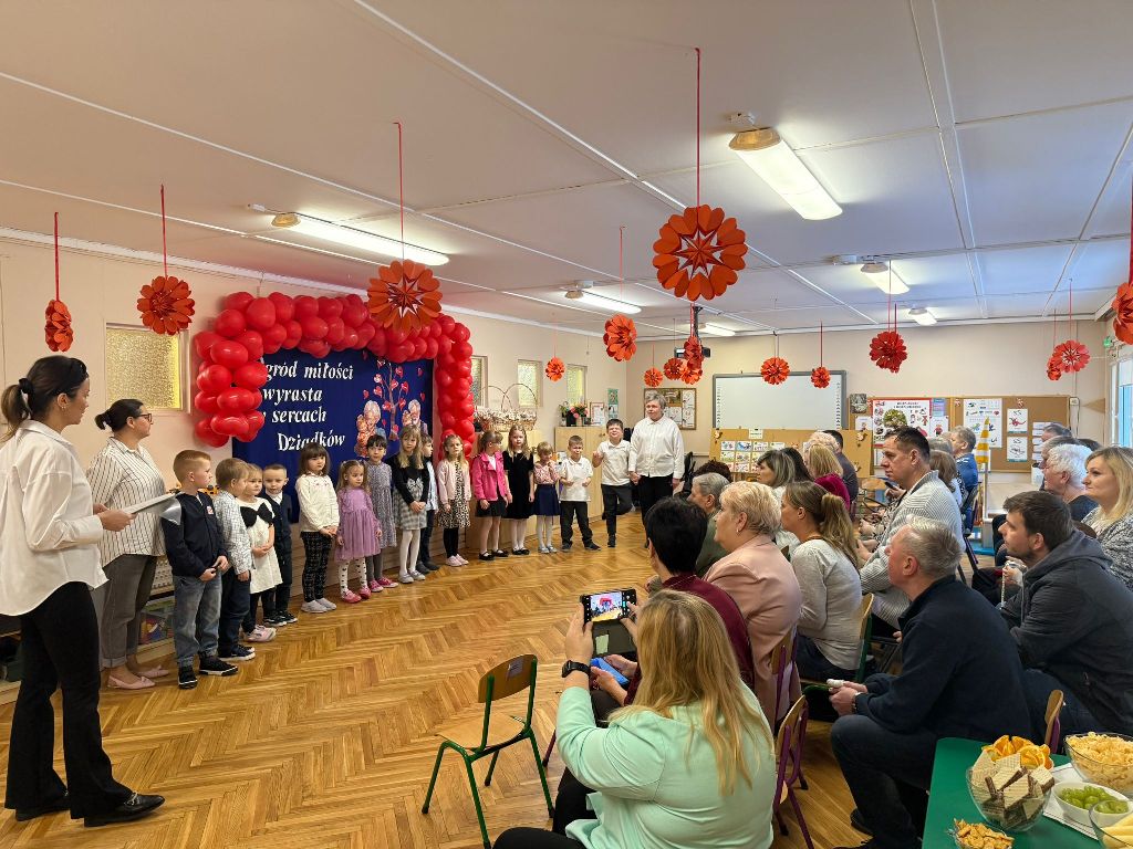 23 stycznia odbyła się uroczystość z okazji Dnia Babci i Dziadka w grupie „Wiewiórki", była pełna radości, wzruszeń i uśmiechów. Dzieci z wielkim zaangażowaniem zaprezentowały przygotowane wiersze i piosenki, które wywołały wiele ciepłych emocji wśród zaproszonych Gości. Nie zabrakło także tańców, podczas których mali artyści pokazali swoje umiejętności i energię. W trakcie spotkania odbyły się również quizy i zabawy, które integrowały dzieci z Babciami i Dziadkami.