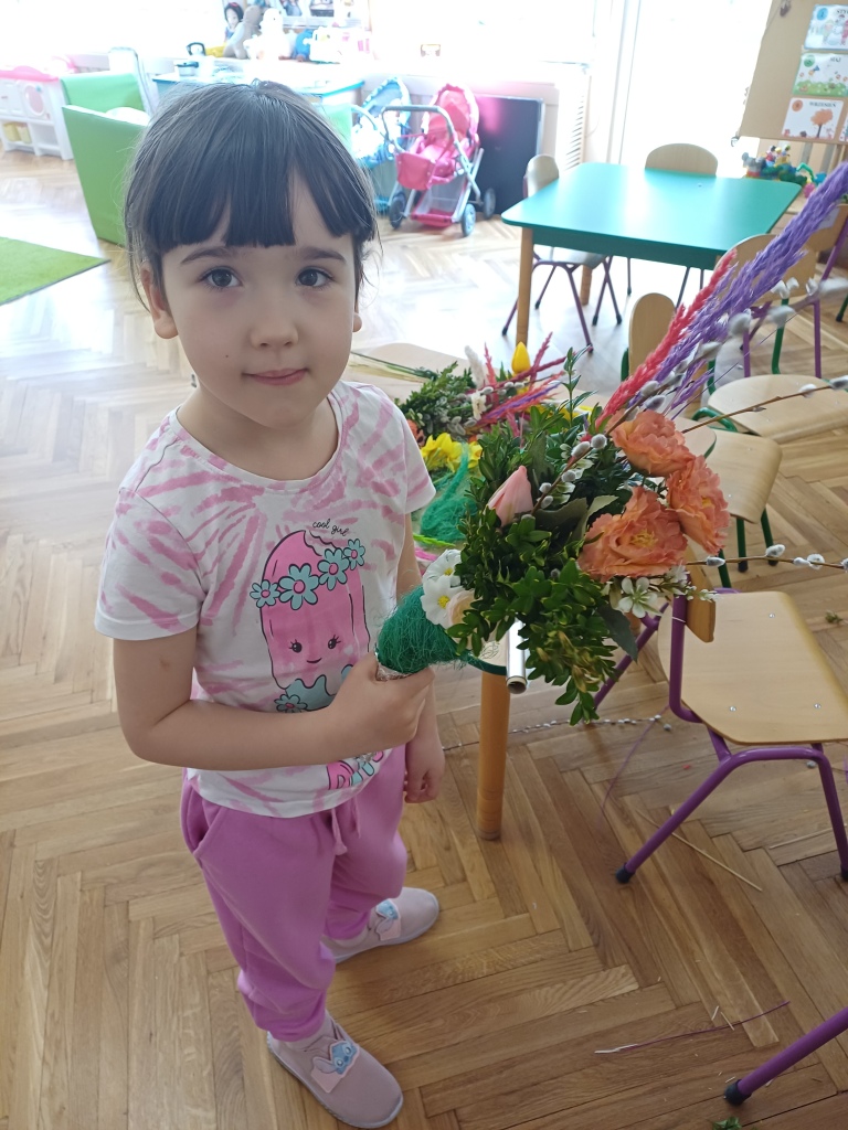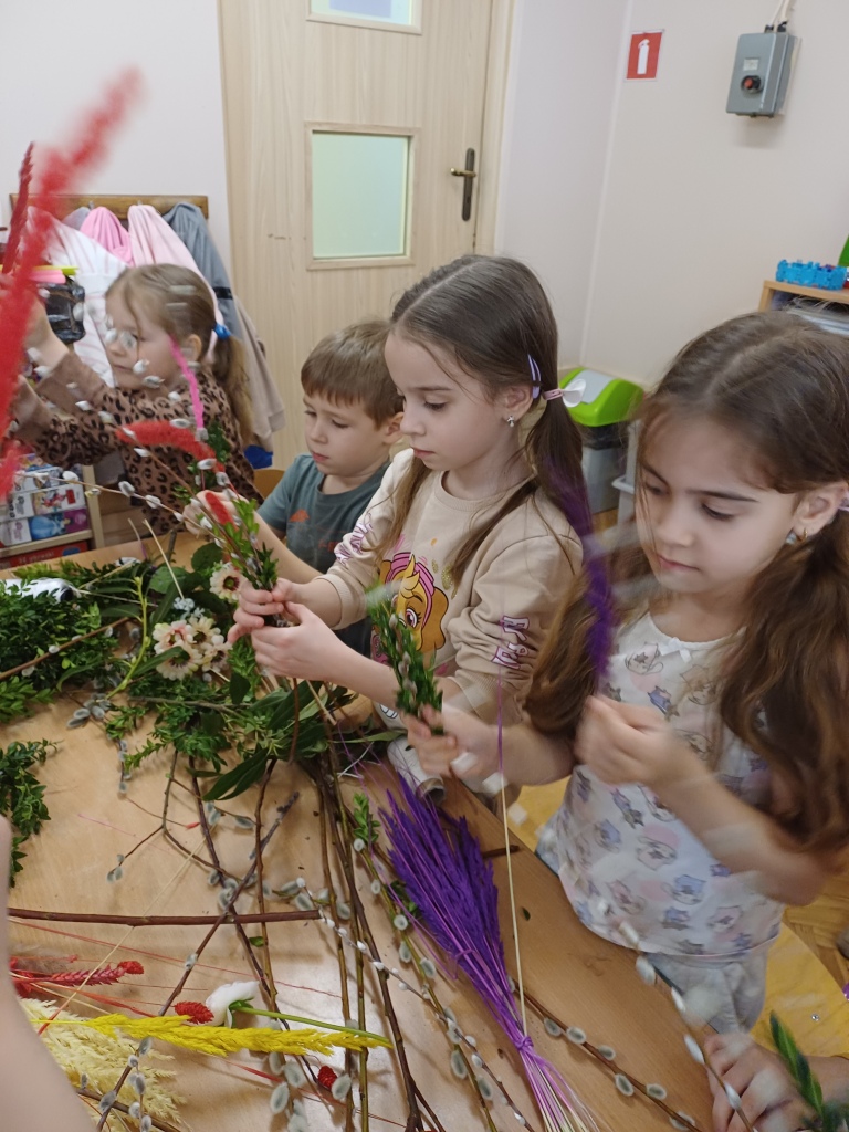 Grupa „Wiewiórki" z radością przygotowuje się do przedszkolnego kiermaszu wielkanocnego