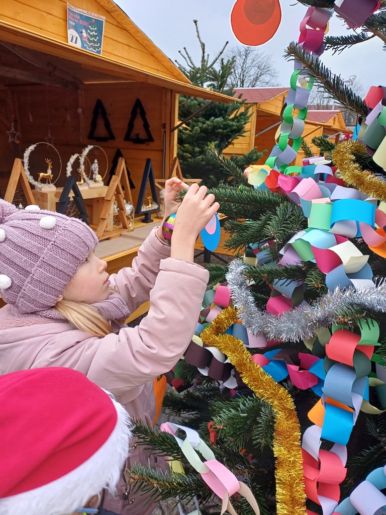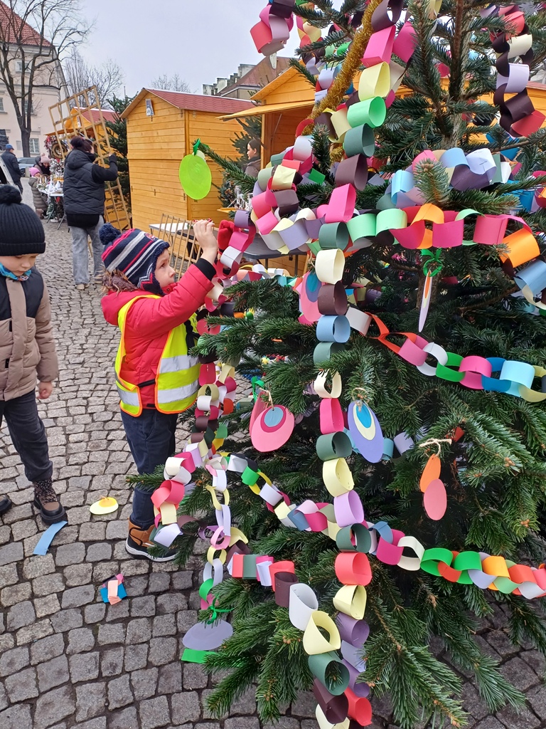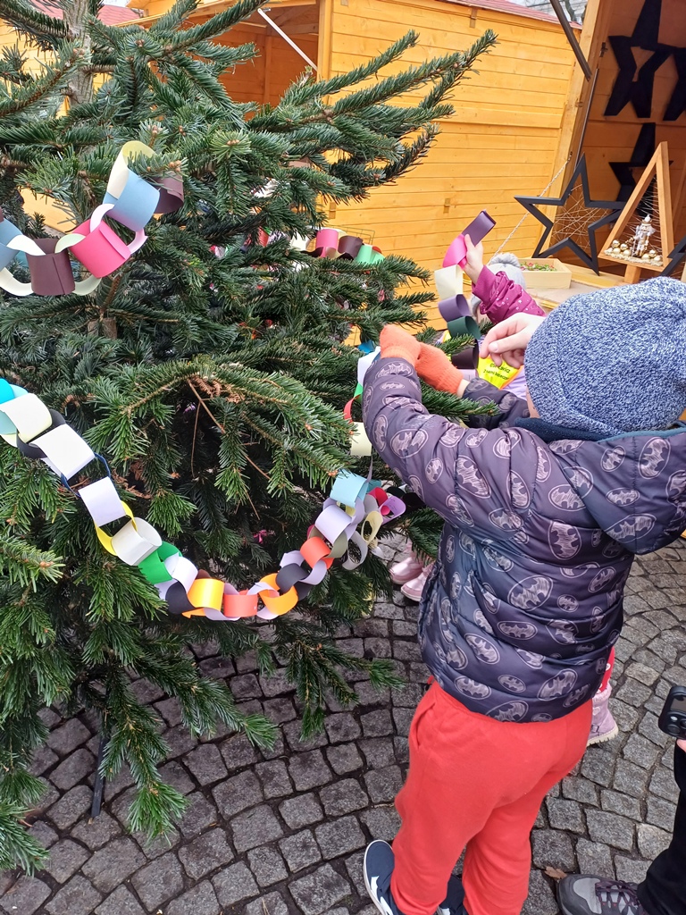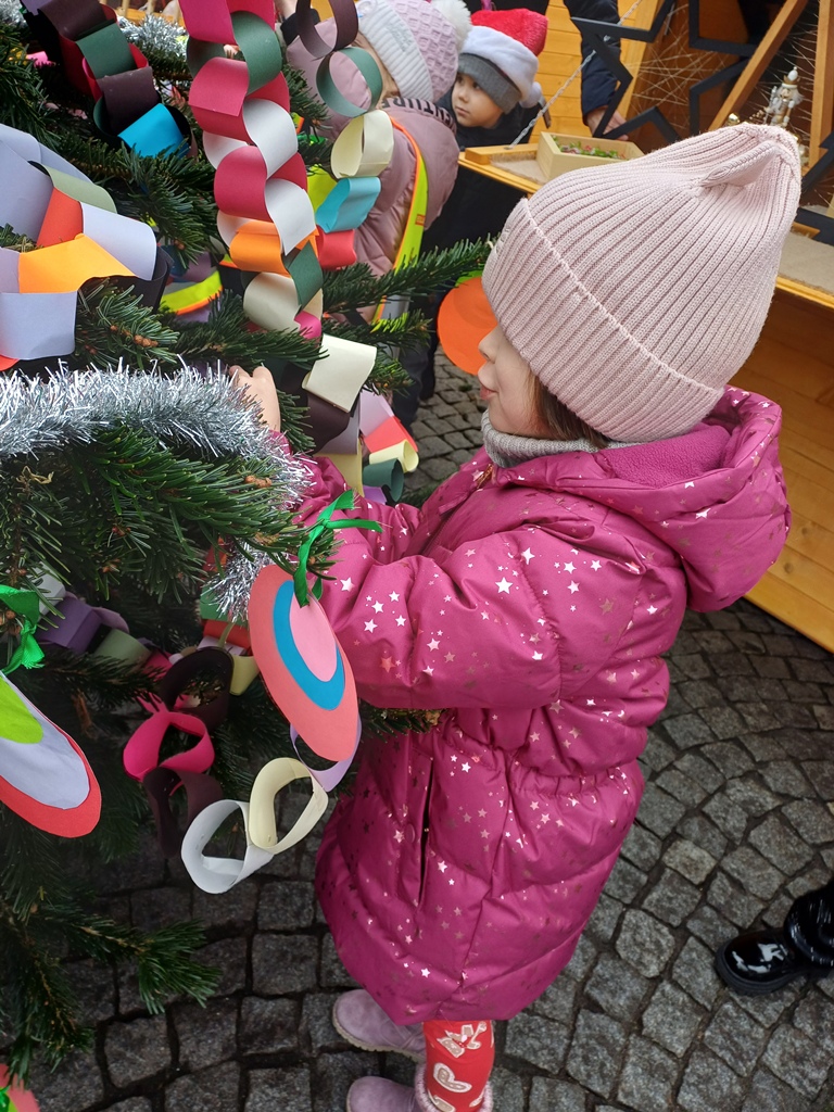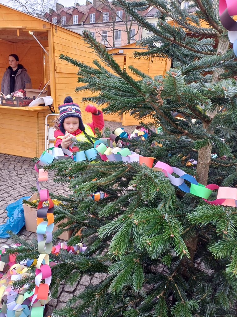 Dnia 5 grudnia 2025 r. dzieci z grupy "Wiewiórki" wybrały się na Stary Rynek, aby udekorować miejskie choinki. Na to wydarzenie przygotowano piękny, kolorowy łańcuch i pawie oczka wykonane przez grupę "Jeżyki " oraz kolorowe bombki, błyszczące gwiazdki i drewniane zawieszki. Wspólne strojenie choinki było nie tylko świetną zabawą, ale także okazją do integracji i budowania świątecznej atmosfery w naszym mieście.