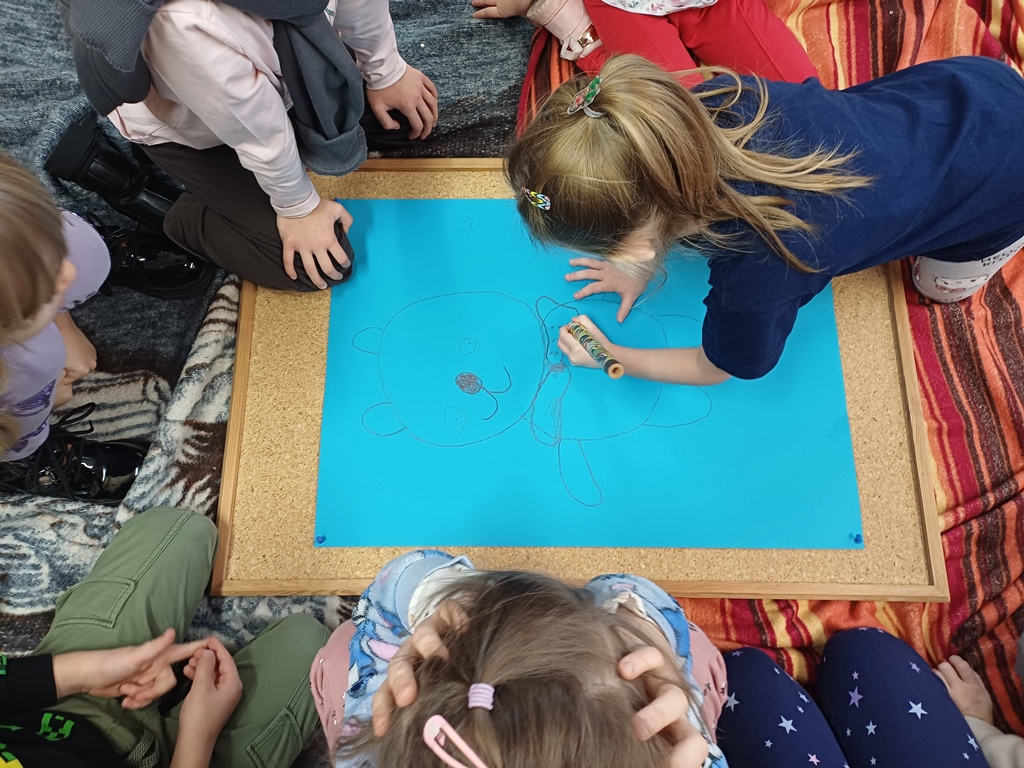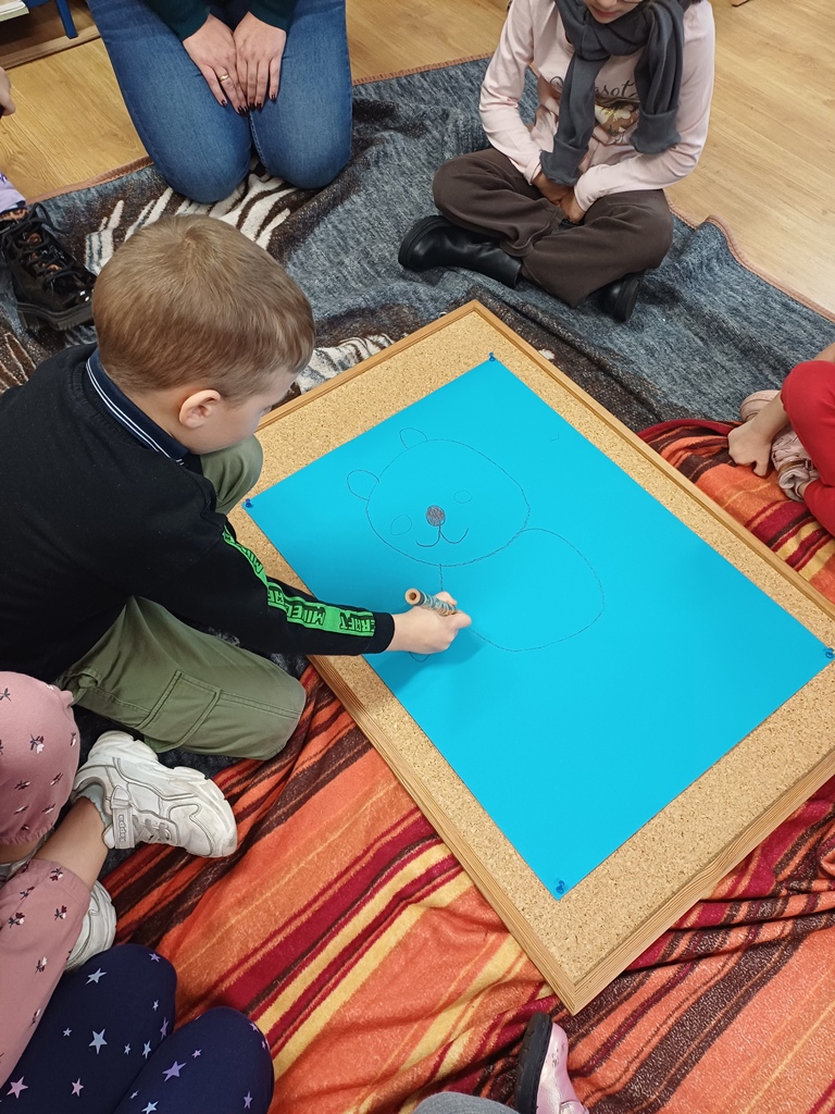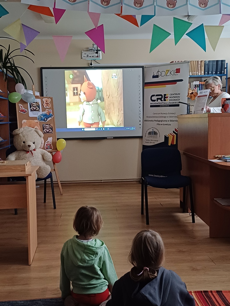 21 października grupa Wiewiórki uczestniczyła w zajęciach edukacyjno - plastycznych w Bibliotece Pedagogicznej w Łowiczu. Przedszkolaki zapoznały się z misiami bajkowymi i tymi prawdziwymi oraz obejrzały bajkę "Miś Uszatek". Narysowały wspólnie postać misia, którego nazwały Edward. Dzieci odkryły, jak pomocny potrafi być pluszowy miś, oglądając teatrzyk kamishibai „Mój przyjaciel, pluszowy miś". A jak urodziny Misia to nie mogło też zabraknąć słodkiego poczęstunku.