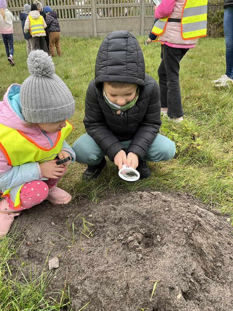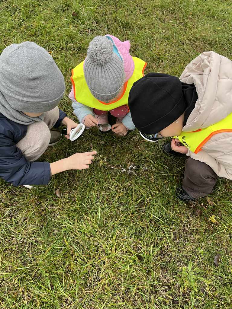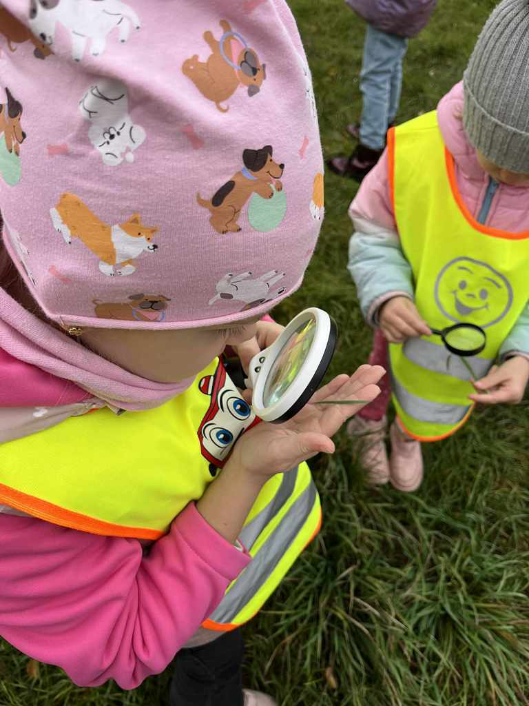 Dziś mali odkrywcy z grupy Wiewiórki zamienili się w prawdziwych naukowców! Podczas zajęć terenowych dzieci obserwowały przyrodę przez lupy – zaglądały w trawę, badały liście, korę drzew i wypatrywały najmniejszych mieszkańców łąki. Było dużo radości, ciekawych odkryć i nauki przez zabawę!