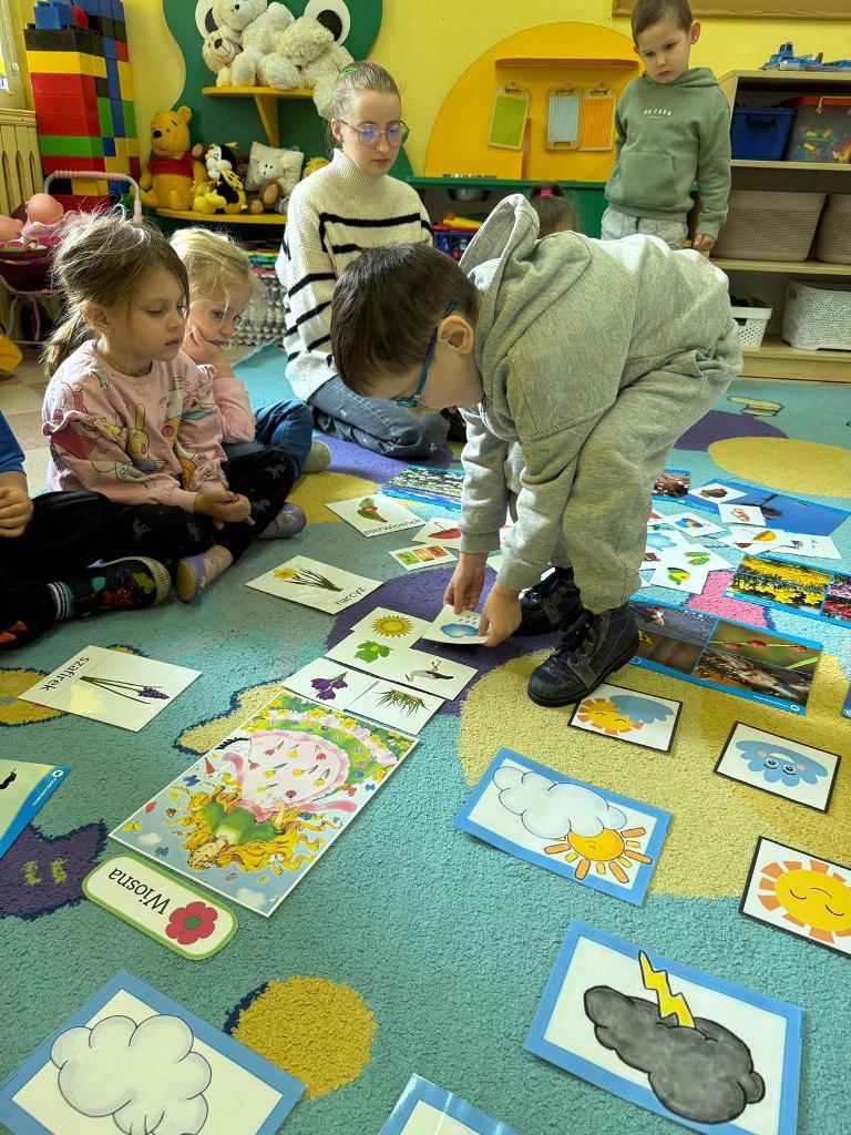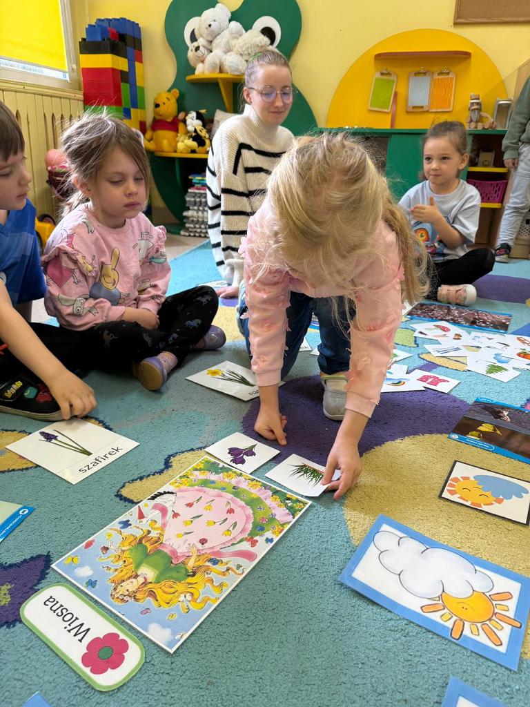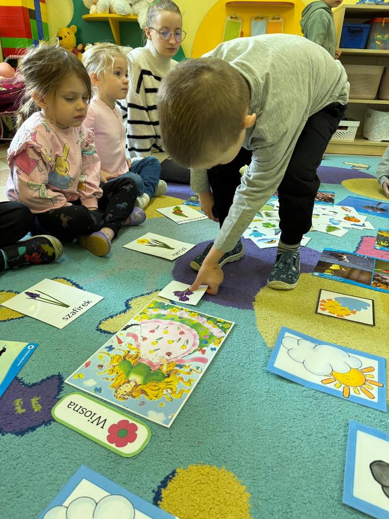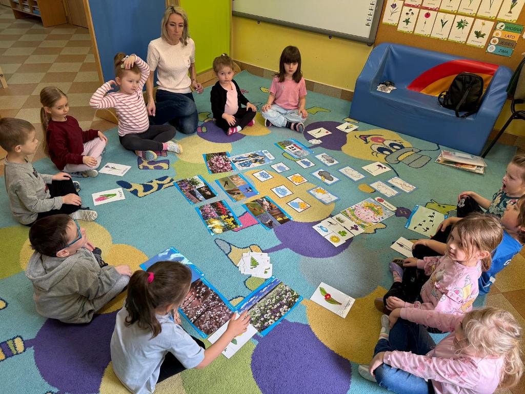 W naszym przedszkolu zrobiło się kolorowo, radośnie i bardzo... wiosennie! Dzieci z grupy „Sówki" poznawały pierwsze oznaki wiosny – rozmawialiśmy o budzącej się przyrodzie, śpiewaliśmy wiosenne piosenki i tworzyliśmy piękne prace plastyczne pełne kwiatów, słońca i zieleni.