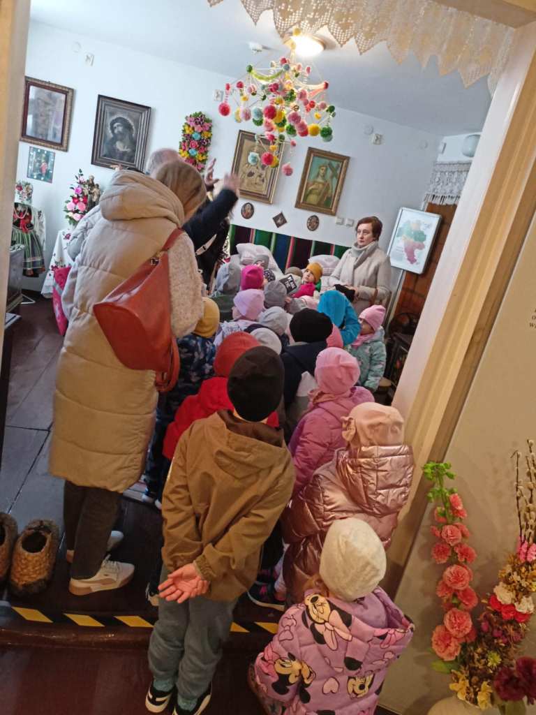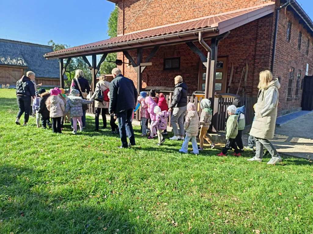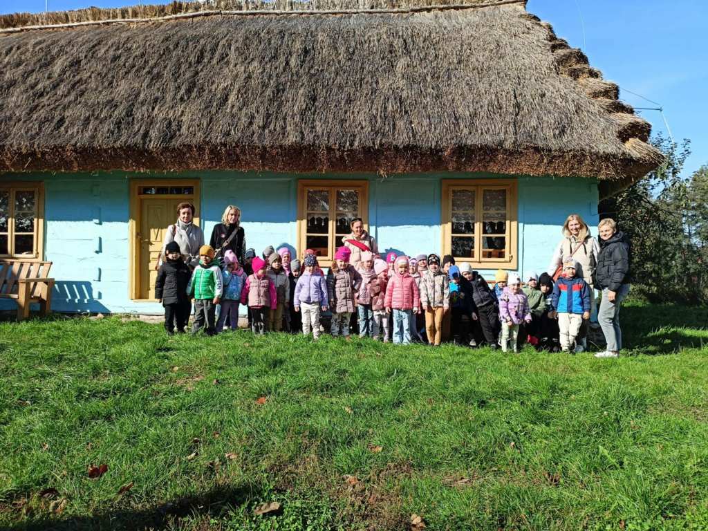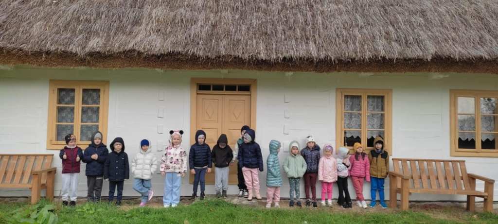 2 października 2025 r. dzieci z grup „Sówki” i „Mróweczki” wybrały się na wycieczkę do Lipiec Reymontowskich w ramach Roku Reymonta. Przedszkolaki zwiedziły dawne chaty, zobaczyły tradycyjne sprzęty domowe i rolnicze oraz poznały zwyczaje opisane w powieści „Chłopi”. Największe wrażenie zrobiły na nich izba z piecem kaflowym, warsztat tkacki i barwne stroje ludowe. Dzięki opowieściom przewodników i zabawom edukacyjnym dzieci w ciekawy sposób poznały historię i kulturę dawnej wsi. Wróciły pełne wrażeń i nowych doświadczeń.